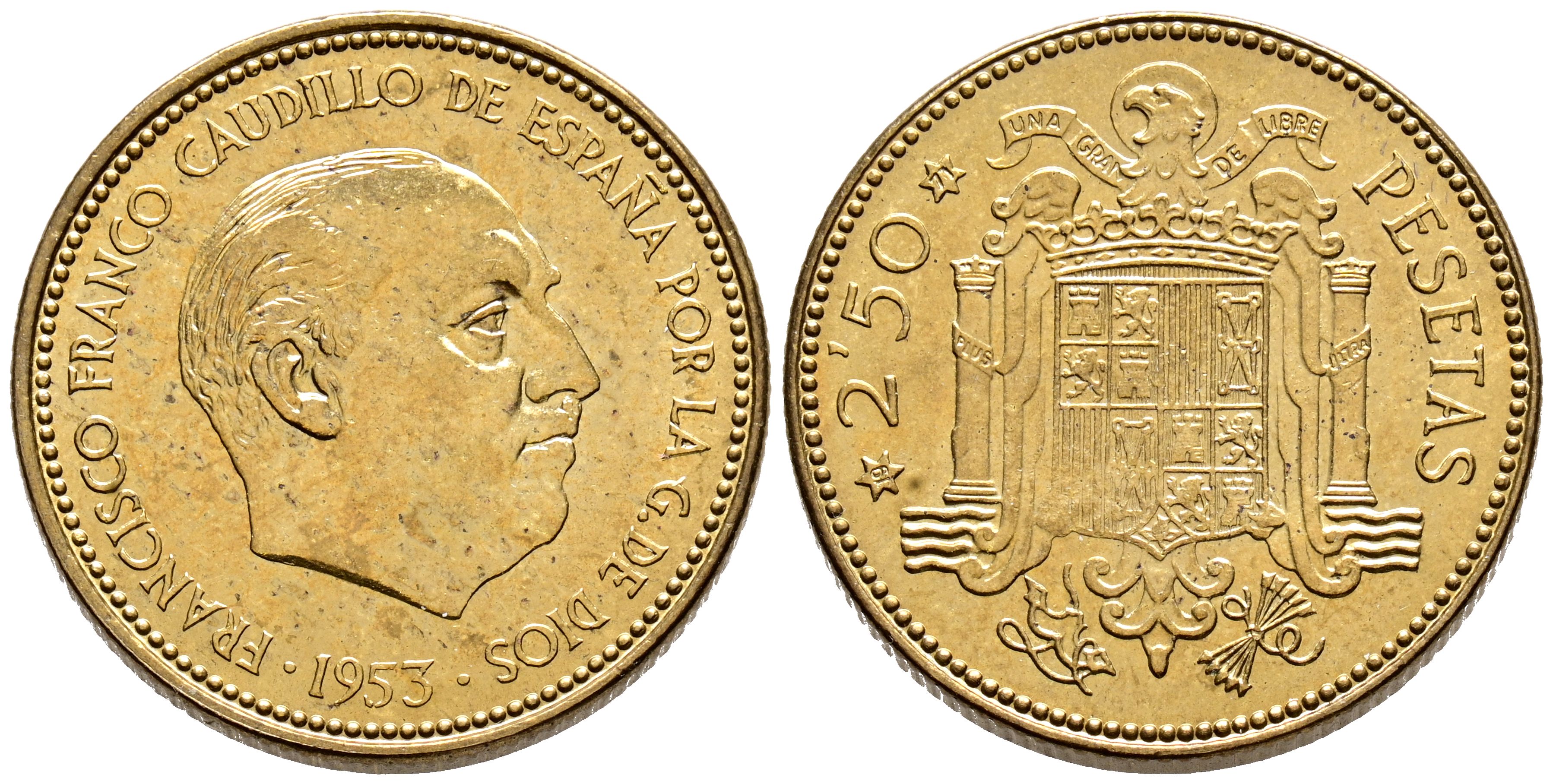 ESTADO ESPAÑOL (1936-1975). 2,50 Pesetas. (AlCu. 7,13g/25mm). 1953 *19-71. Madrid. (Cal-2019-90). EBC+. Limpiada pero con bonito tono.