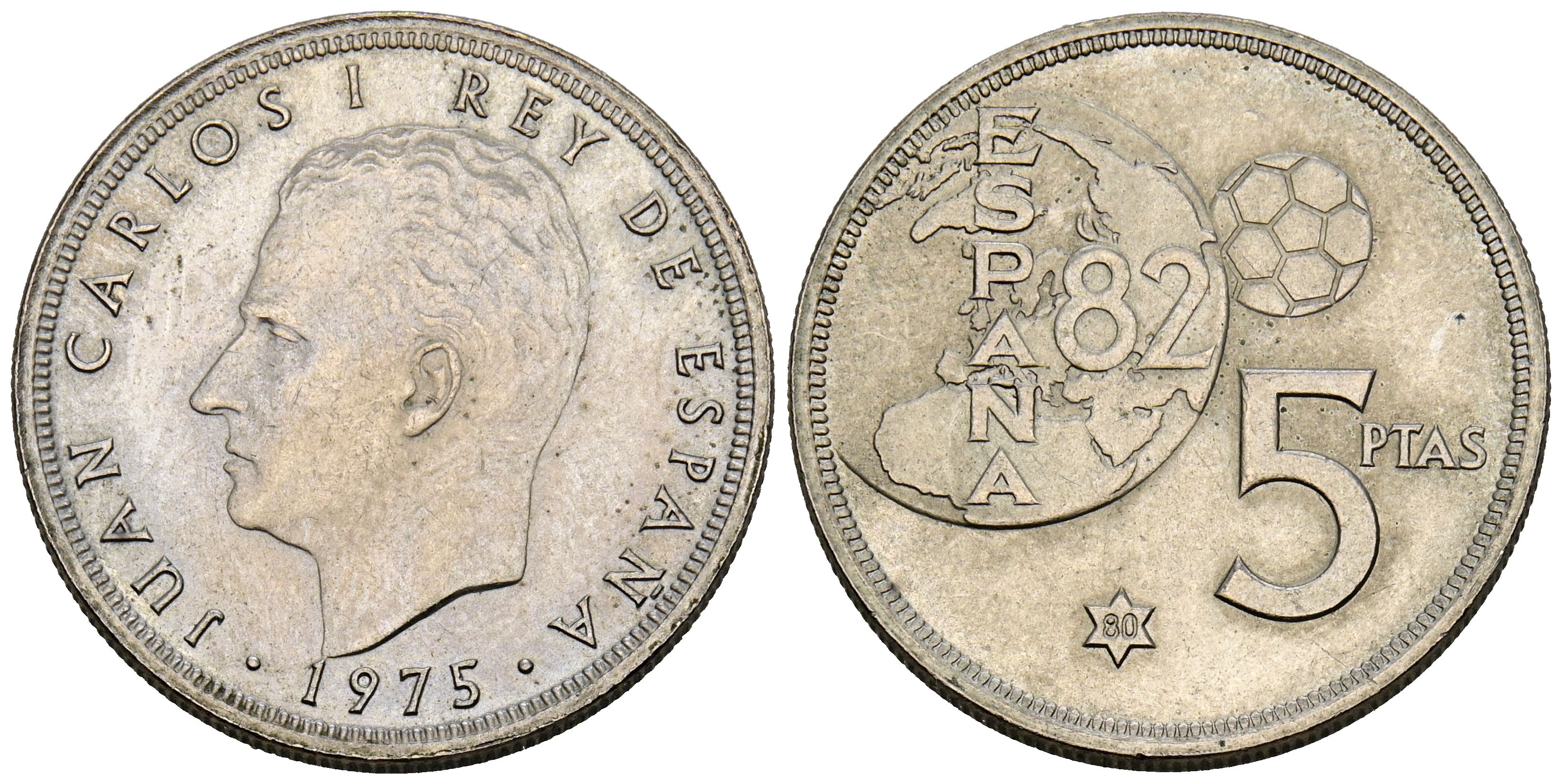 JUAN CARLOS I (1975-2014). 5 Pesetas. (CuNi. 5,76g/23mm). 1975 *80. Madrid. (Cal-2019-40). Error del Mundial ´82. EBC.