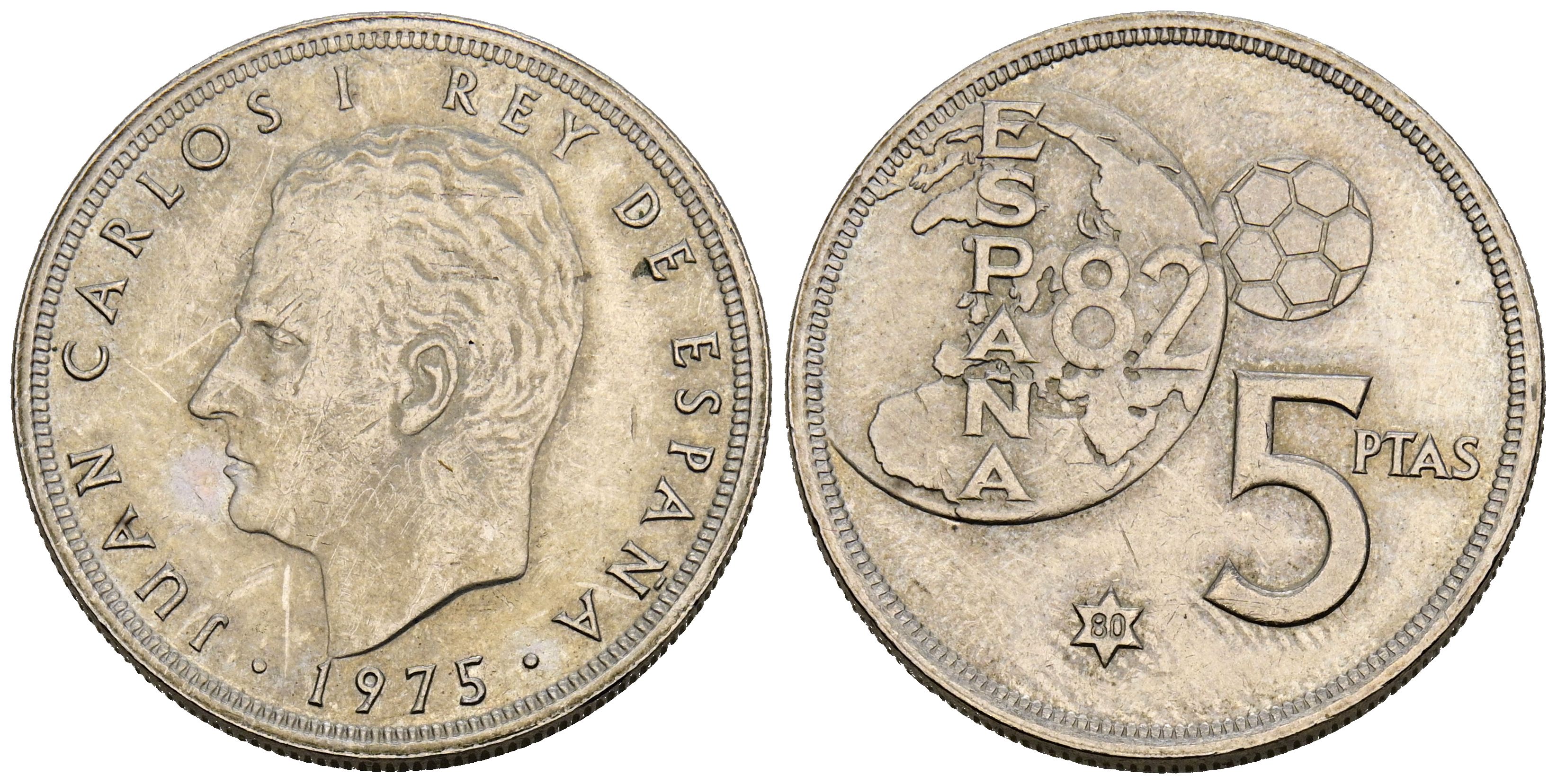 JUAN CARLOS I (1975-2014). 5 Pesetas. (CuNi. 5,73g/23mm). 1975 *80. Madrid. (Cal-2019-40). Error del Mundial ´82. EBC.