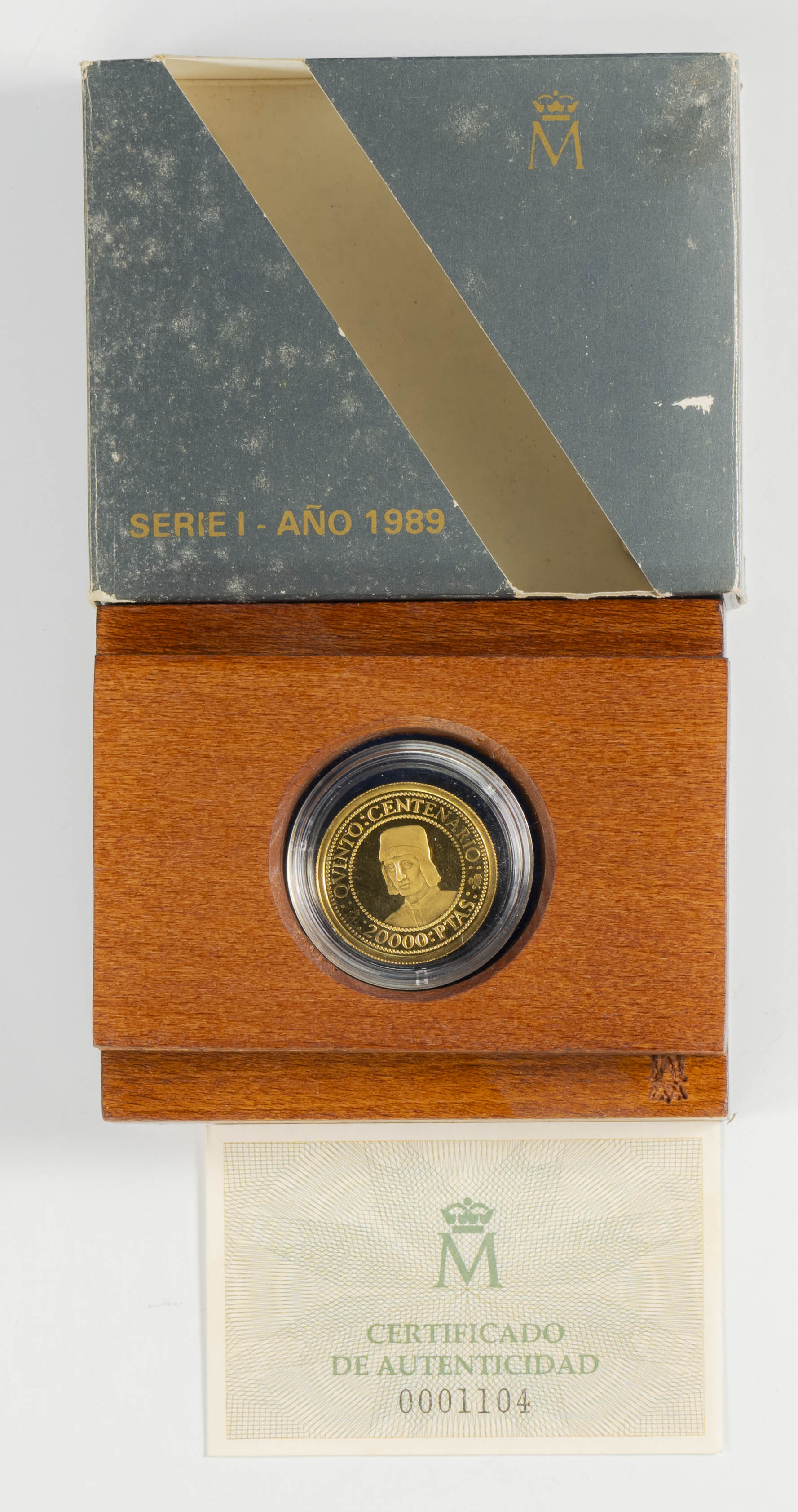 JUAN CARLOS I (1975-2014). 20.000 Pesetas. (Au. 6,75g/23mm). Quinto Centenario. Serie I. 1989. FNMT. PROOF. Presentada en estuche oficial y con certificado de autenticidad.