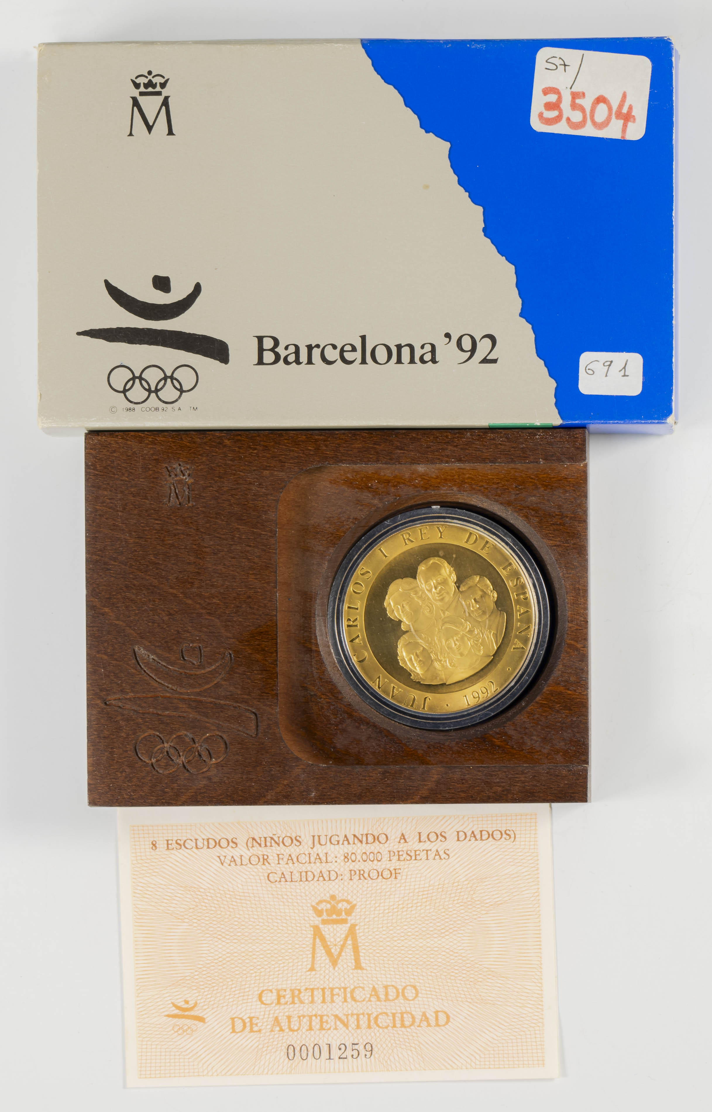 JUAN CARLOS I (1975-2014). 80.000 Pesetas. (Au. 27,00g/38mm). 1992. FNMT. Juegos Olímpicos de Barcelona´92. Serie IV. PROOF. Incluye estuche original y certificado de autenticidad. Tirada de 7.000 unidades.