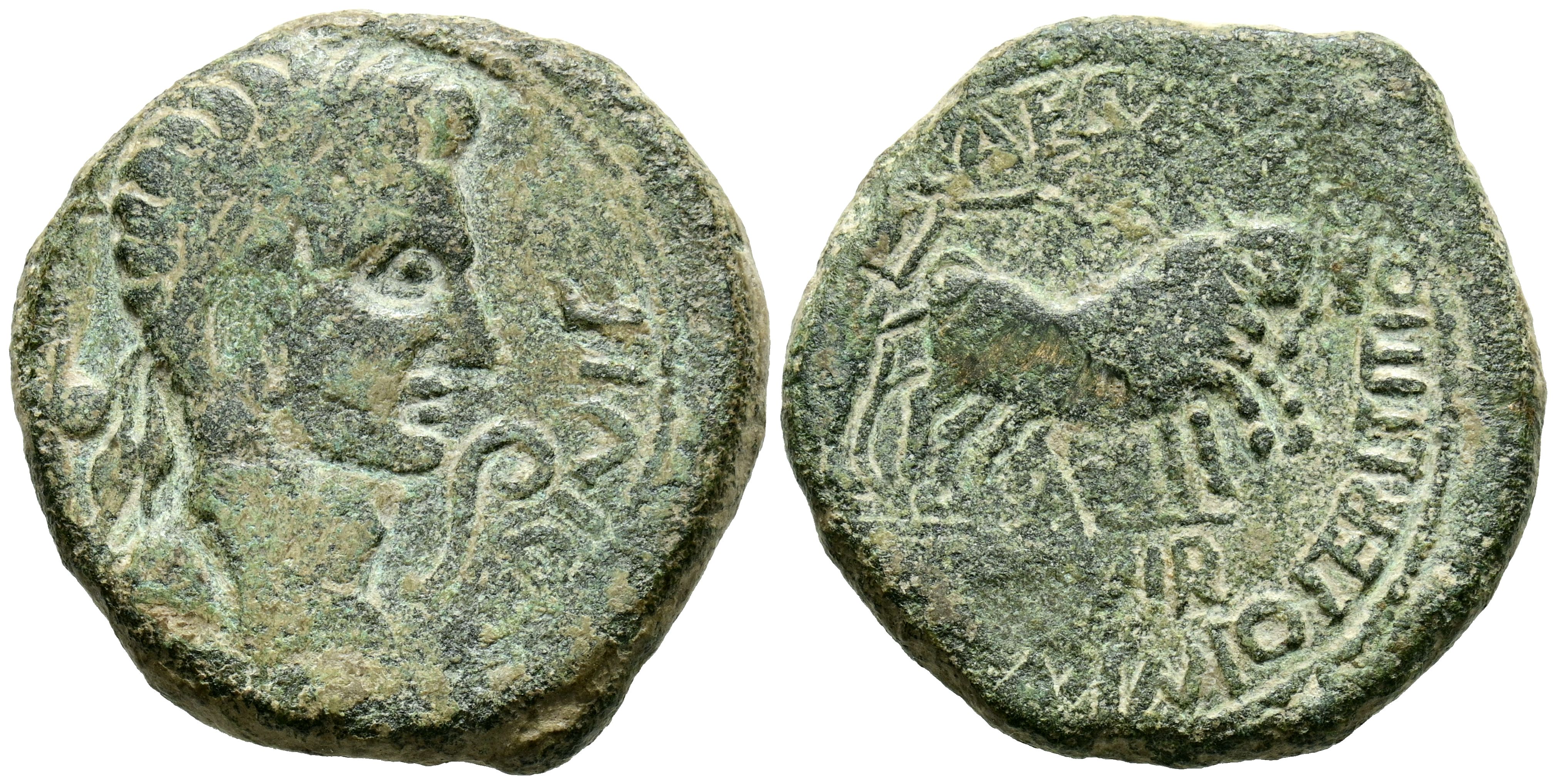 CAESARAUGUSTA (Zaragoza). As. (Ae. 16,42g/29mm). 27 a.C.-14 d.C. Anv: Cabeza laureada de Agusto a derecha, alrededor leyenda: AVGVSTVS DIVI F. Rev: Yunta a derecha, en exergo: II VIR, alrededor leyenda: CAESAR AVGVSTA MAN CANINIO ITER L TITIO. MBC.
