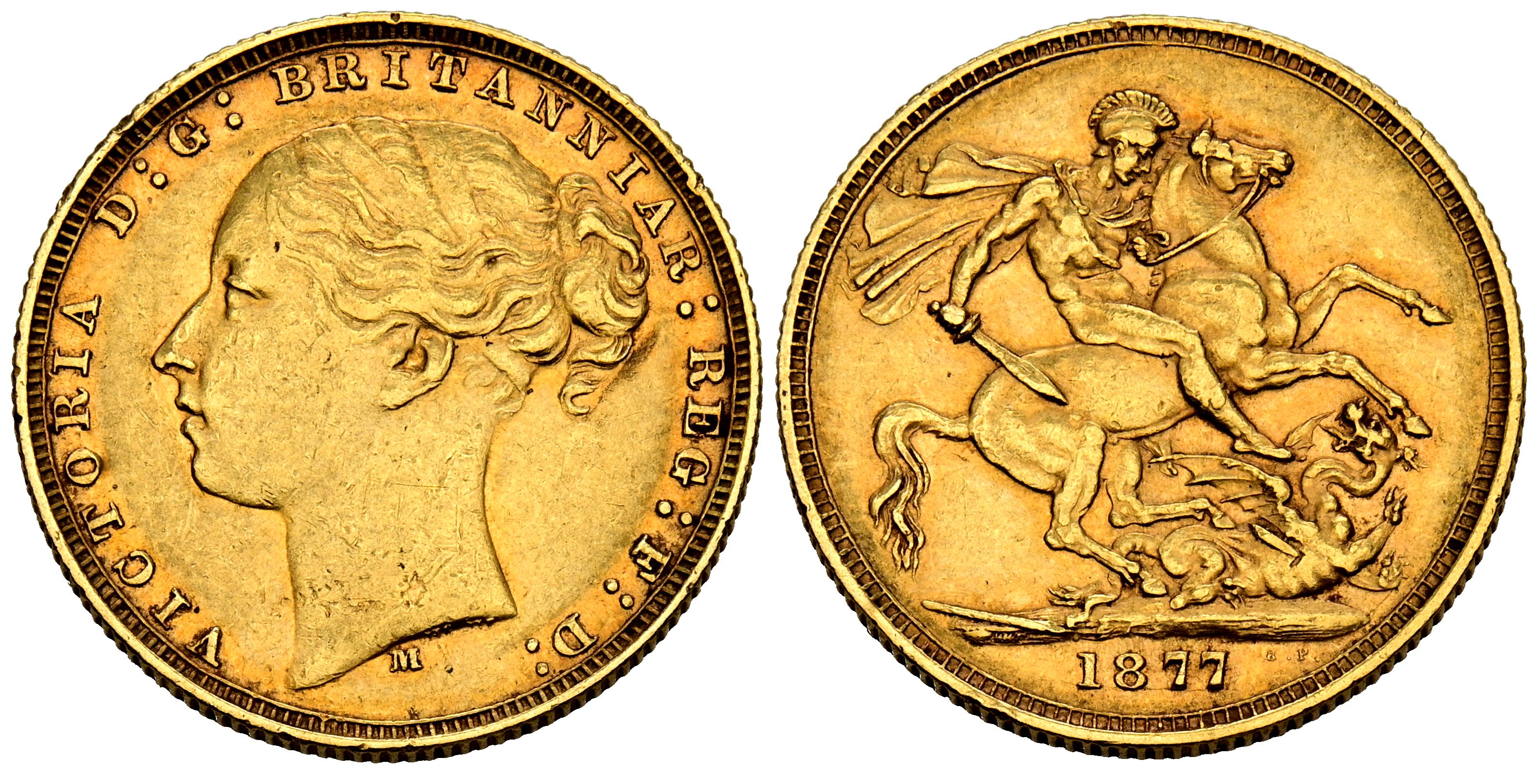 AUSTRALIA, Reina Victoria. 1 Soberano. (Au. 7,98g/22mm). 1877. Melbourne M. (Km#7). MBC+.