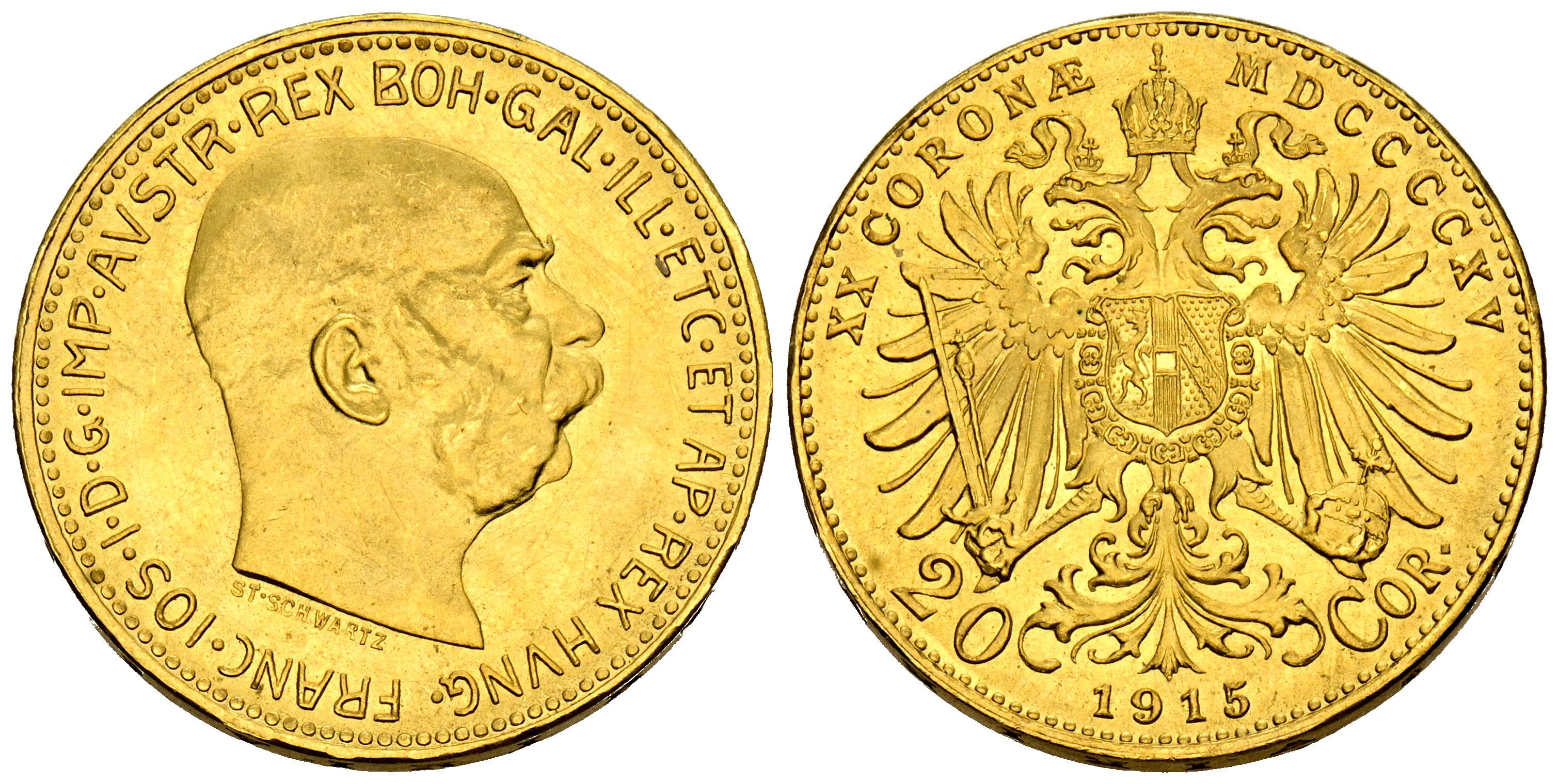 AUSTRIA, Francisco José I. 20 Coronas. (Au. 6,78g/21mm). 1915. (Km#2818). Reacuñación oficial. SC-.