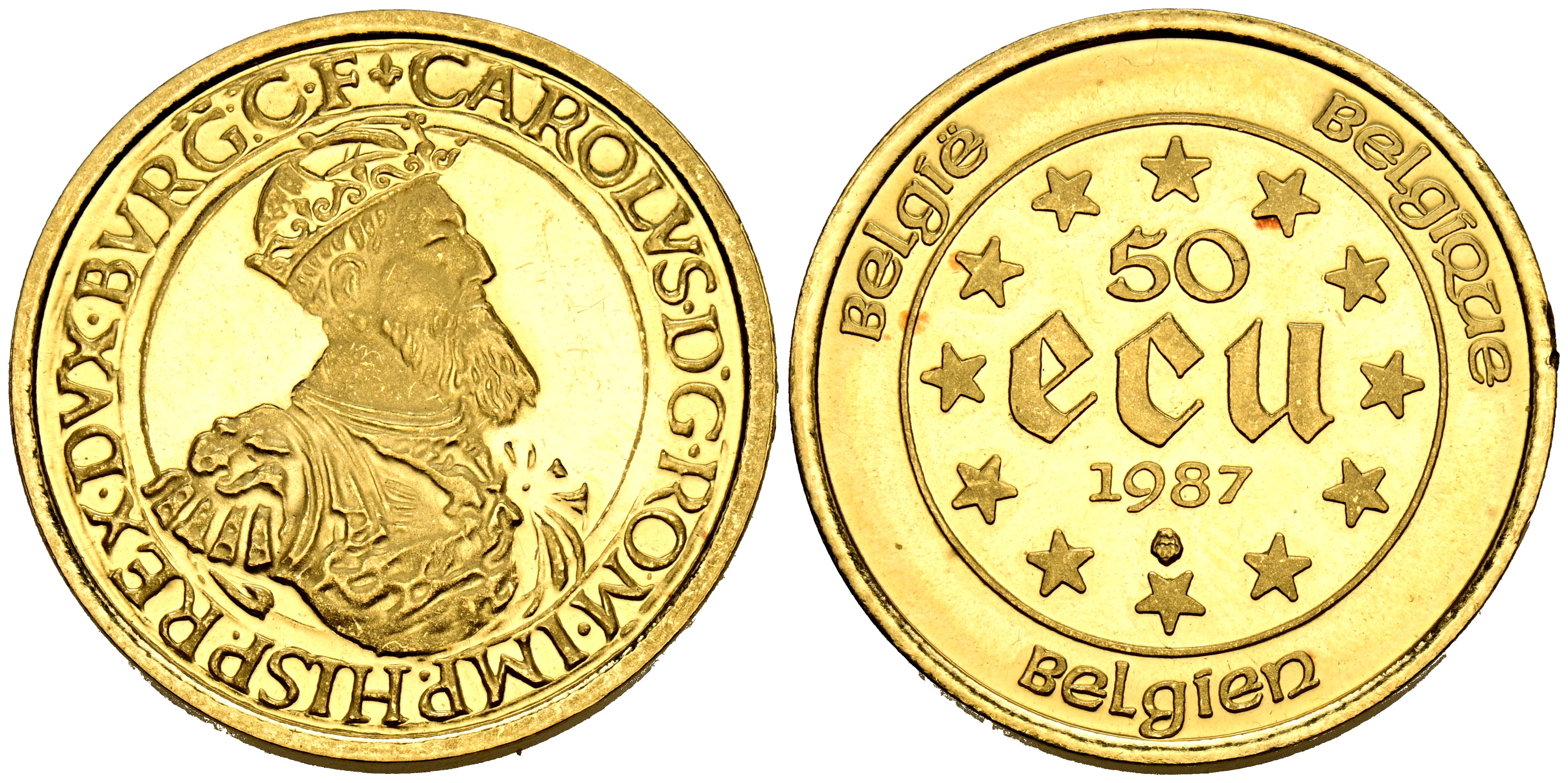 BÉLGICA. 50 Ecu. (Au. 17,27g/29mm). 1987. Tratado de Roma. (Km#167). EBC+.