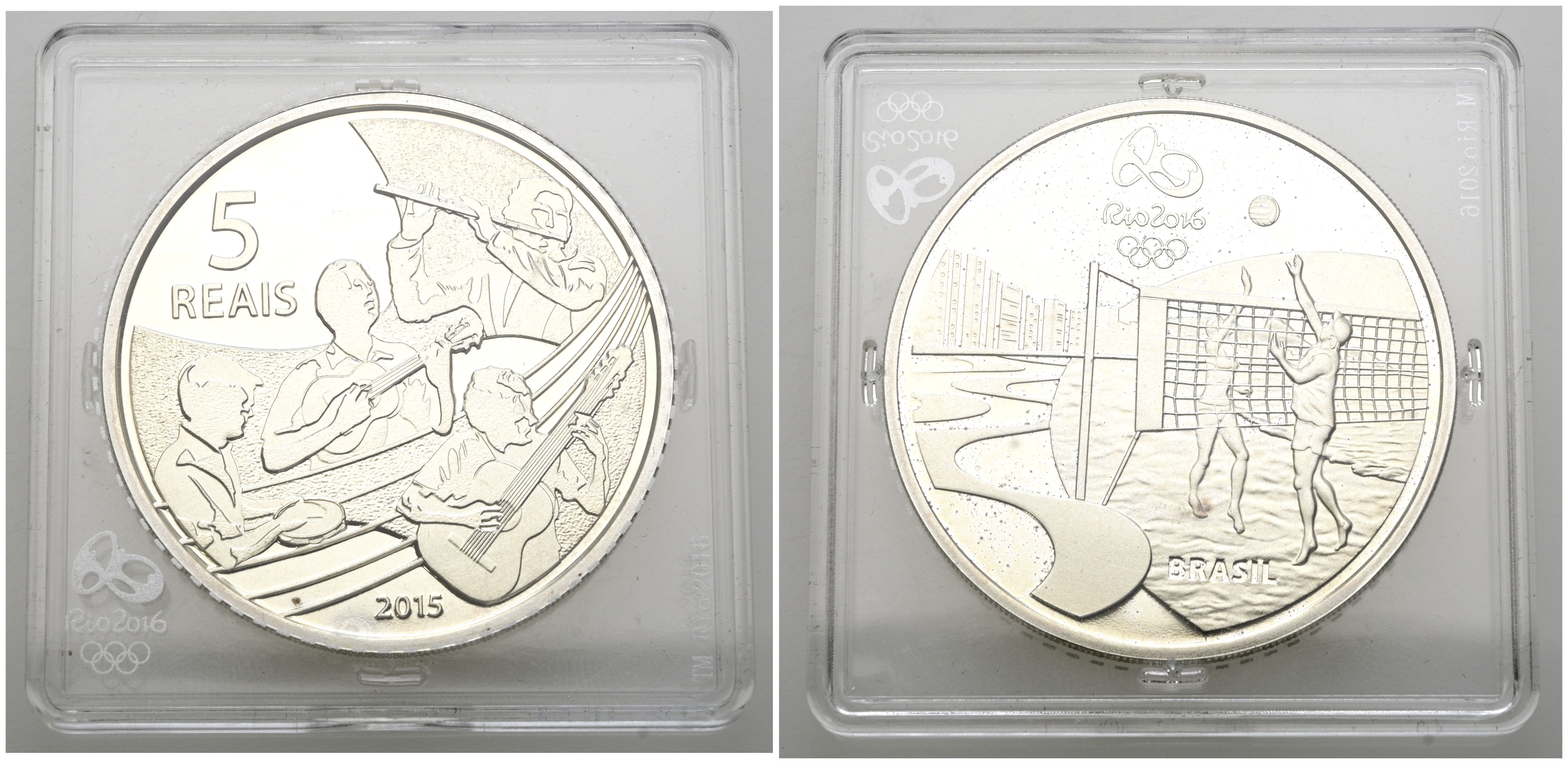 BRASIL. 5 Reais. (Ar. 26,70g/40mm). 2015. Juegos Olímpicos de Río 2016. Voley Playa. (Km#715). PROOF. Incluye cápsula. Escasa.