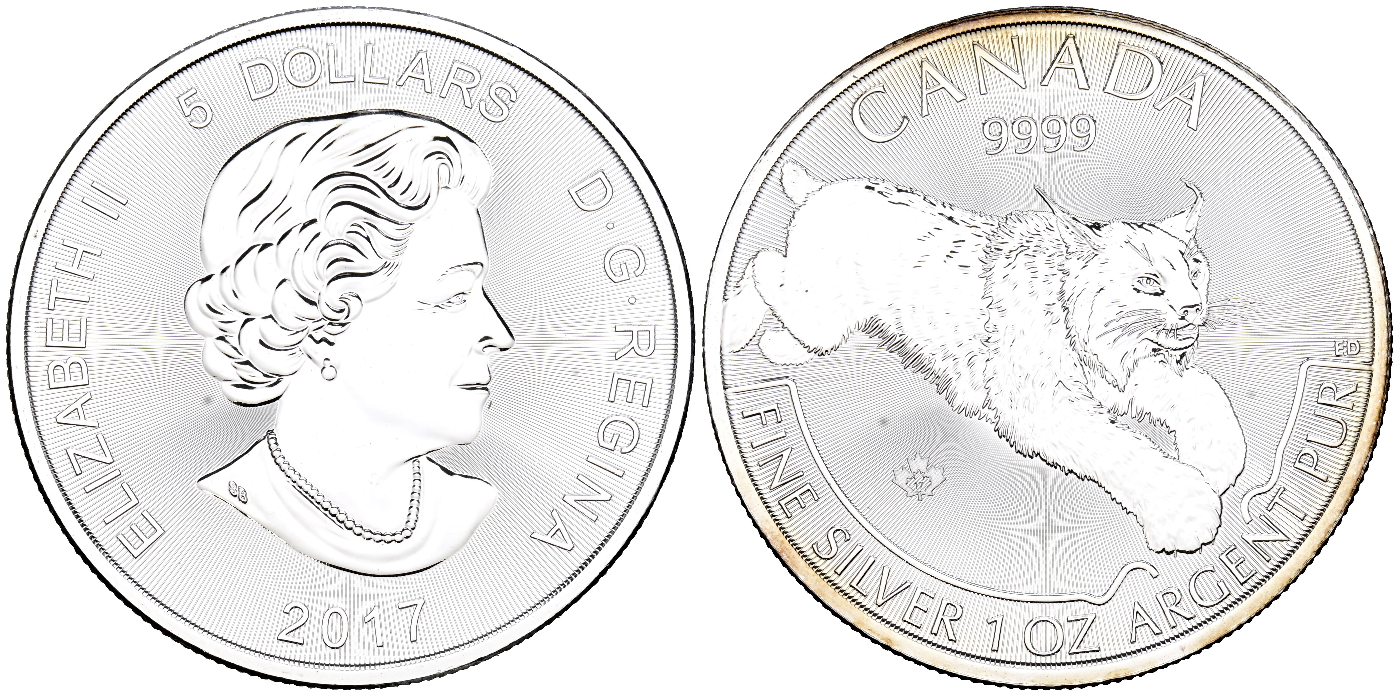 CANADÁ. 5 Dollars. (Ar. 31,15g/38mm). 2017. Serie Depredadores. Lince. 2017. (Km#250). Plata de 0,999 milésimas. SC.