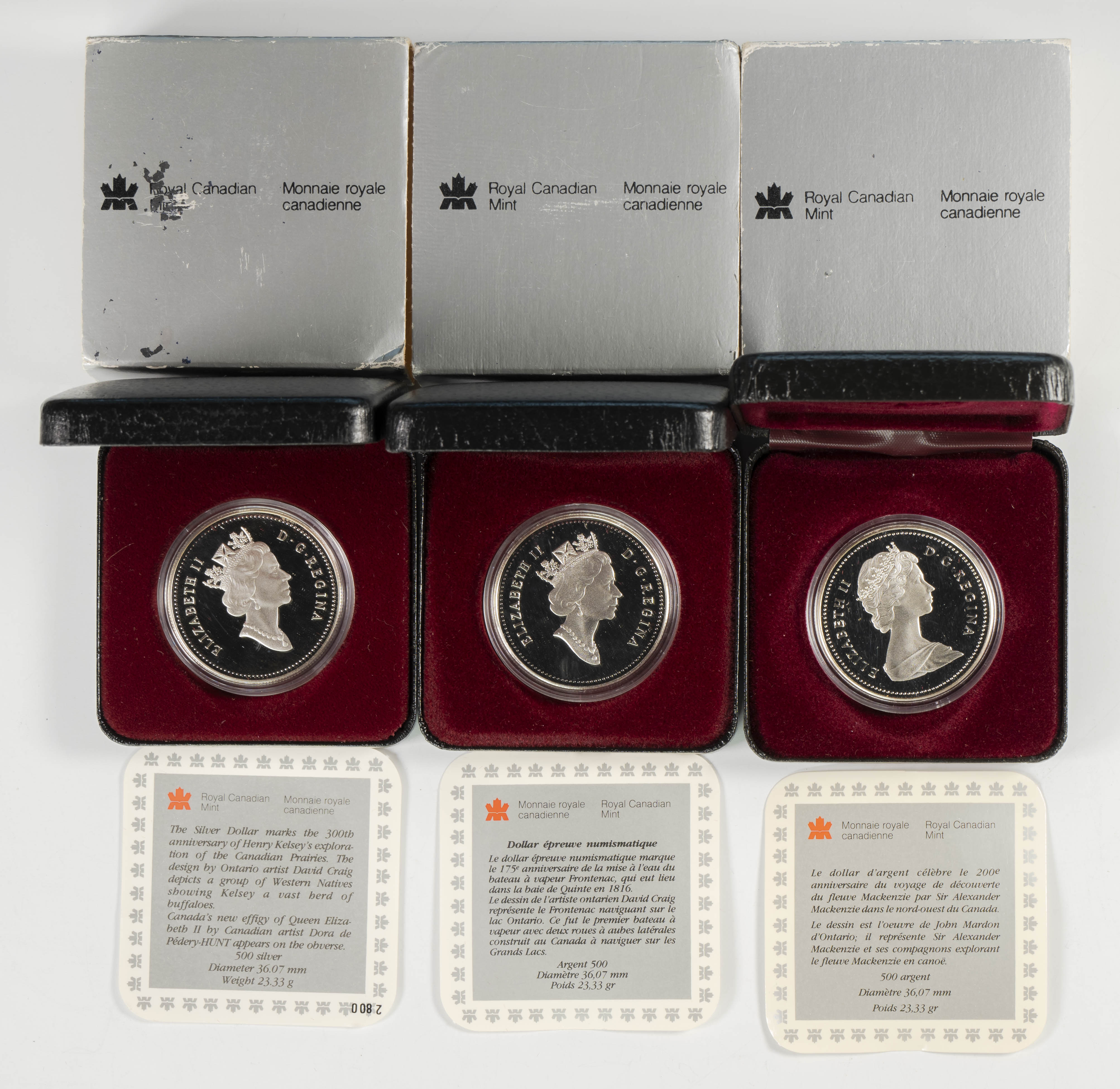 CANADÁ. Bonito conjunto de 3 estuches con piezas de 1 Dollar. Años de acuñación: 1989, 1990 y 1991. PROOF. Incluye estuches originales y certificados de autenticidad.