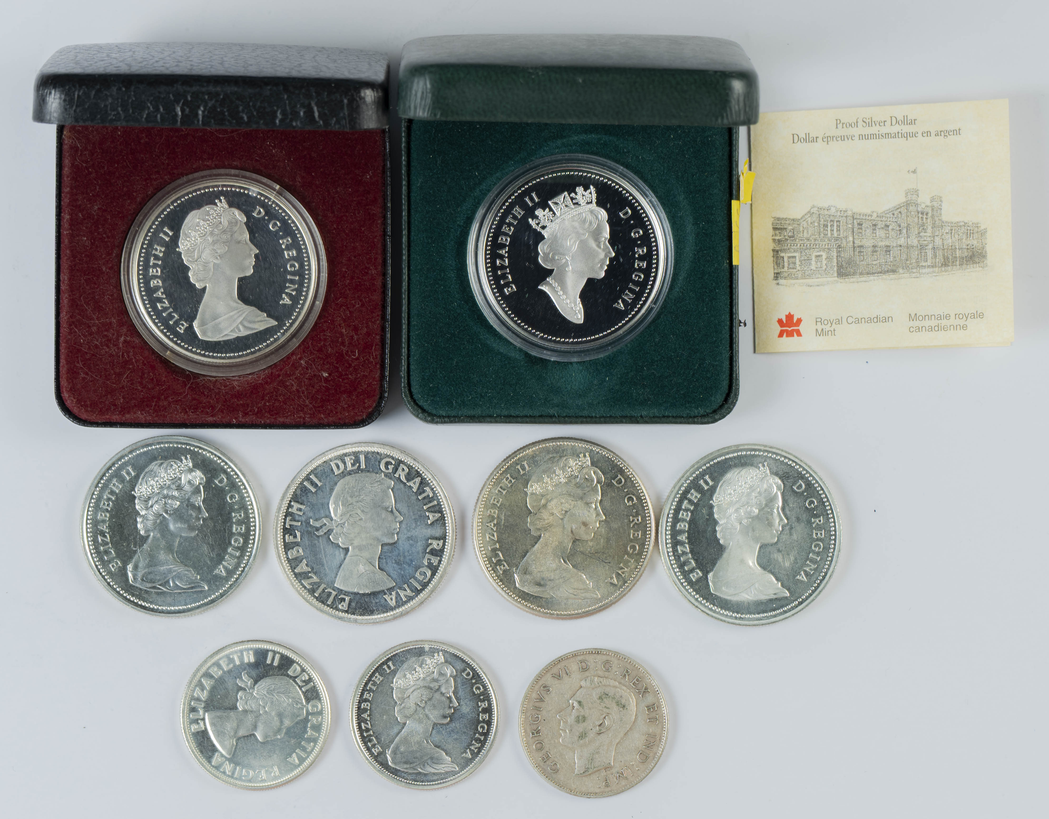 CANADÁ. Interesante conjunto de 9 monedas en plata con diversos módulos y fechas sin piezas repetidas. Dos de las piezas con sus respectivos estuches (uno sin certificado de autenticidad). Diferentes estados de conservación. A EXAMINAR.