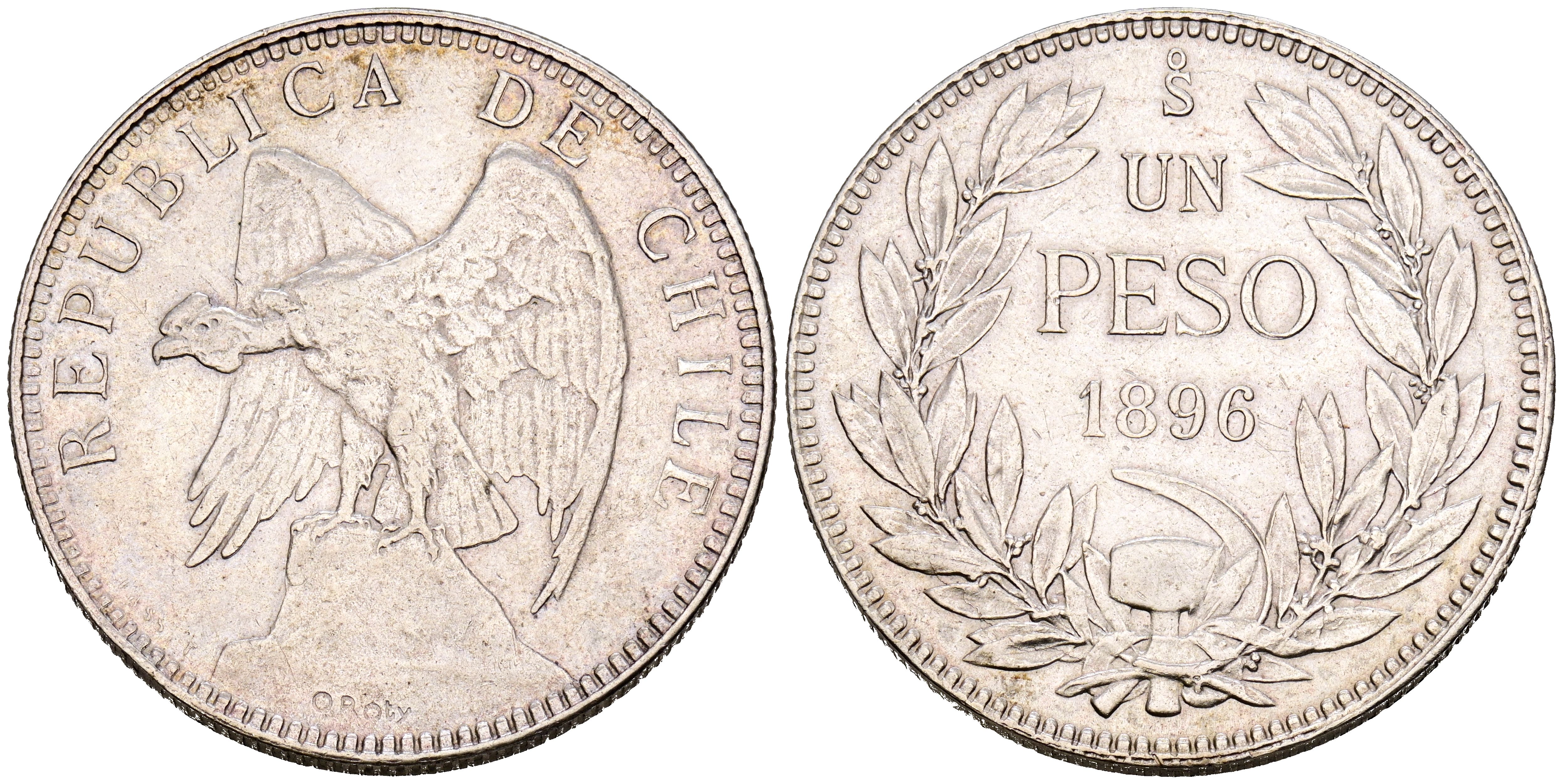 CHILE. 1 Peso (Ar. 20,01g/35mm). 1896. Santiago. (Km#152.1). MBC+.
