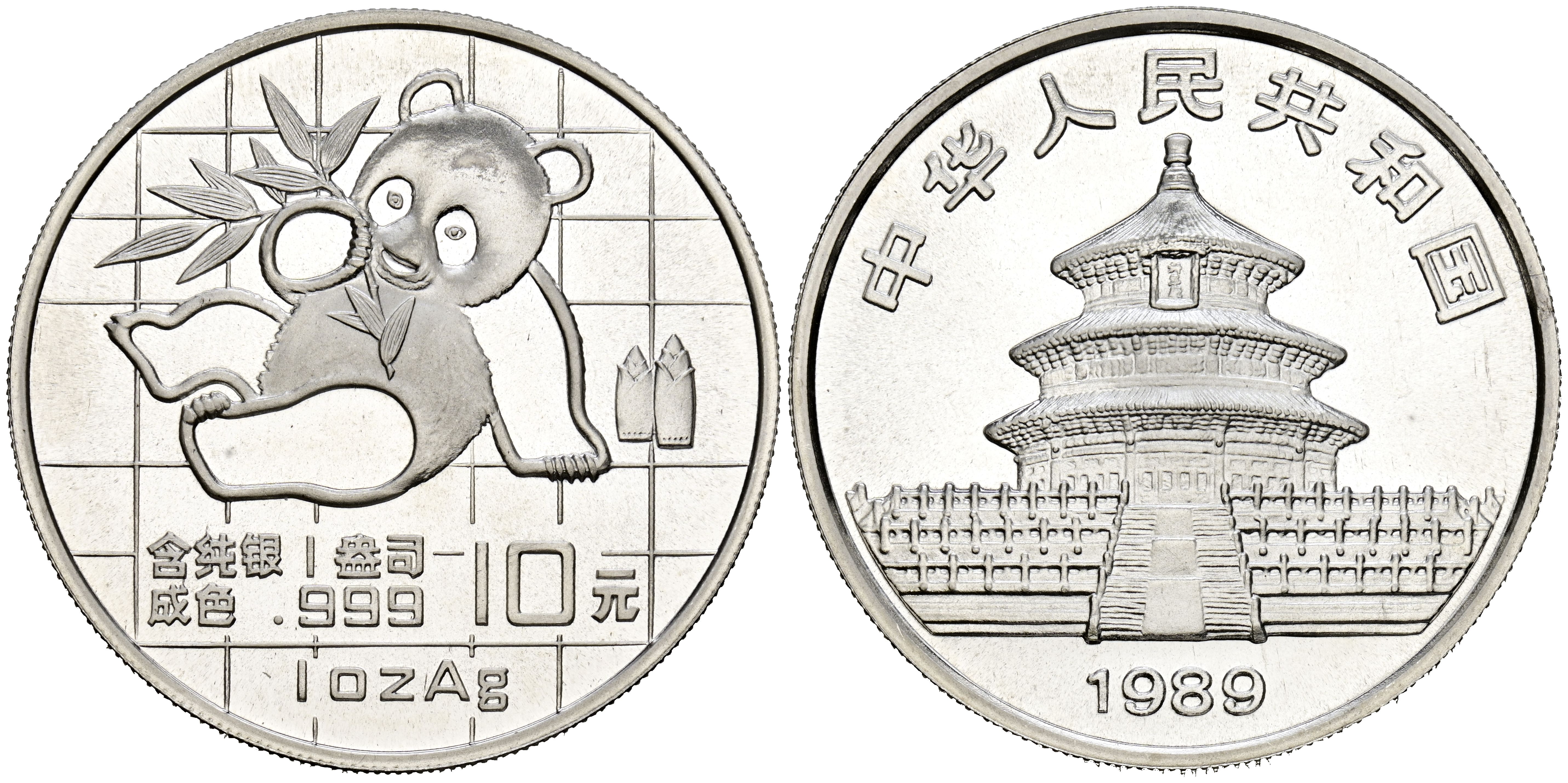 CHINA. 10 Yuan. (Ar. 30,95g/40mm). 1989. Serie Panda. (Km#A221). SC.