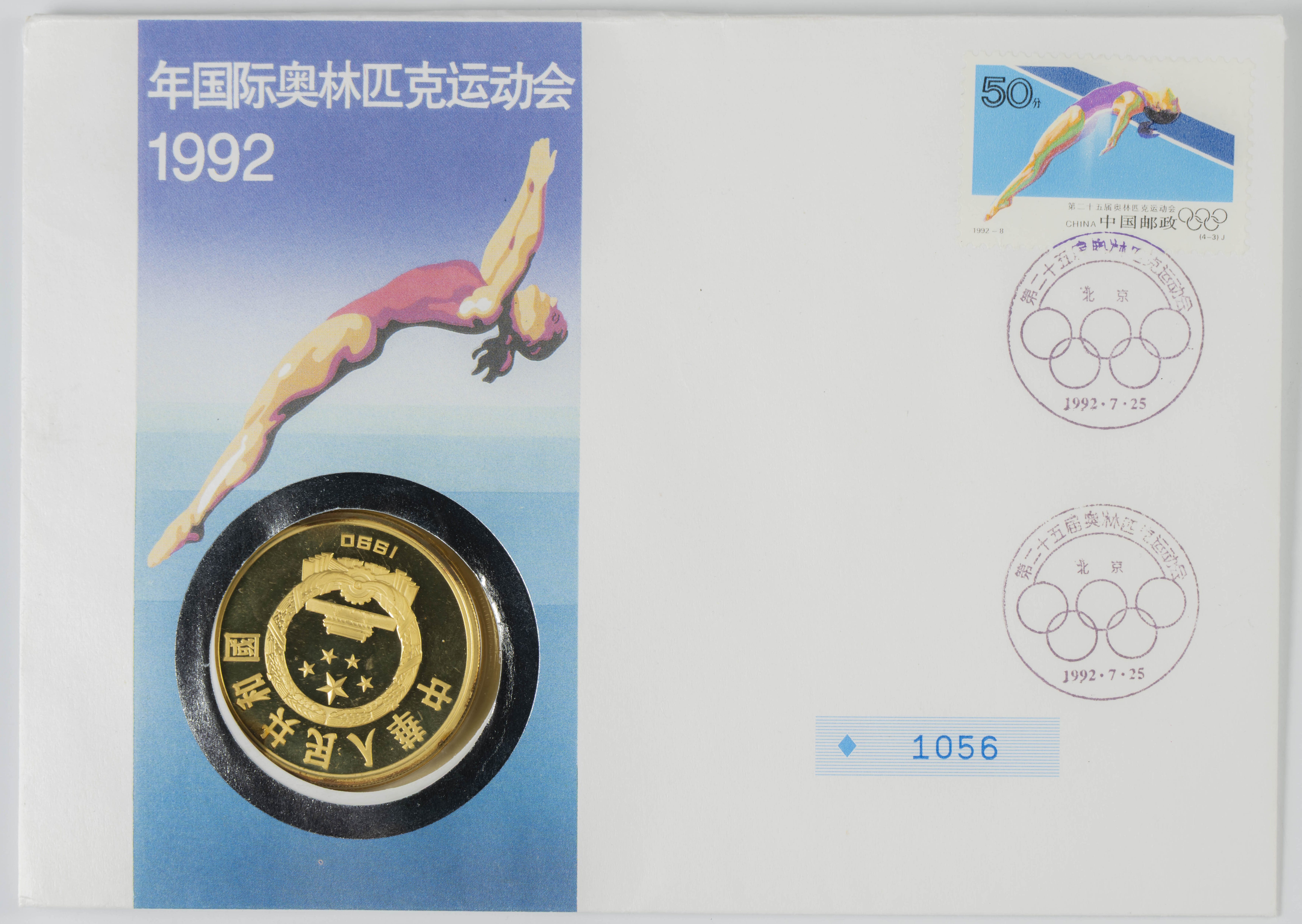 CHINA. 10 Yuan. (Ar. 30,15g/39mm). 1990. Juegos Olímpicos de Barcelona 1992 (Km#301). PROOF. En sobre del primer día.