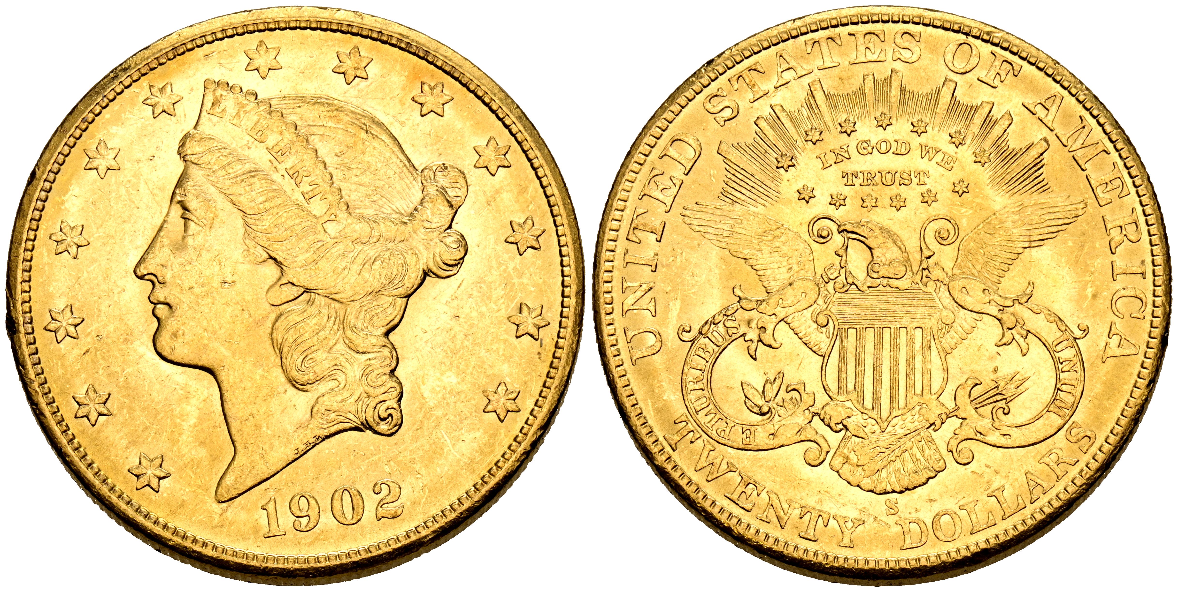 ESTADOS UNIDOS. 20 Dollars. (Au. 33,42g/34mm). 1902. San Francisco S. (Km#74.3). SC-. Ligeras marquitas.