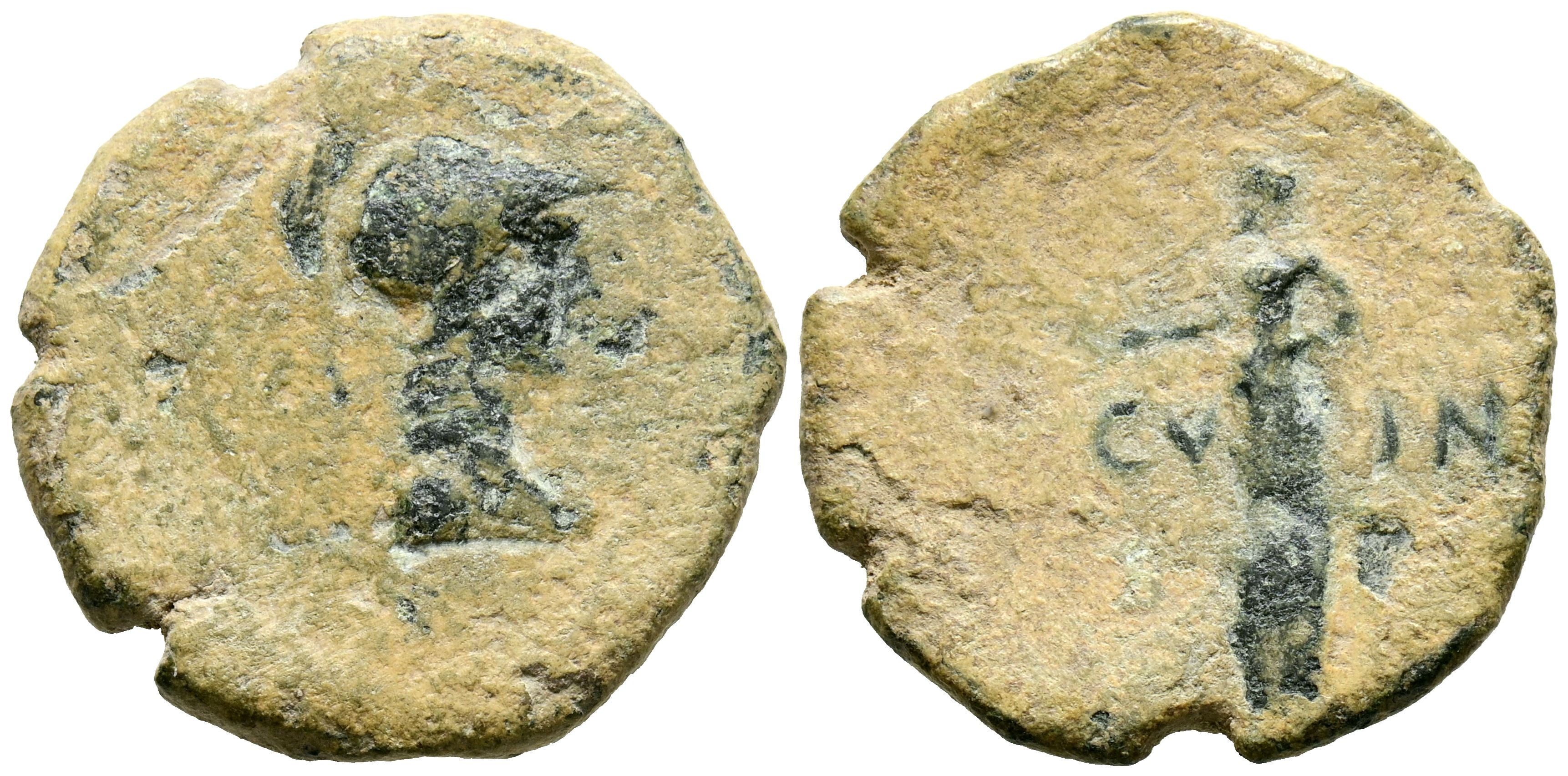 CARTAGONOVA (Cartagena, Murcia). Semis. (Ae. 5,75g/24mm). 50-30 a.C. (FAB-571). Anv: Cabeza femenina con casco a derecha. Rev: Estatua a izquierda, entre leyenda: CV-IN. BC.