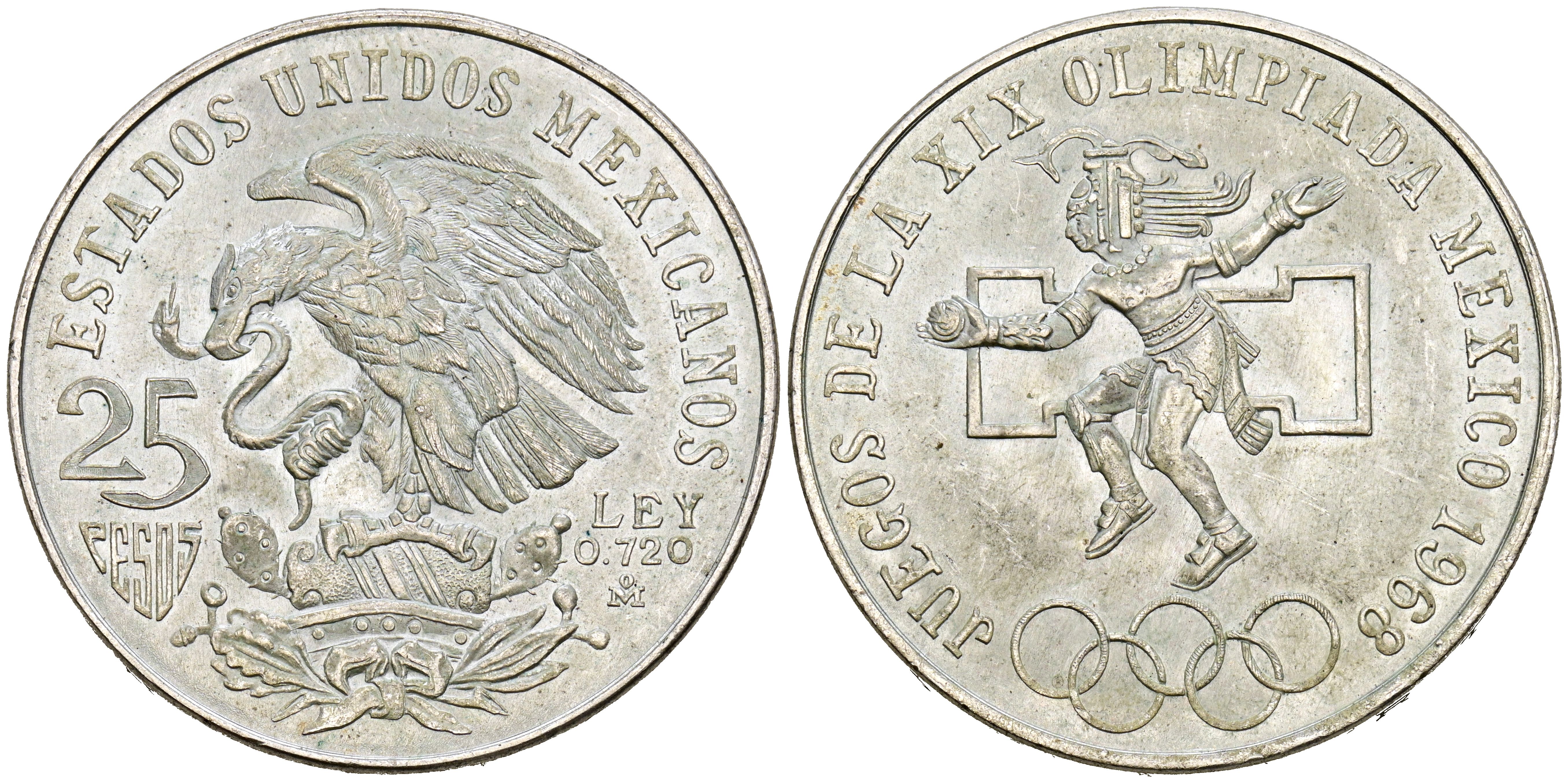 MÉXICO. 25 Pesos. (Ar. 22,44g/38mm). 1968. Juegos Olímpicos de México 68. (Km#468). EBC+.
