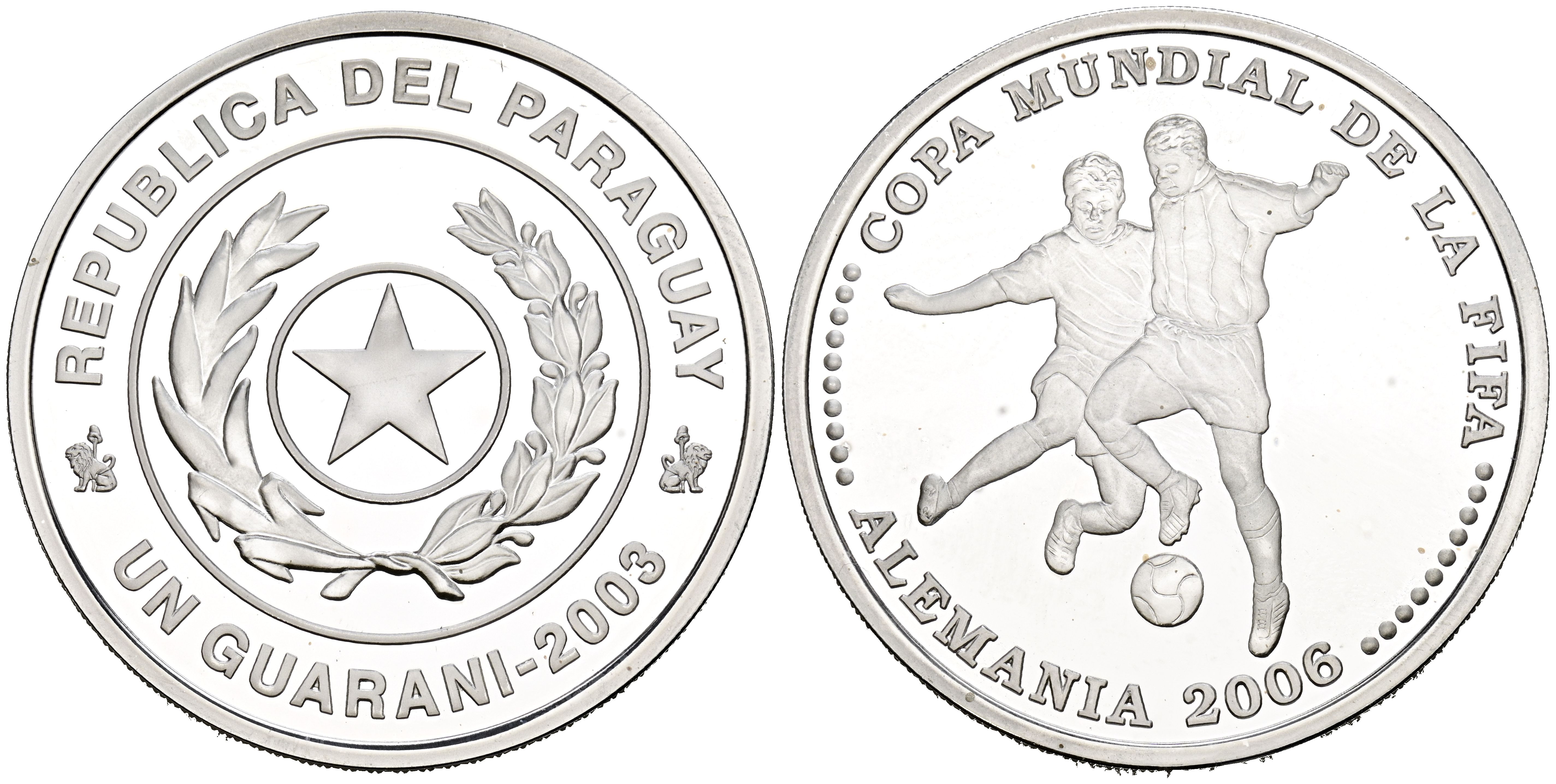 PARAGUAY. 1 Guaraní. (Ar. 27,17g/40mm). 2003. Mundial de Fútbol de Alemania 2006. (Km#201). PROOF.