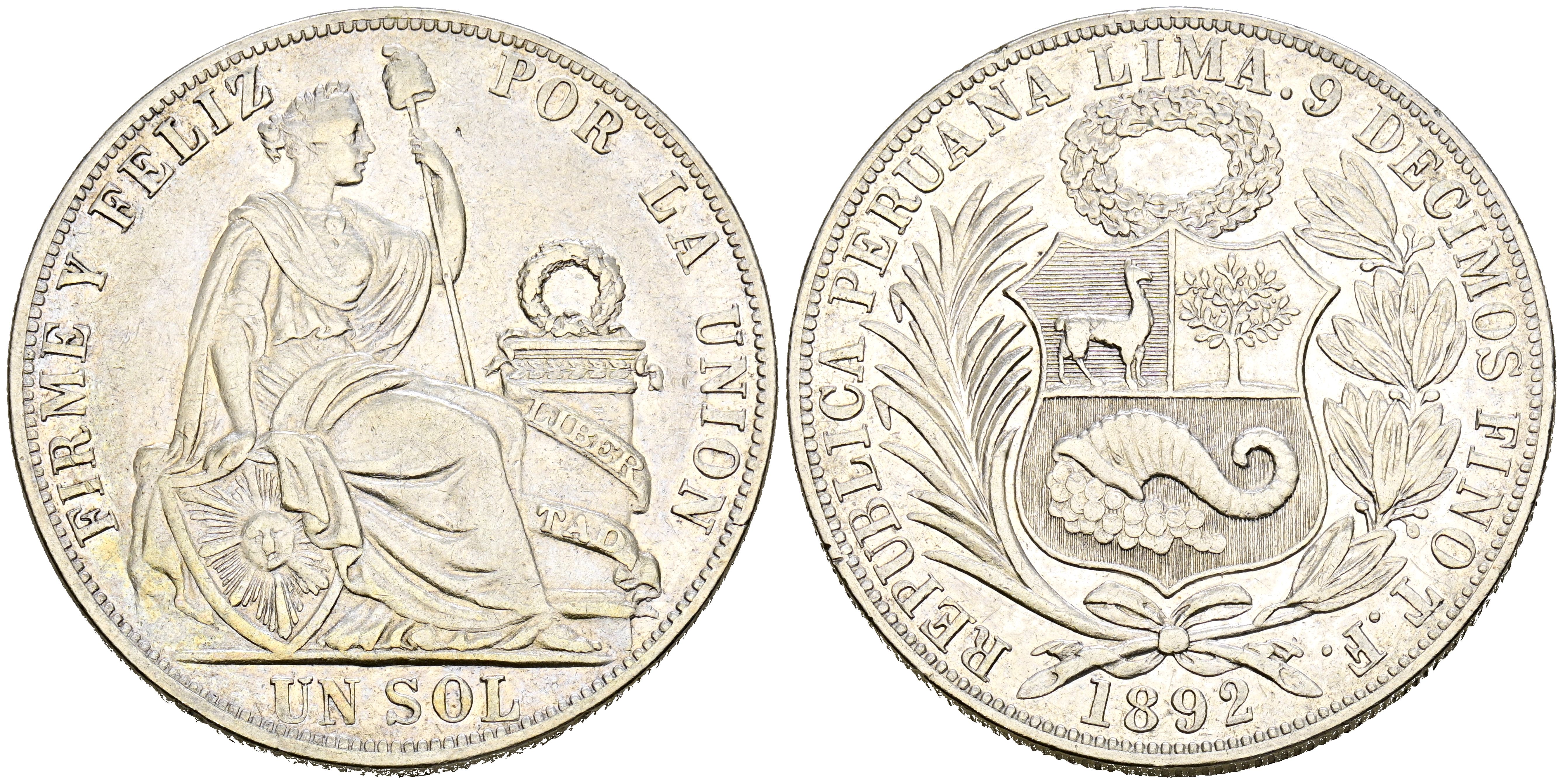 PERÚ. 1 Sol (Ar. 24,74g/38mm). 1892. Lima TF. (Km#196.24). EBC-.