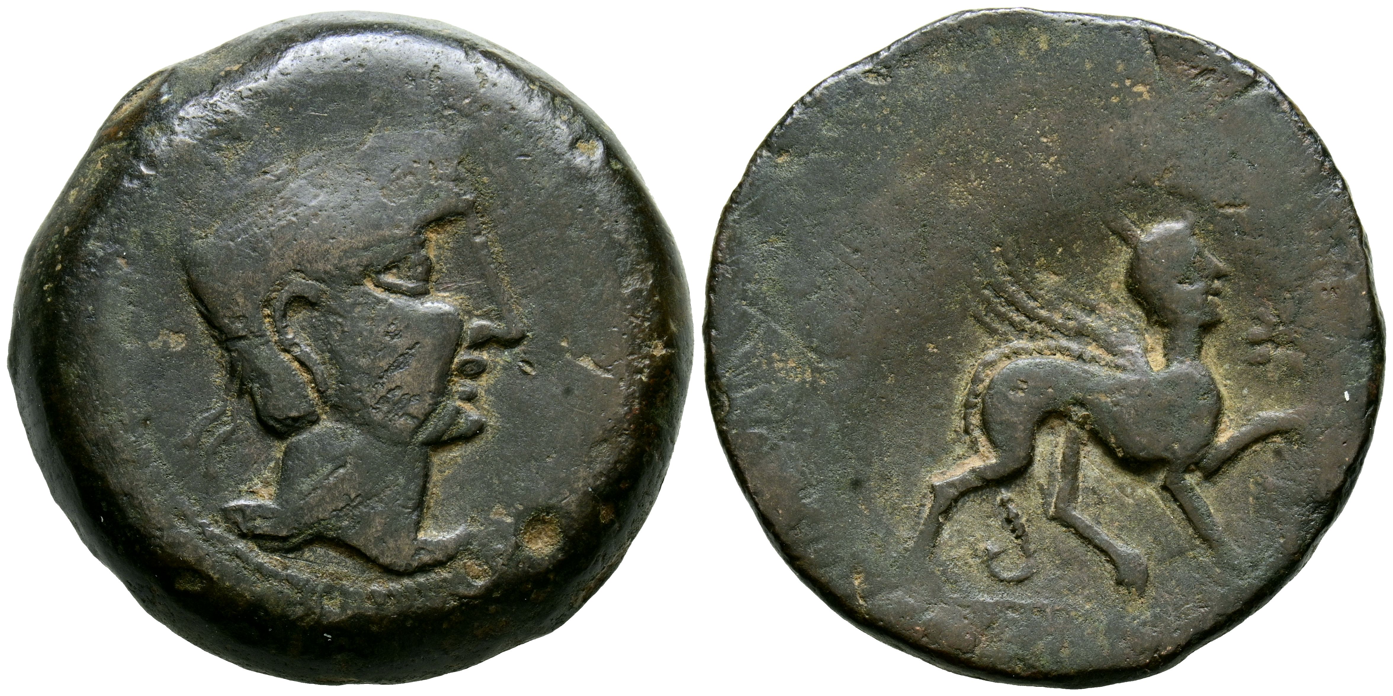 CASTULO (Cazlona, Jaén). As. (Ae. 28,87g/33mm). 180 a.C. (FAB-697). Anv: Cabeza masculina diademada a derecha. Rev: Esfinge a derecha, delante estrella y letra ibérica: Co, debajo leyenda ibérica: CaSTeLE. MBC-.