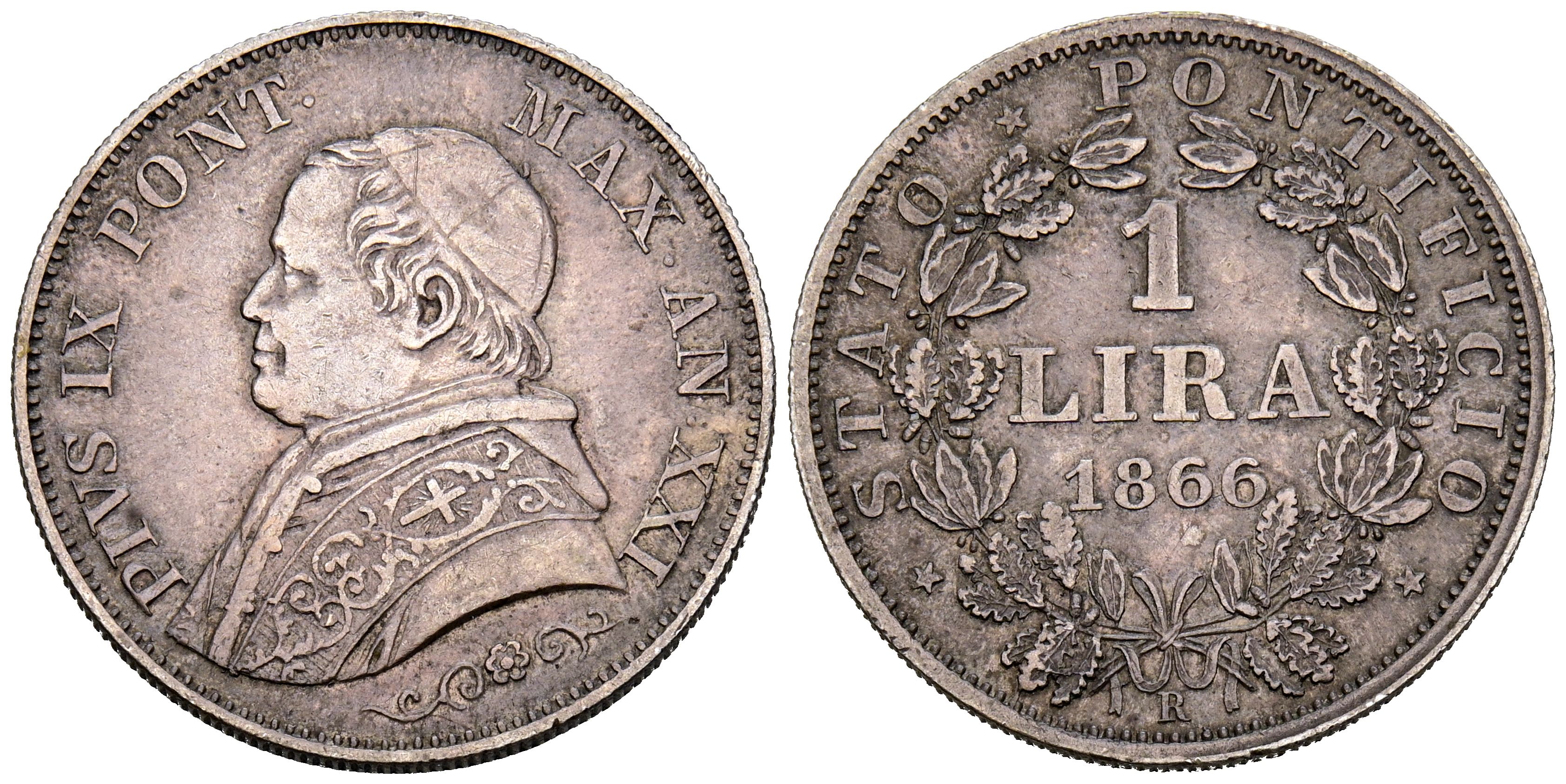 VATICANO, Pio IX. 1 Lira (Ar. 4,95g/24mm). 1866. (Km#1377). MBC+.