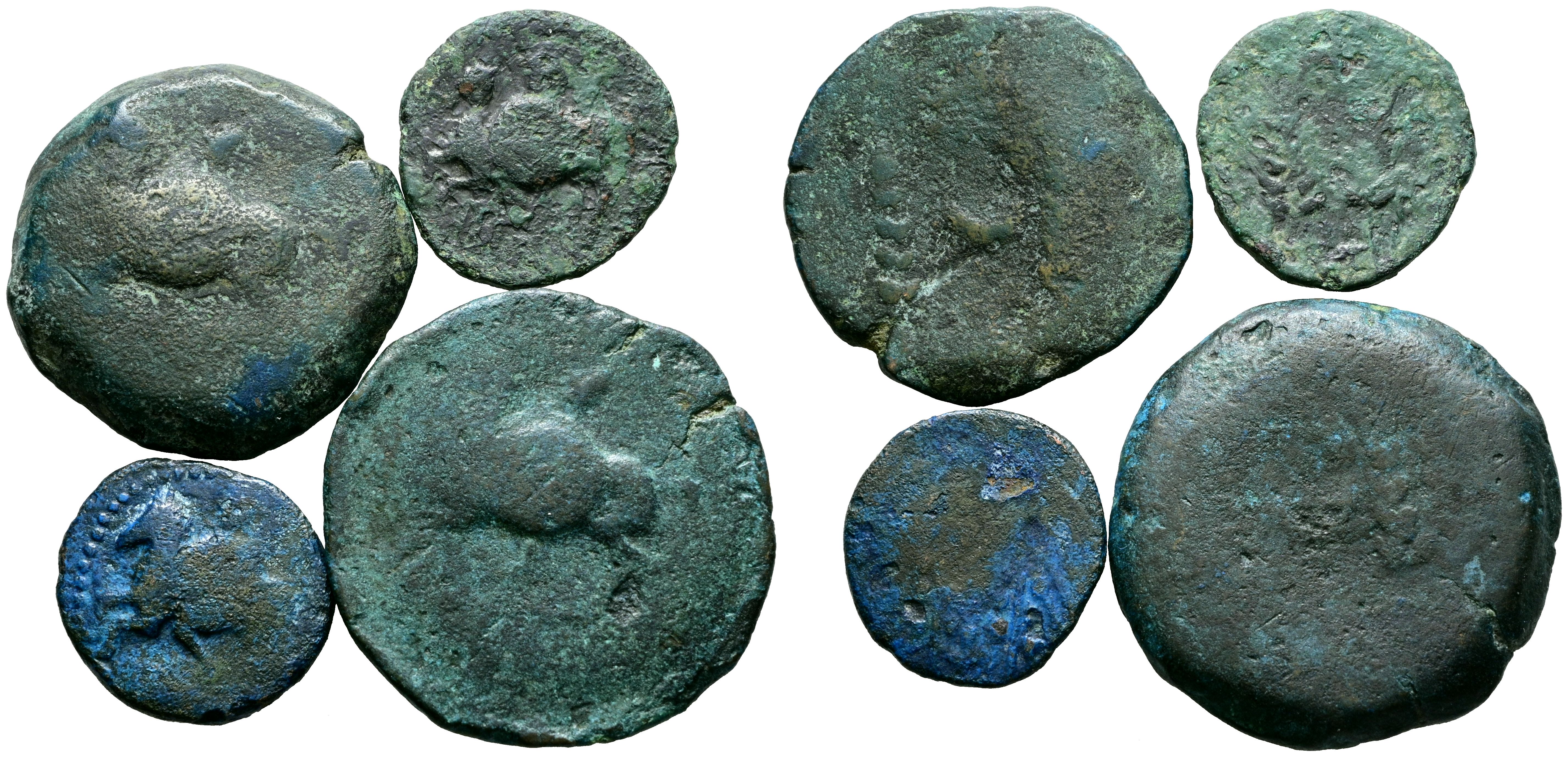 HISPANIA ANTIGUA. Interesante conjunto formado por 4 acuñaciones de la ceca ITUCI. Diferentes módulos, pesos y estados de conservación. A EXAMINAR.