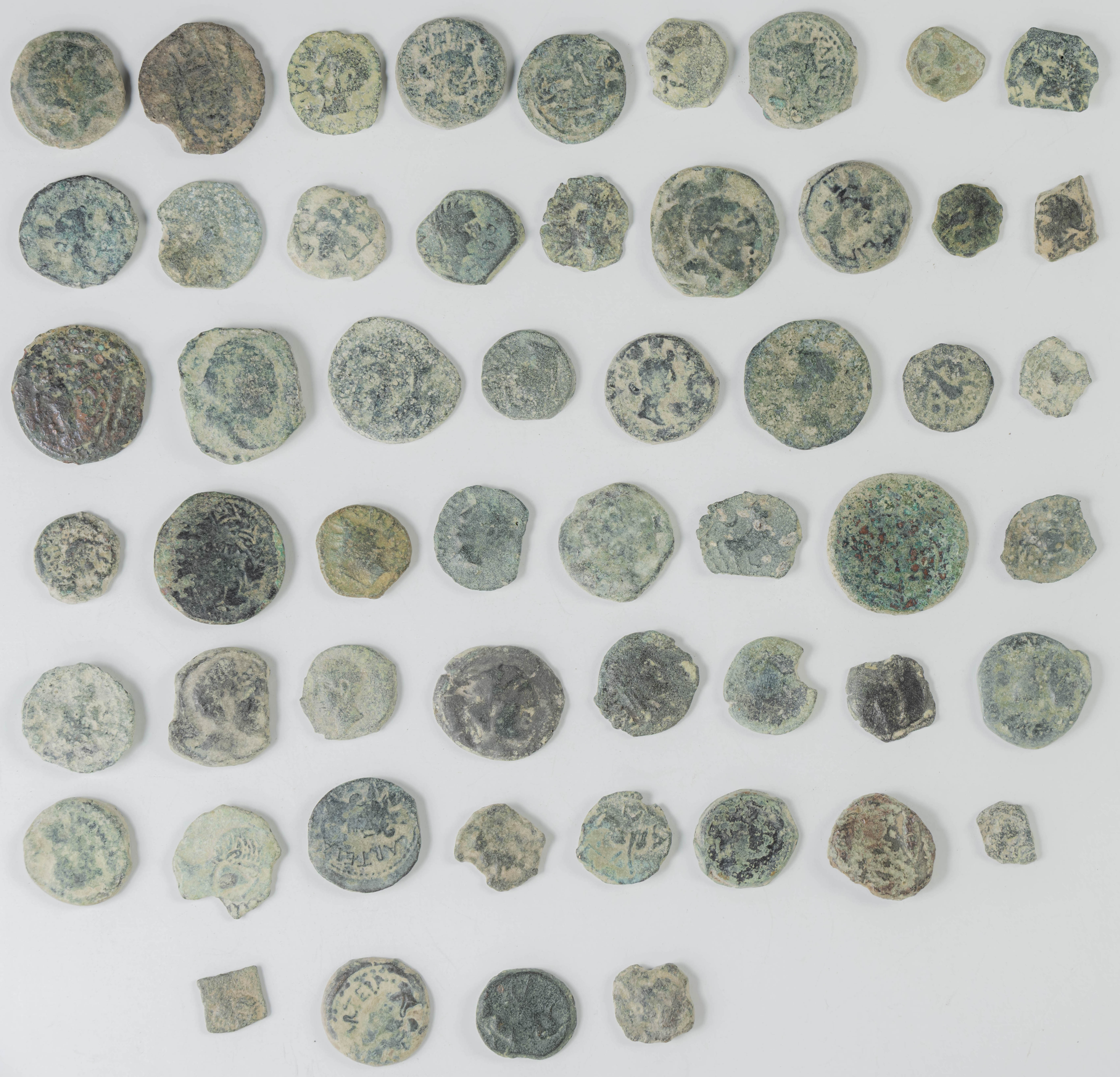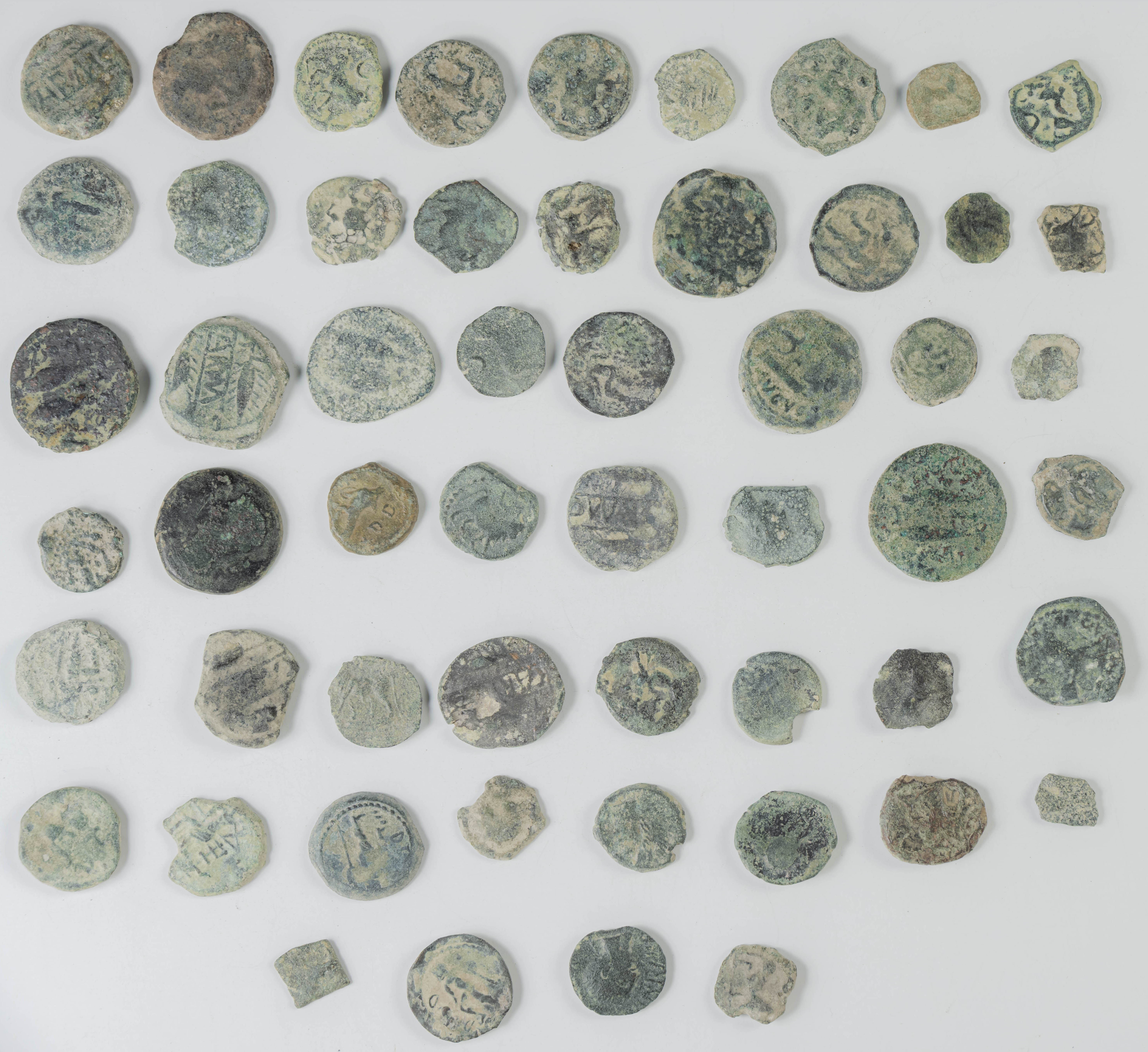 HISPANIA ANTIGUA. Interesante conjunto formado por 54 bronces correspondientes a las cecas de Carmo, Carteia, Cástulo, Gades e Irippo entre otras. Gran variedad de módulos, pesos y estados de conservación. A EXAMINAR.