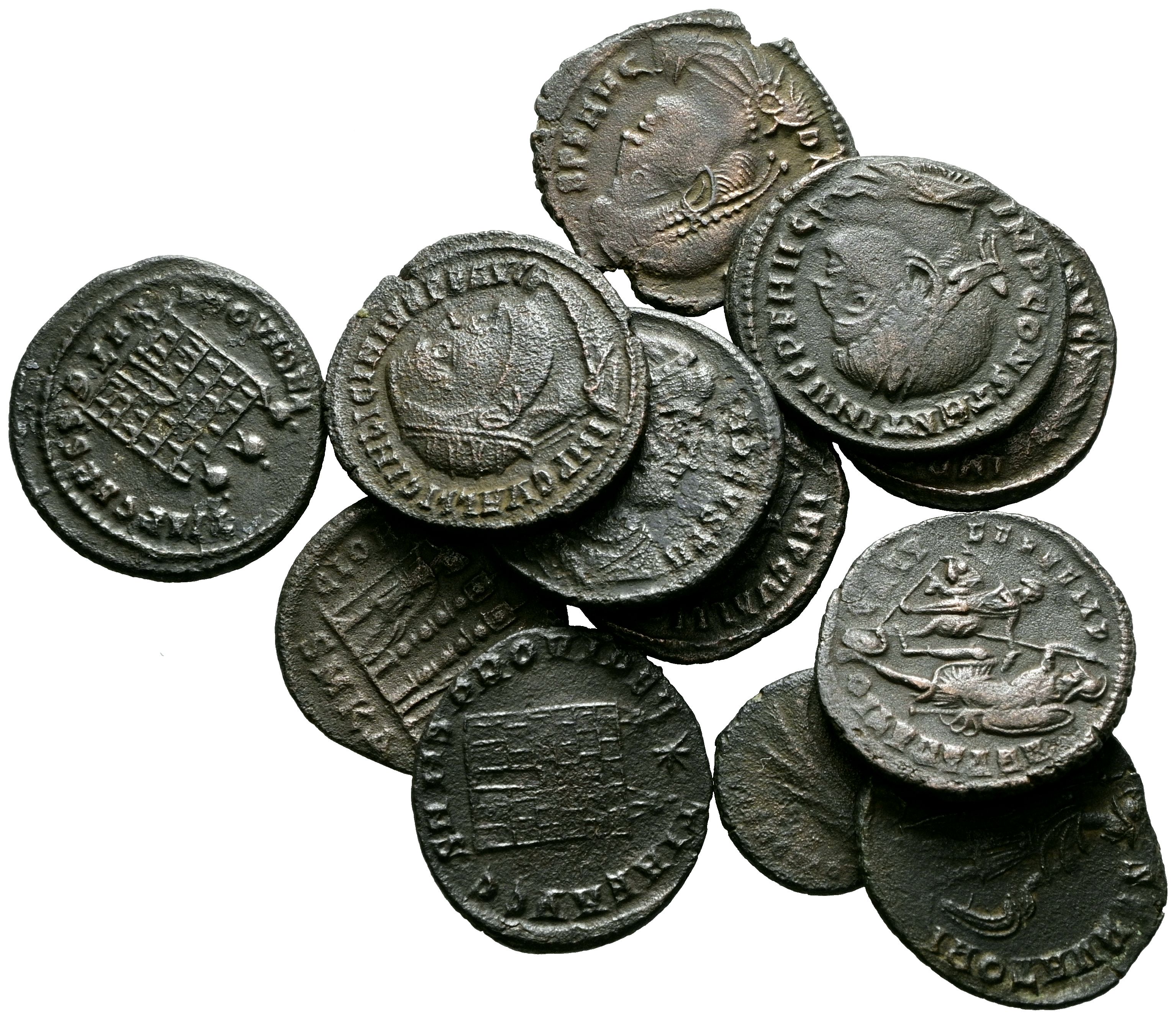 IMPERIO ROMANO. Interesante conjunto formado por 12 bronces de bajo imperio acuñados a nombre de los emperadores: Constantino I, Licinio I, Constantino II y Valente. Diferentes reversos, cecas y estados de conservación. A EXAMINAR.