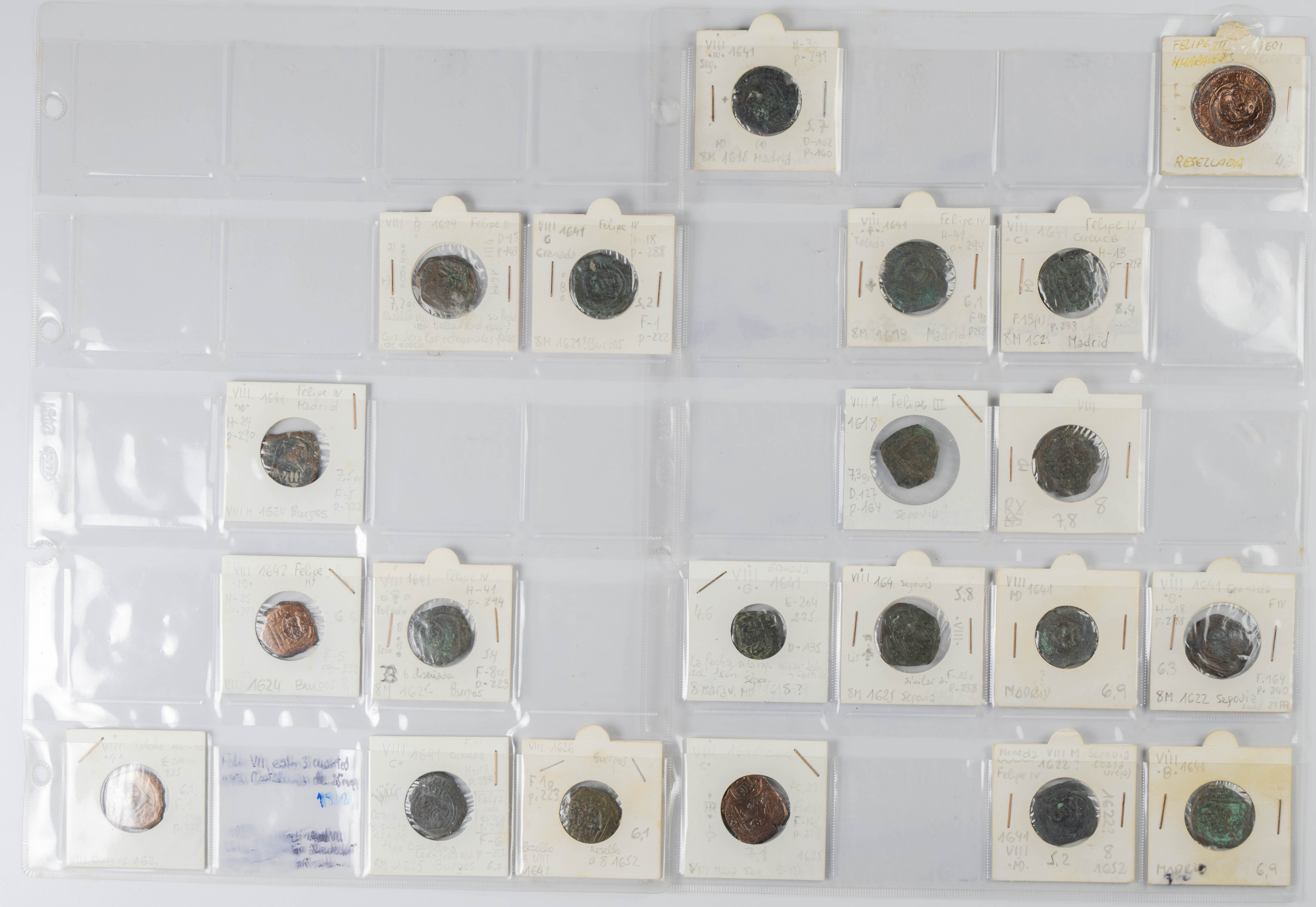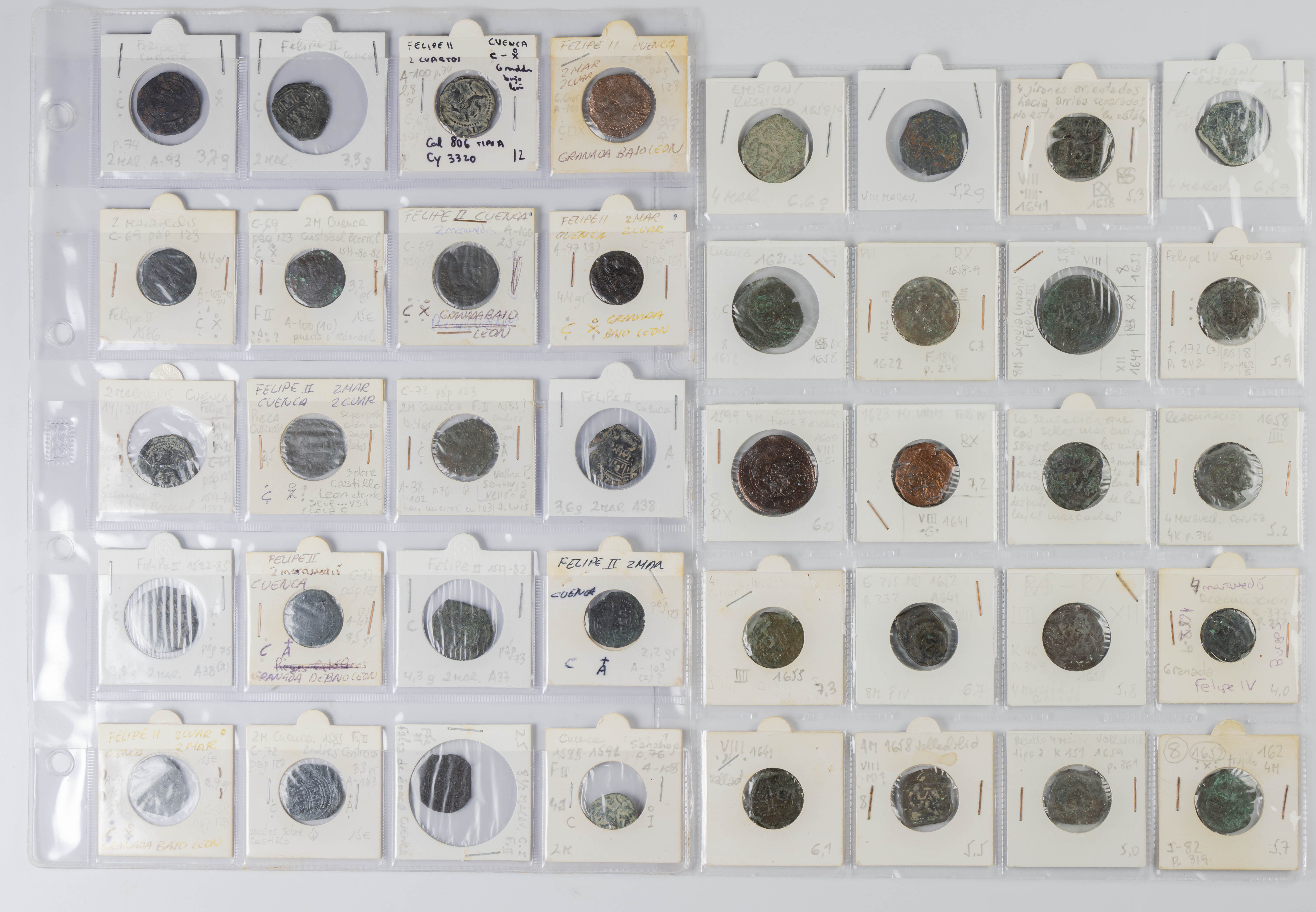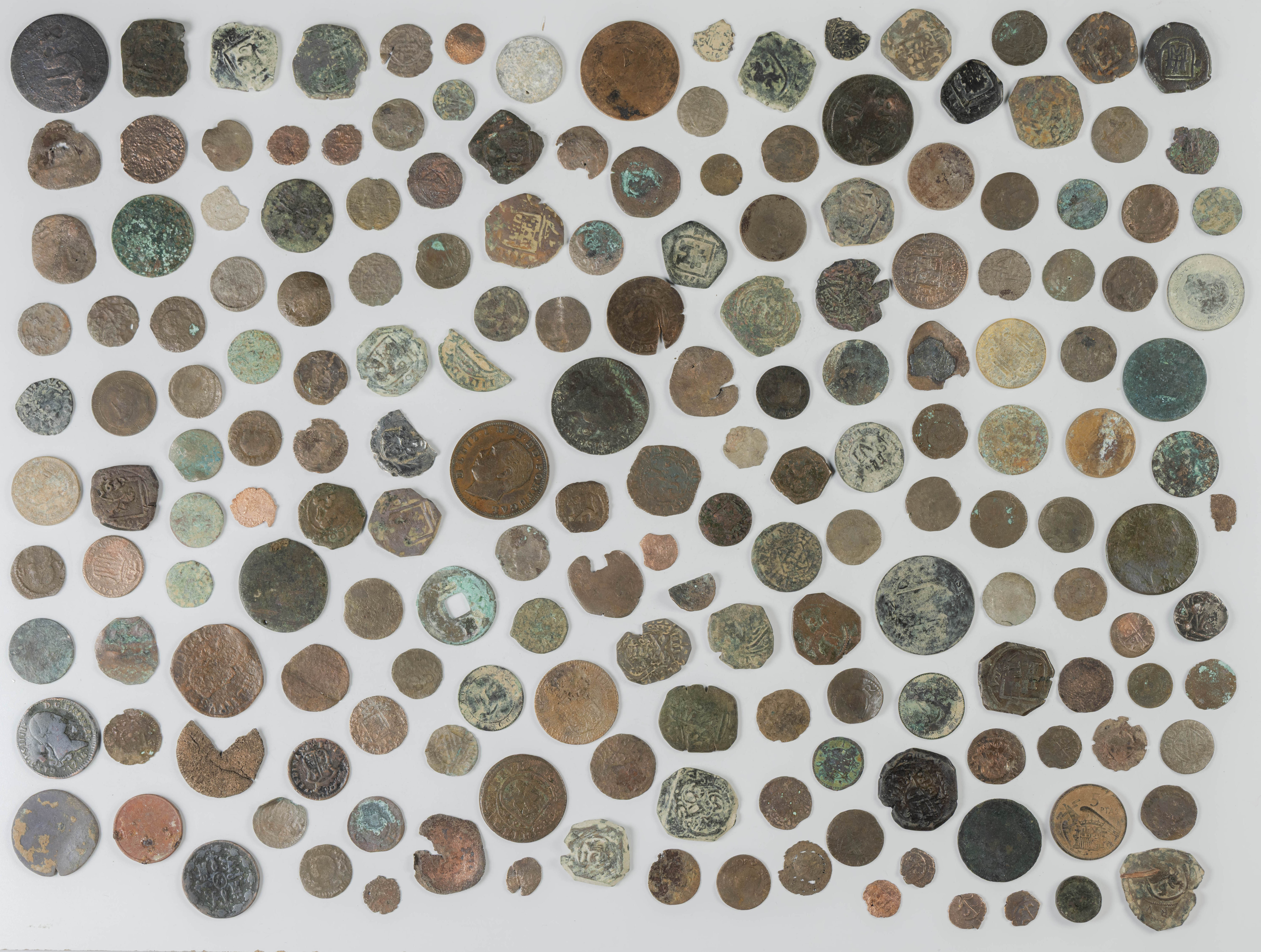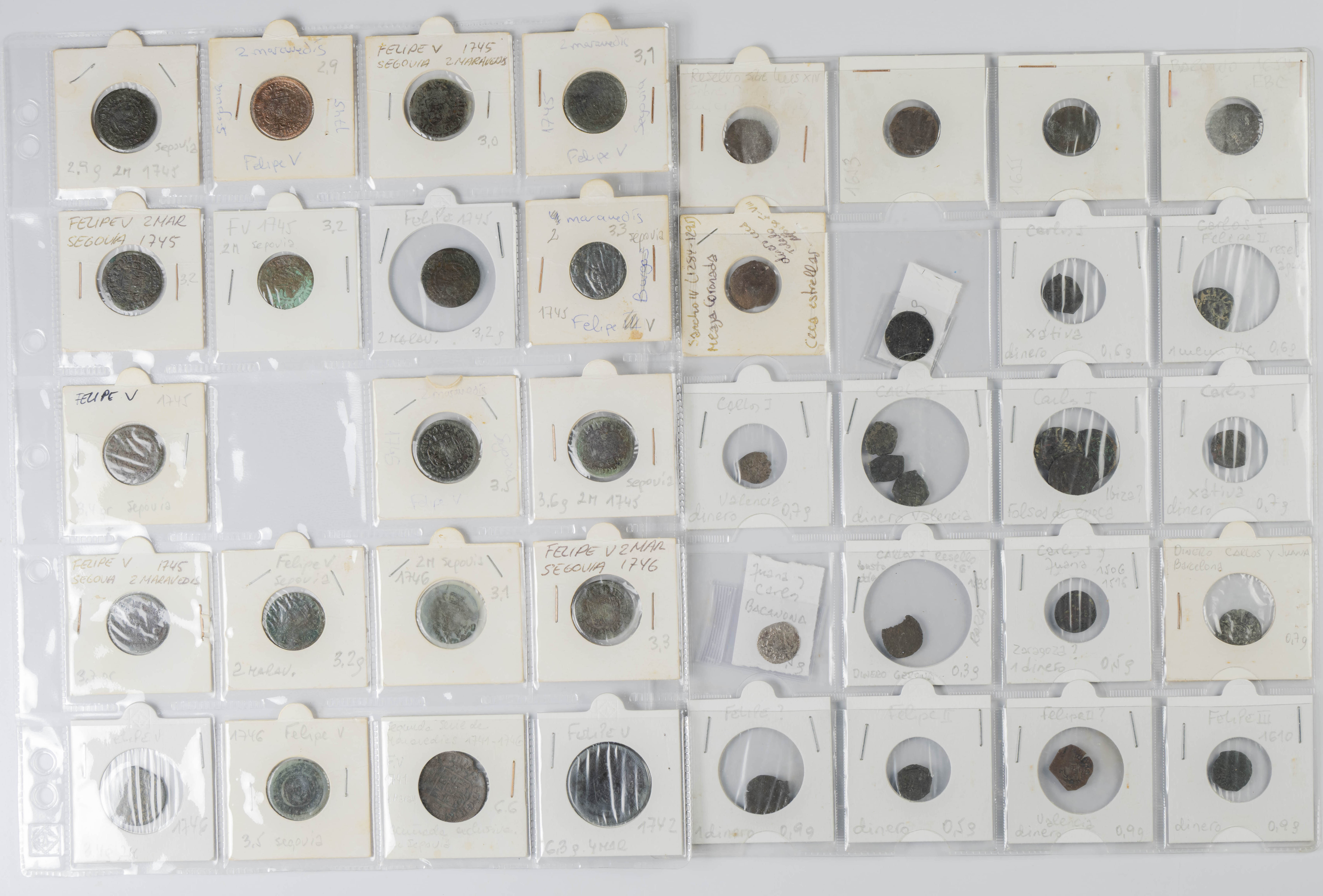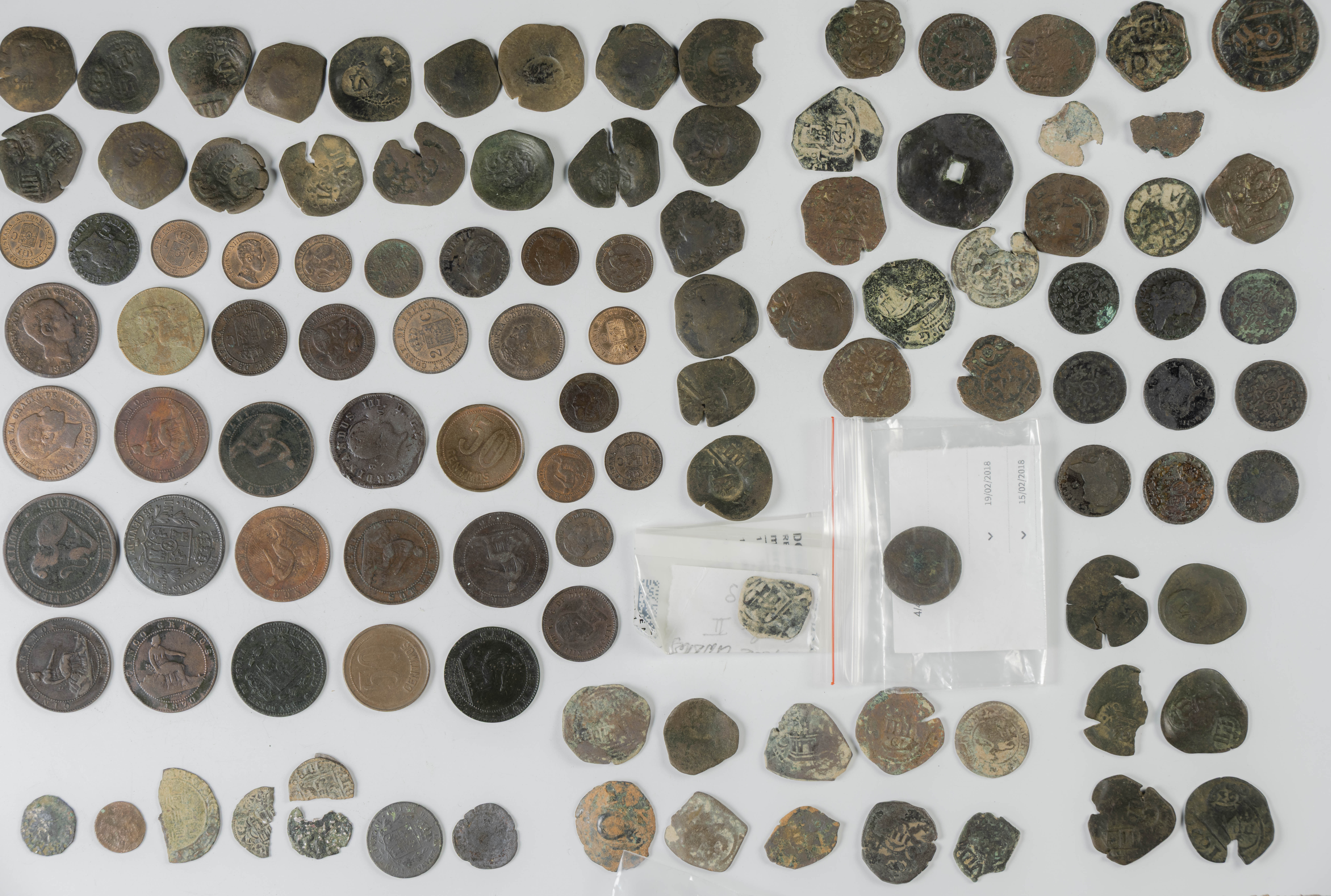 MONARQUÍA ESPAÑOLA. Conjunto formado por centenares de cobres de la Monarquía Española y del Centenario de la Peseta. Incluye piezas tanto de los Austrias como de los Borbones con una gran variedad de módulos y fechas representadas con una buena representación, también, de piezas reselladas. Diferentes estados de conservación. A EXAMINAR.
