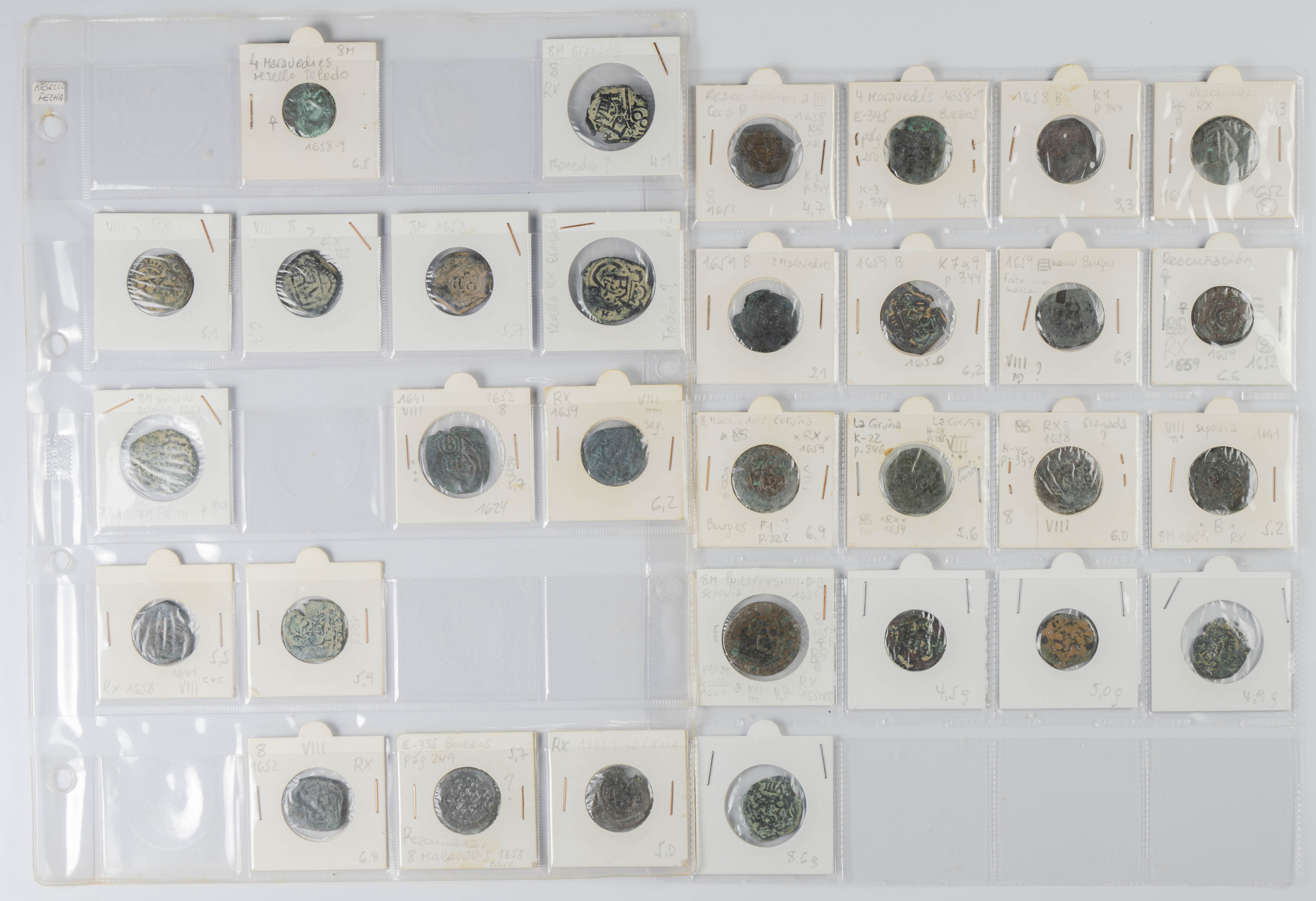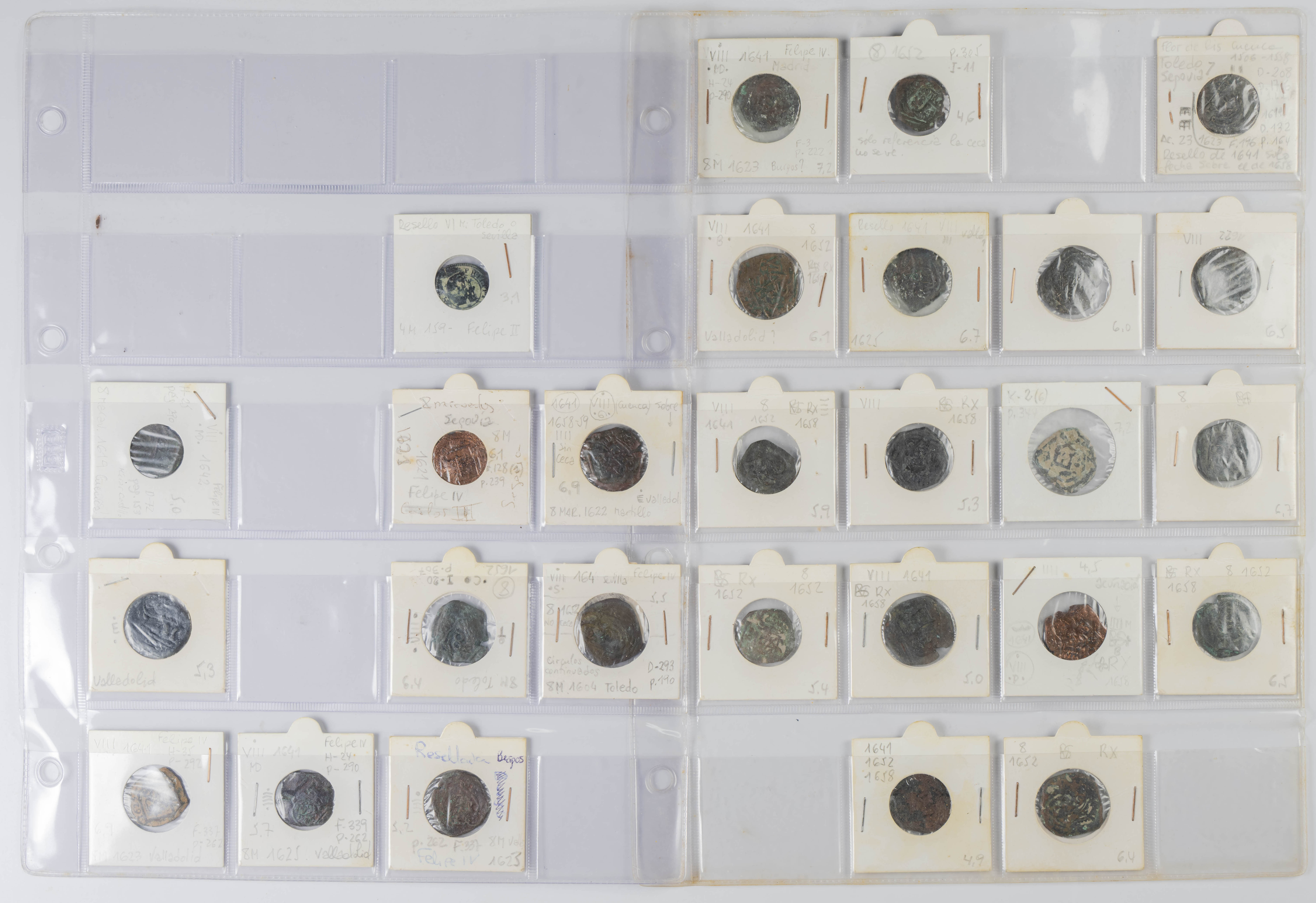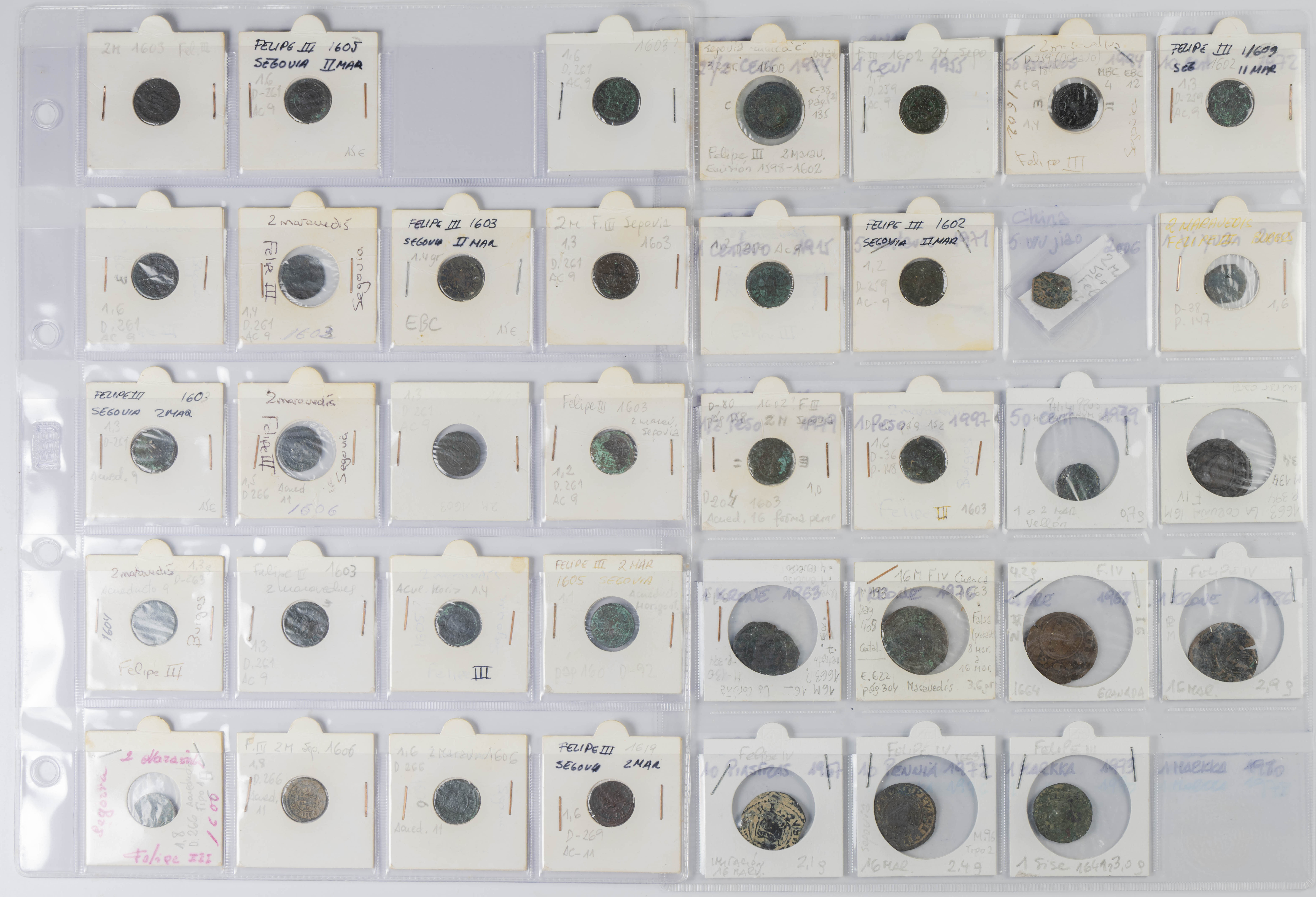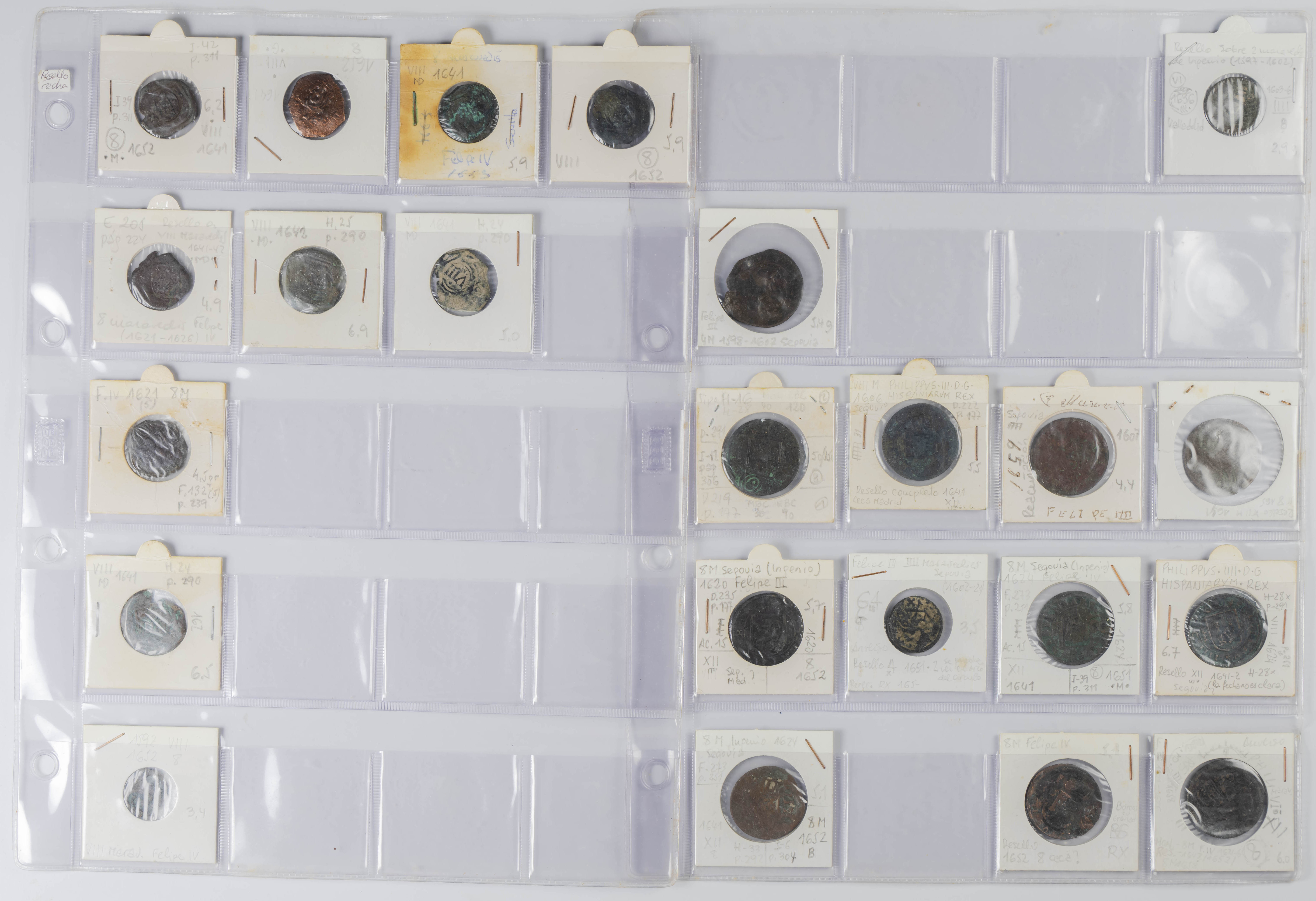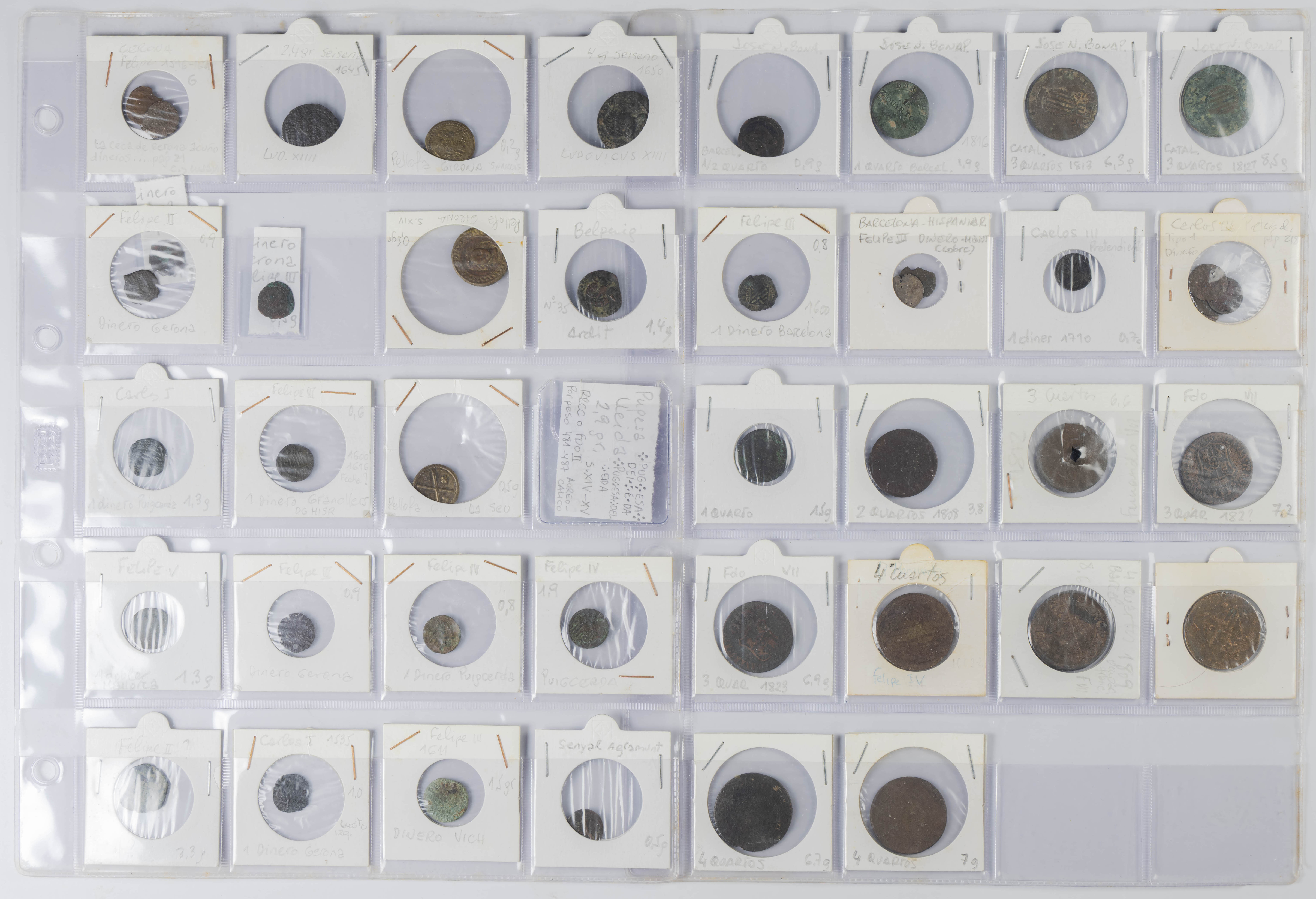 MONARQUÍA ESPAÑOLA. Conjunto formado por centenares de cobres de la Monarquía Española y del Centenario de la Peseta. Incluye piezas tanto de los Austrias como de los Borbones con una gran variedad de módulos y fechas representadas con una buena representación, también, de piezas reselladas. Diferentes estados de conservación. A EXAMINAR.