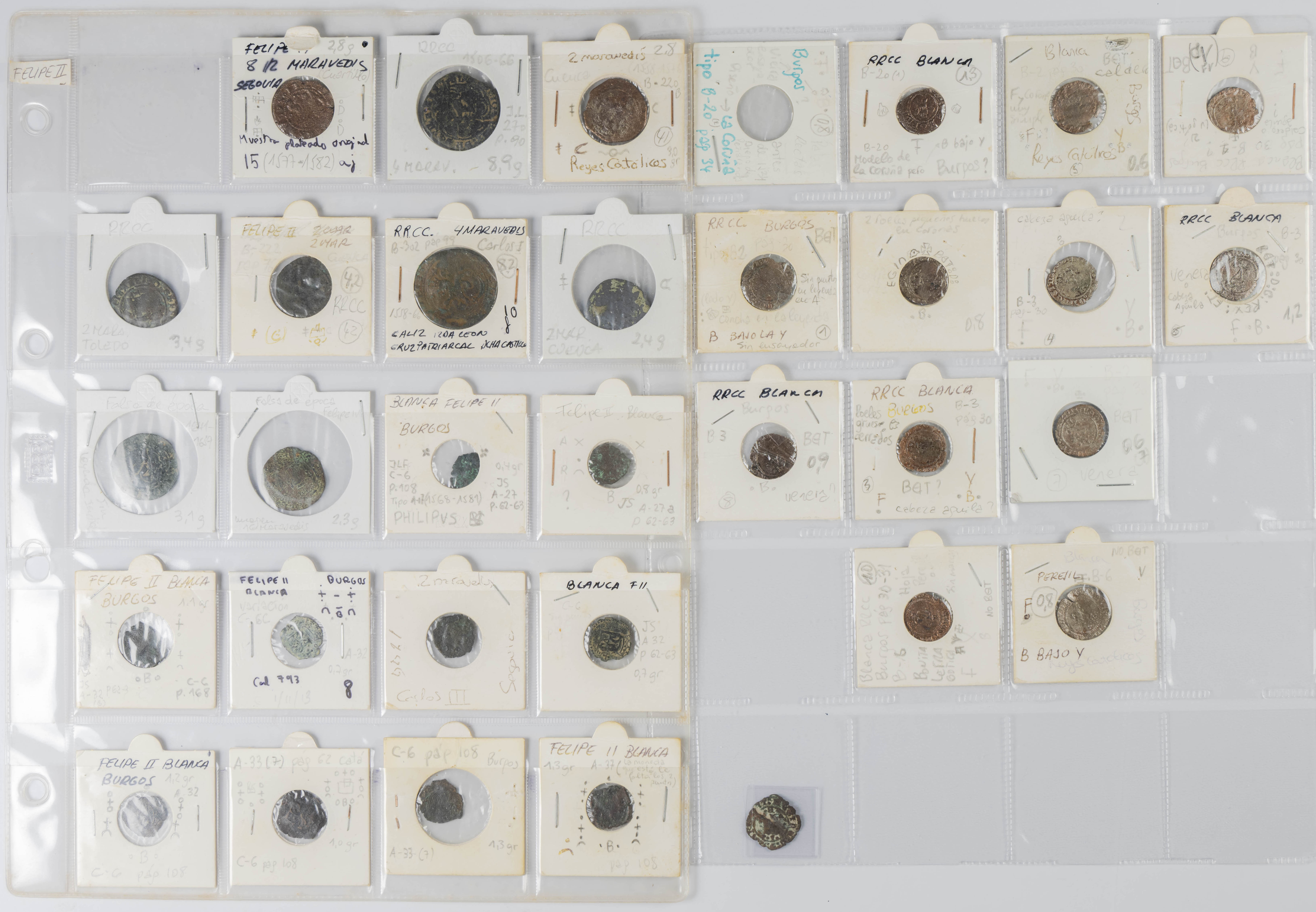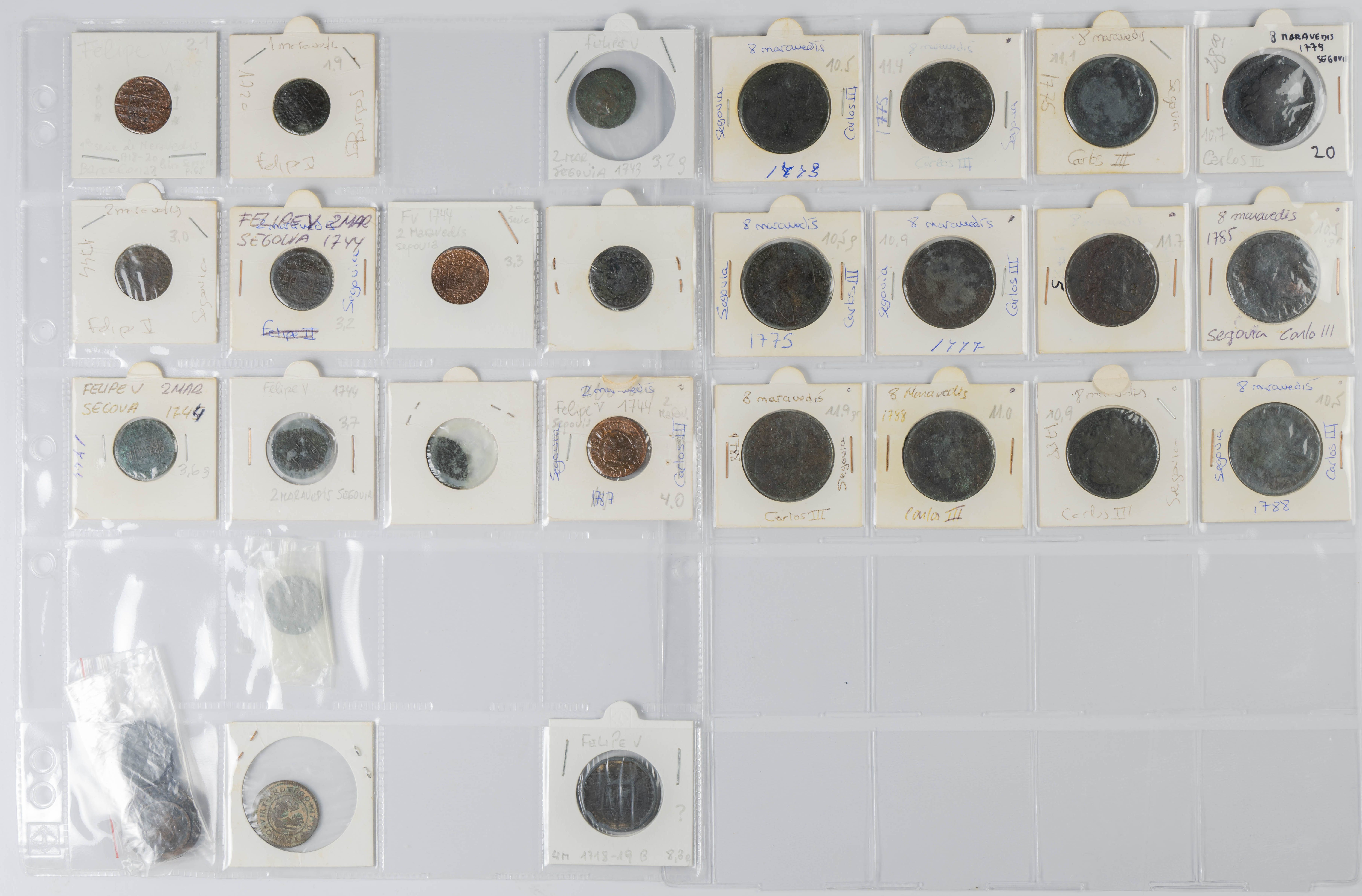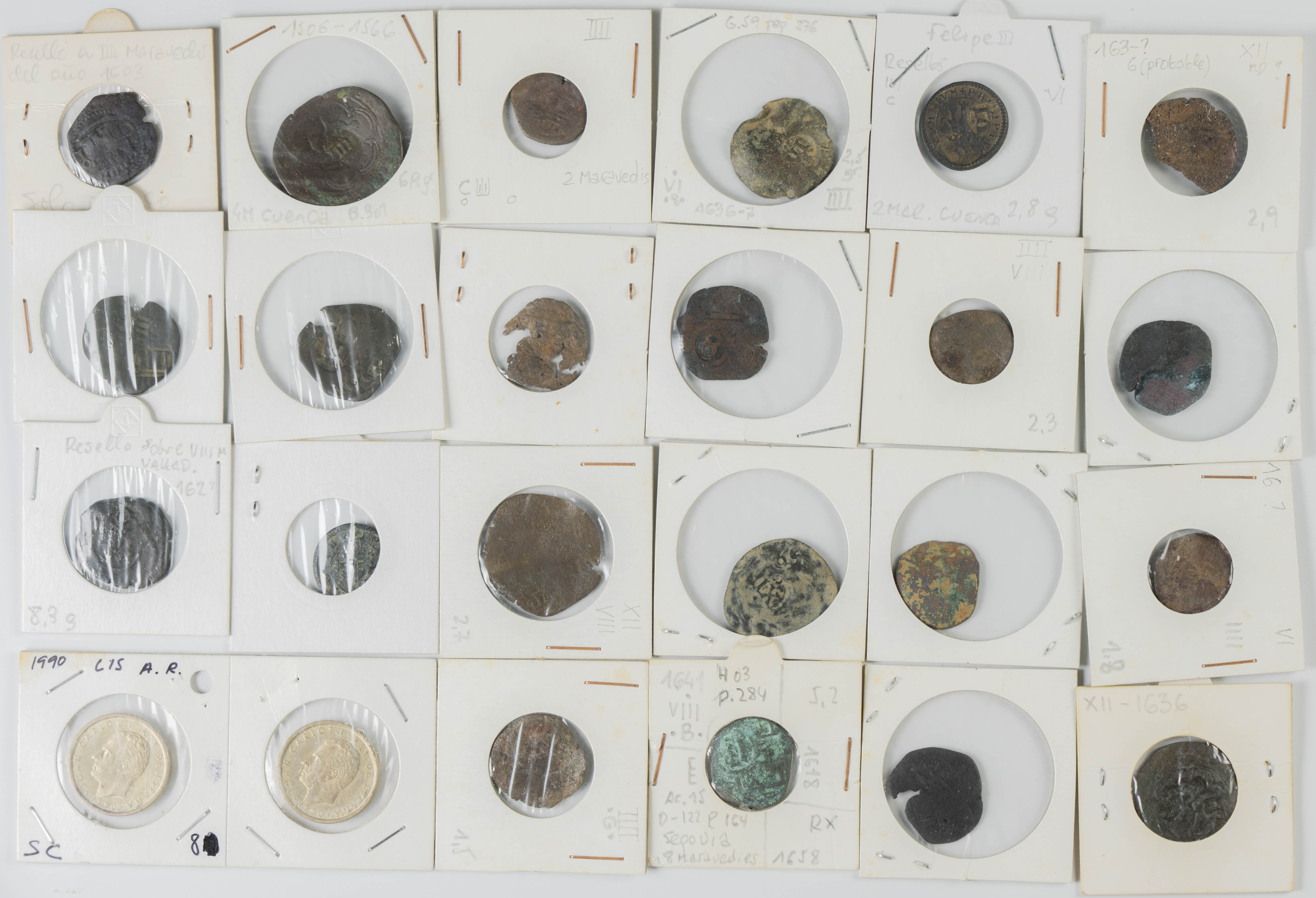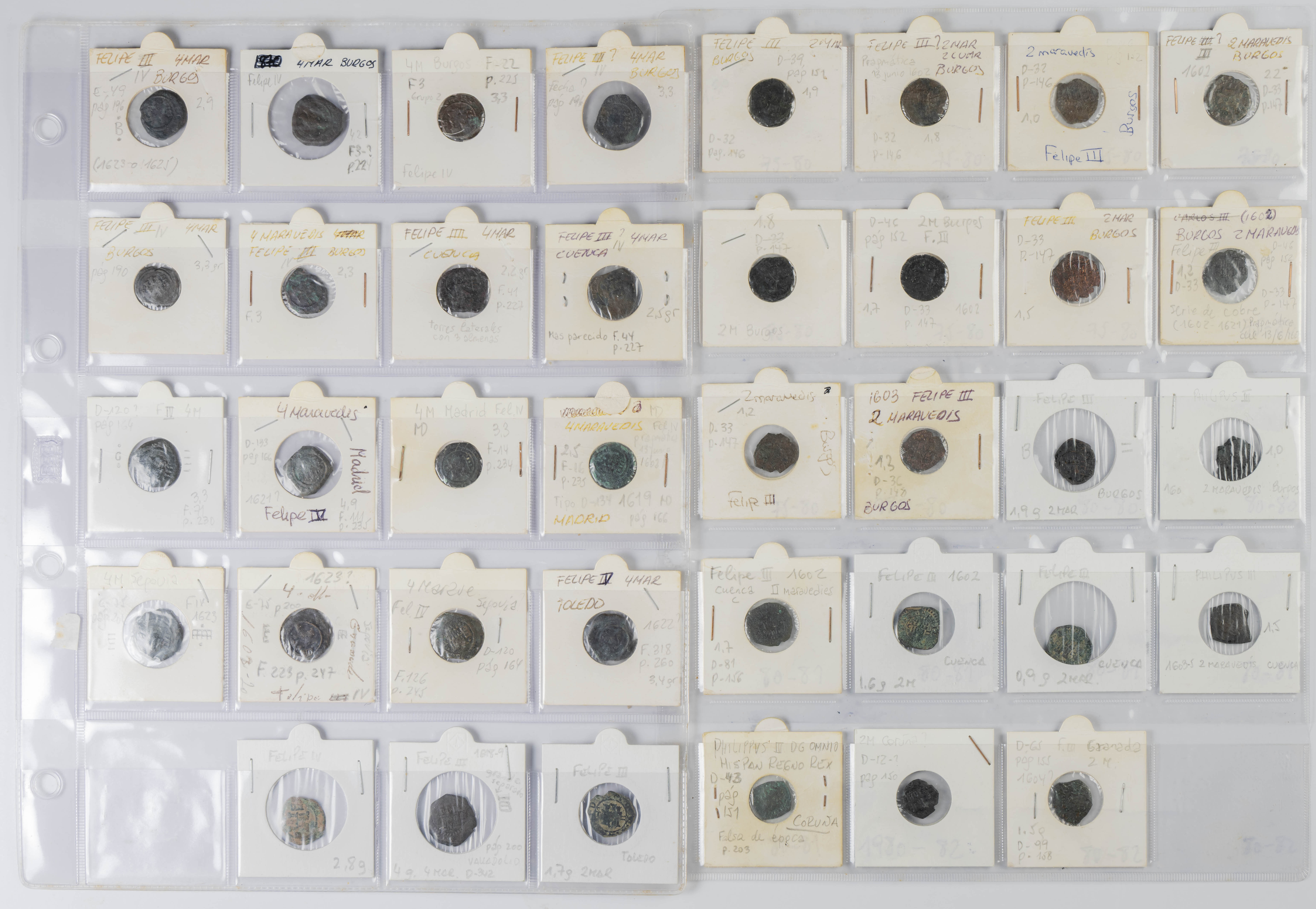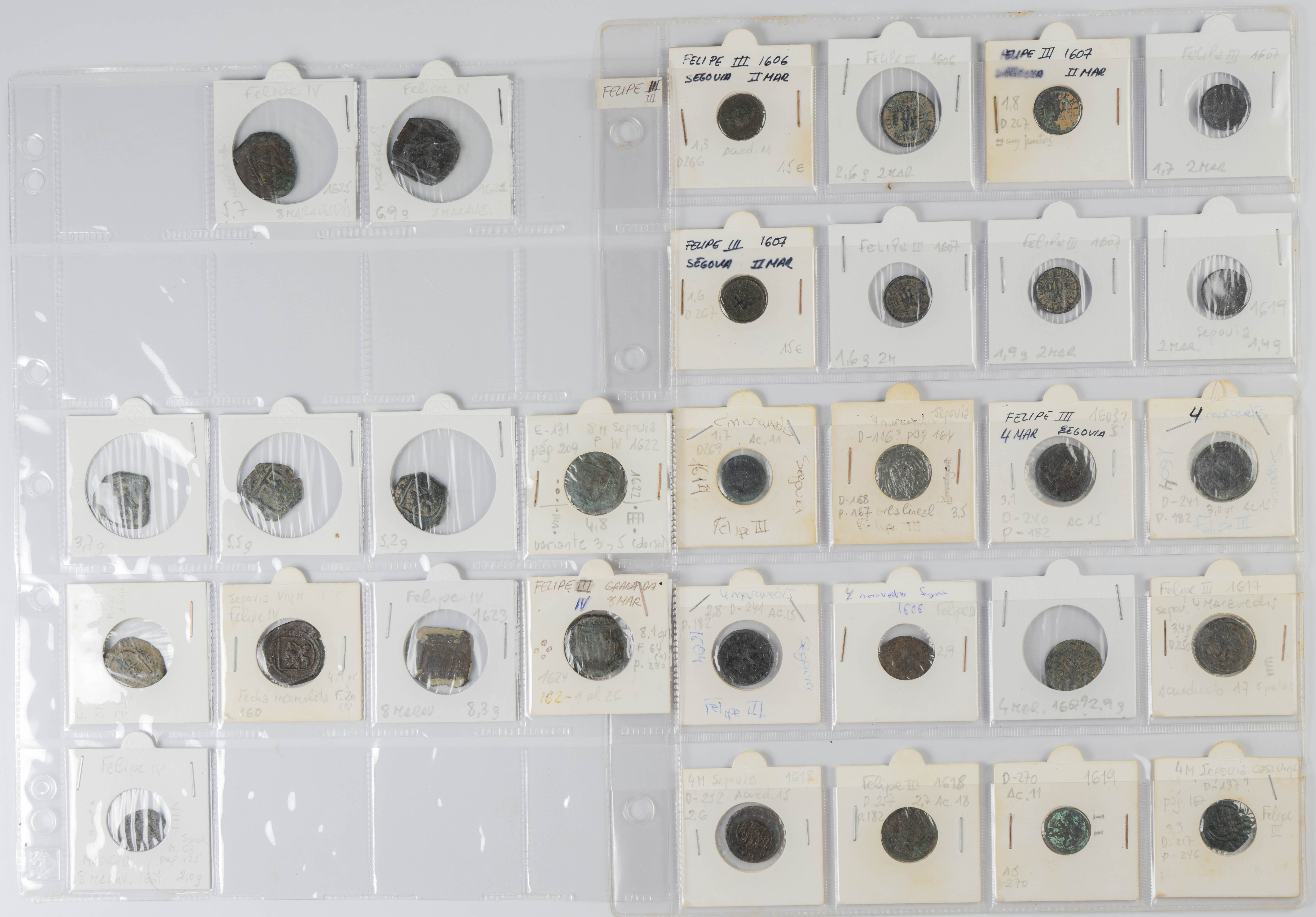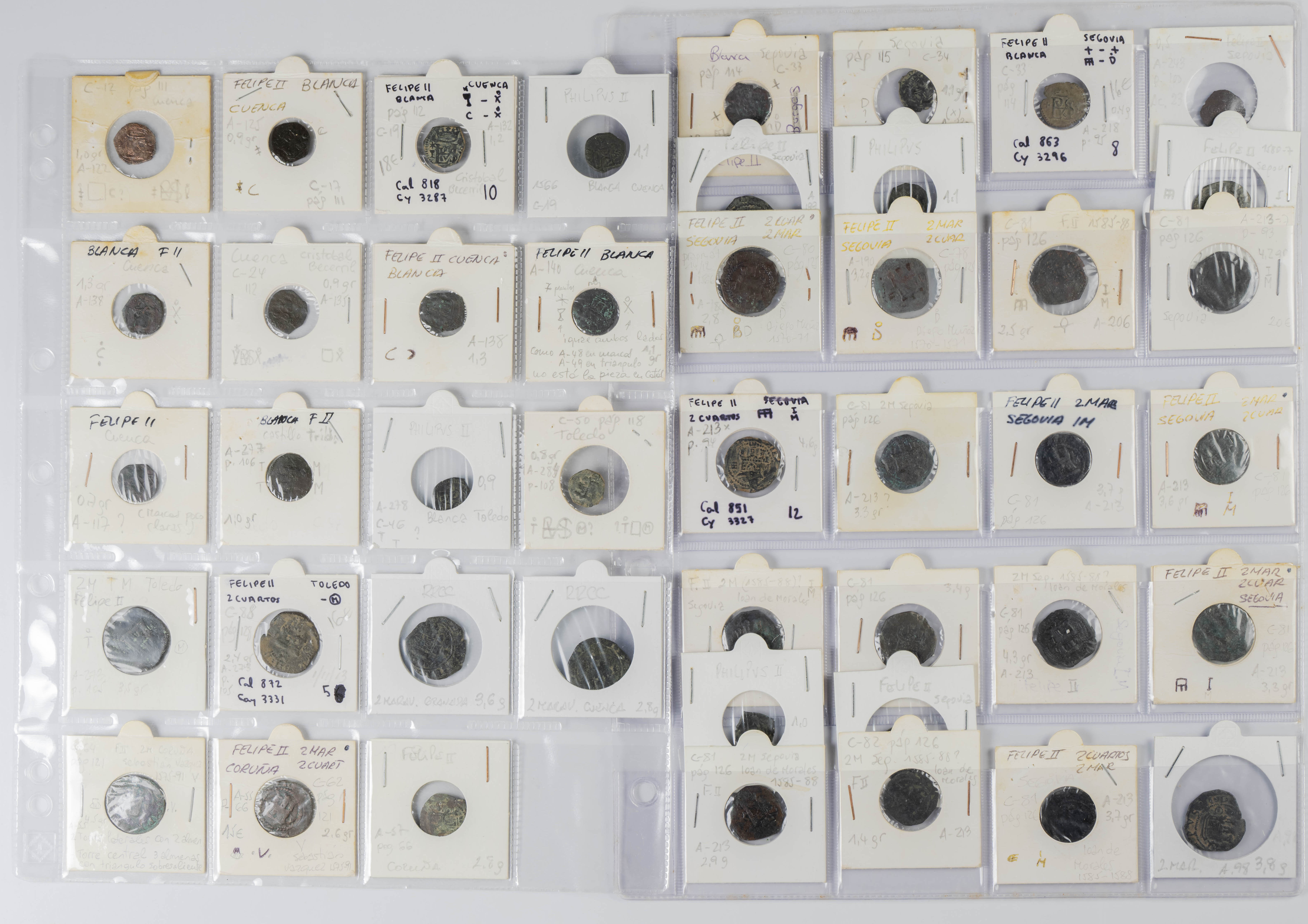 MONARQUÍA ESPAÑOLA. Conjunto formado por centenares de cobres de la Monarquía Española y del Centenario de la Peseta. Incluye piezas tanto de los Austrias como de los Borbones con una gran variedad de módulos y fechas representadas con una buena representación, también, de piezas reselladas. Diferentes estados de conservación. A EXAMINAR.