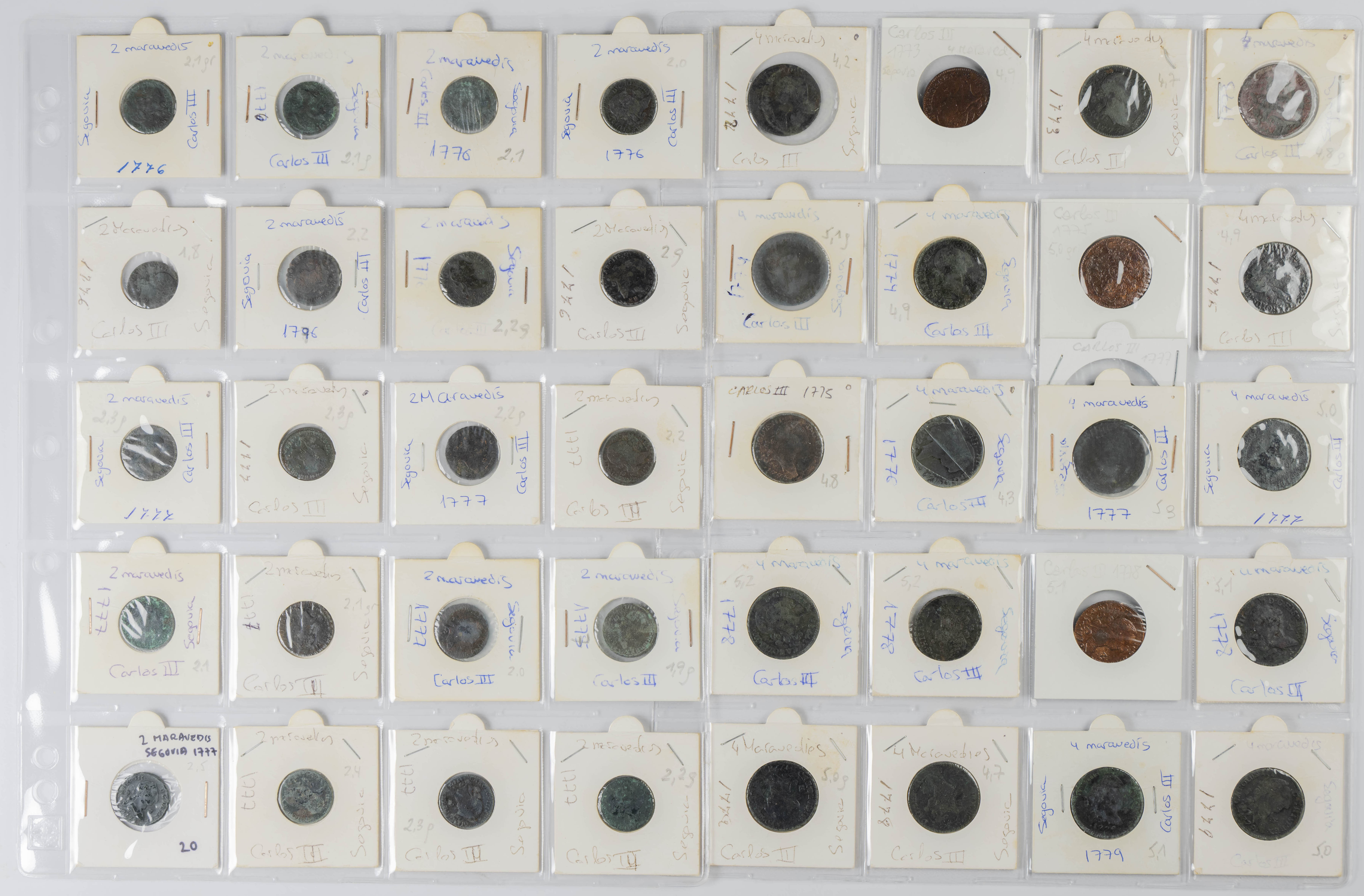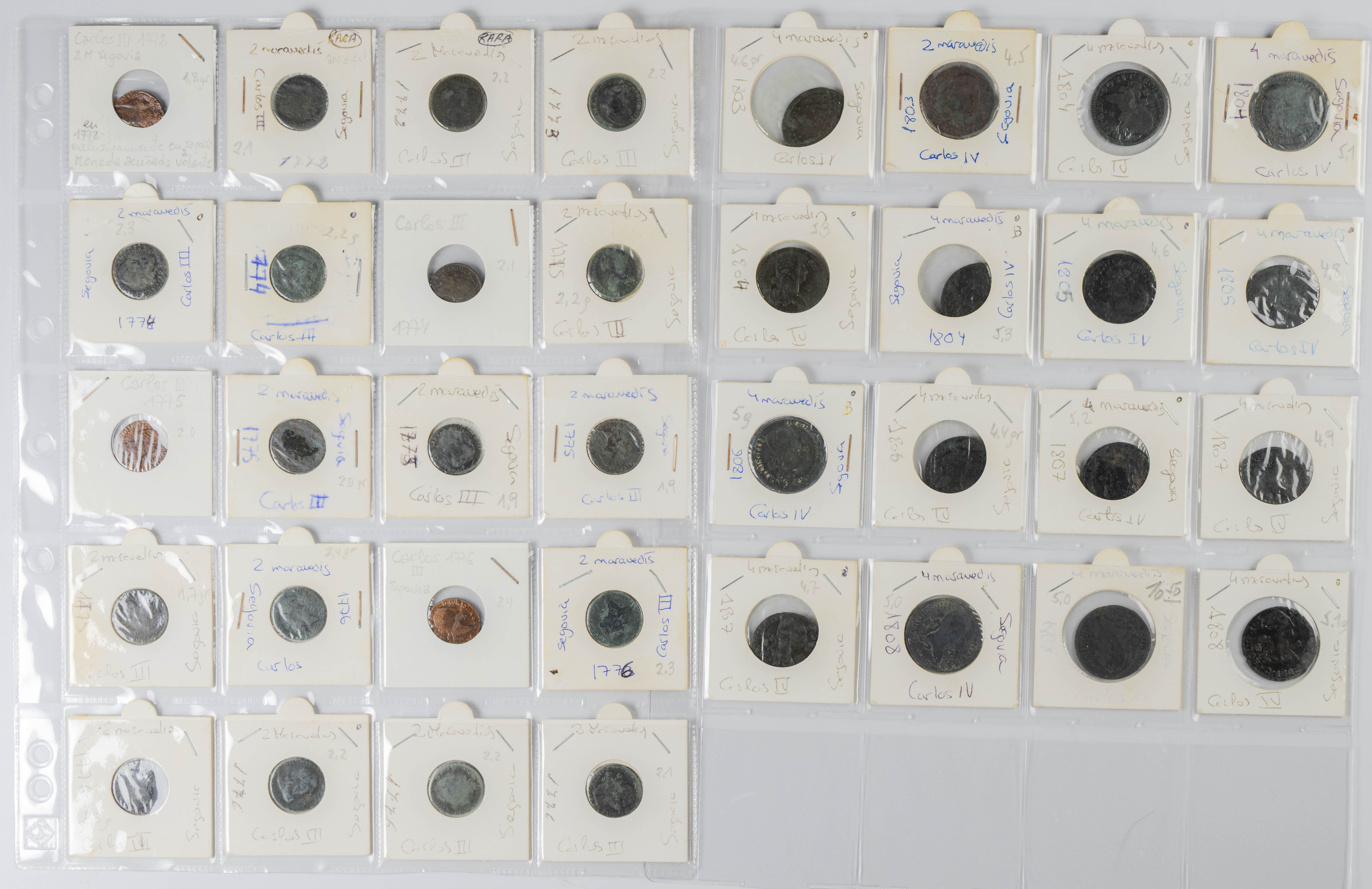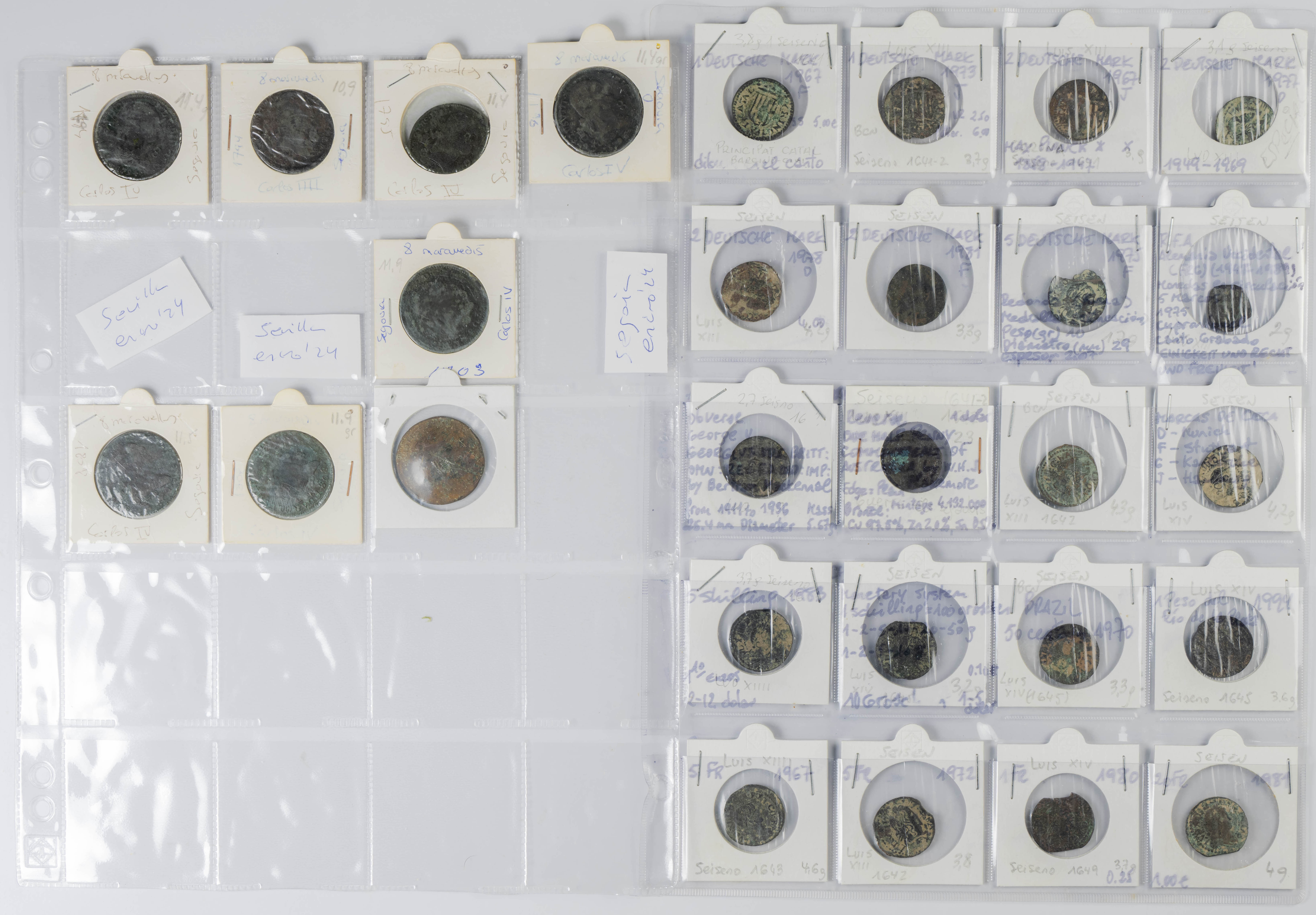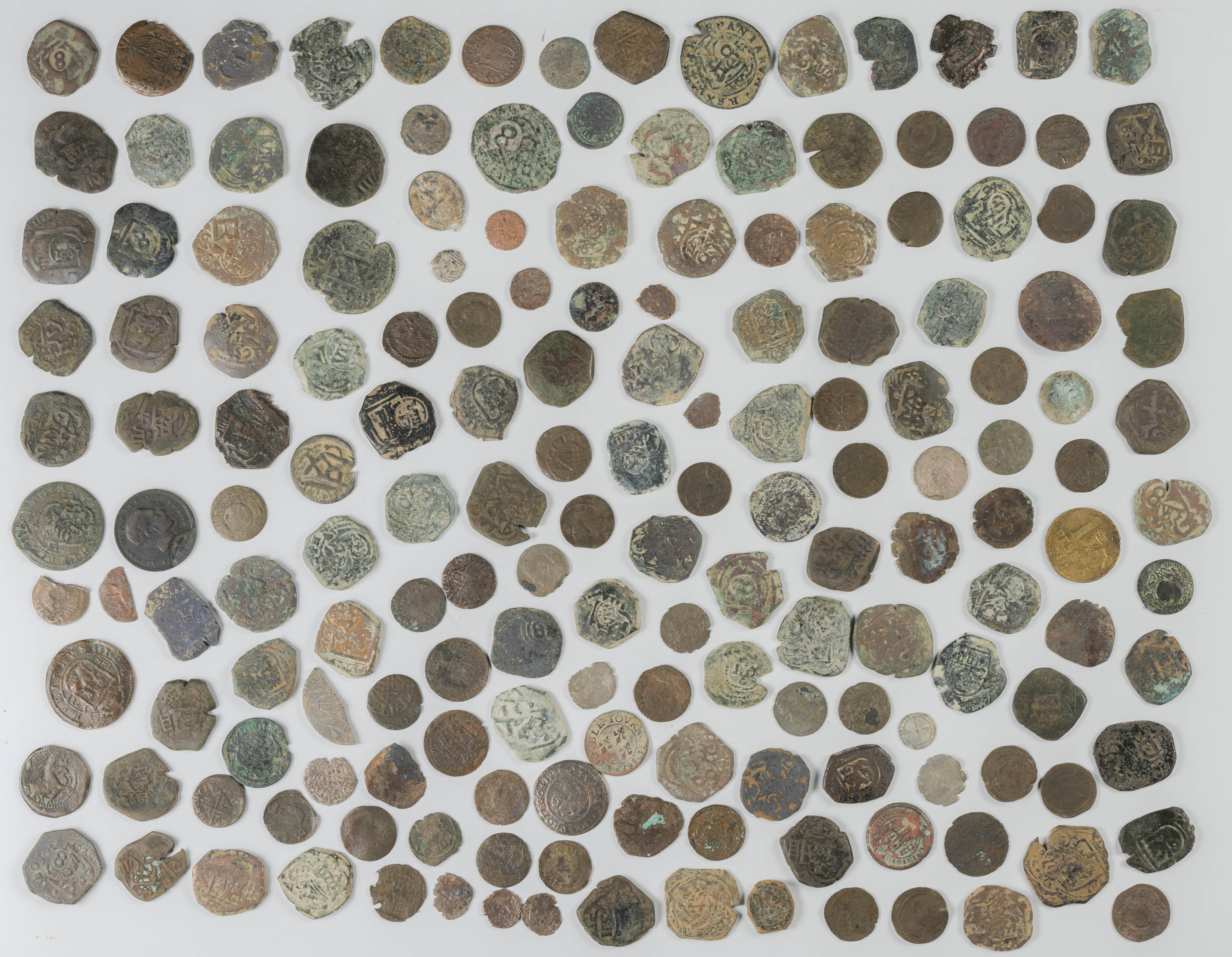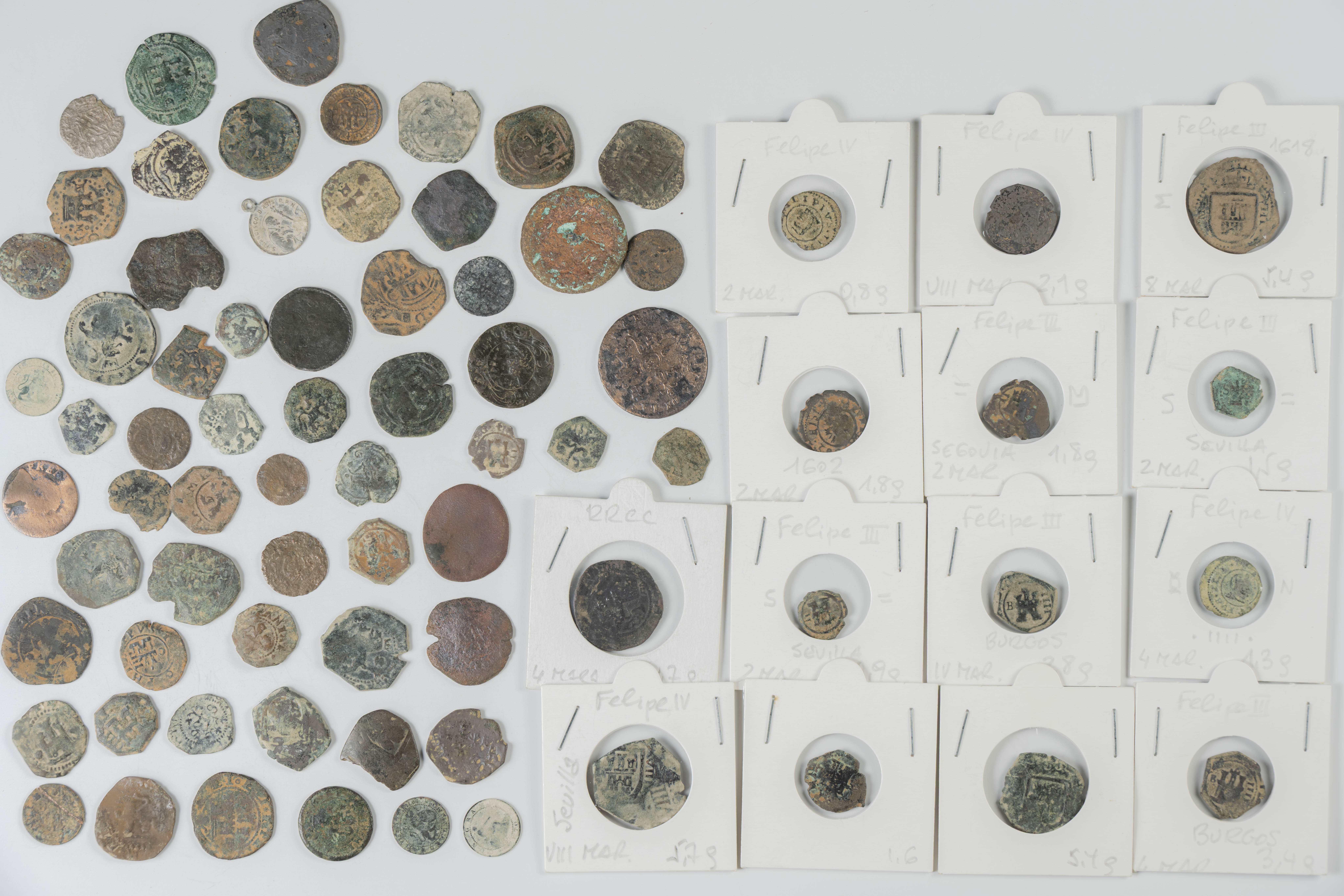 MONARQUÍA ESPAÑOLA. Conjunto formado por centenares de cobres de la Monarquía Española y del Centenario de la Peseta. Incluye piezas tanto de los Austrias como de los Borbones con una gran variedad de módulos y fechas representadas con una buena representación, también, de piezas reselladas. Diferentes estados de conservación. A EXAMINAR.