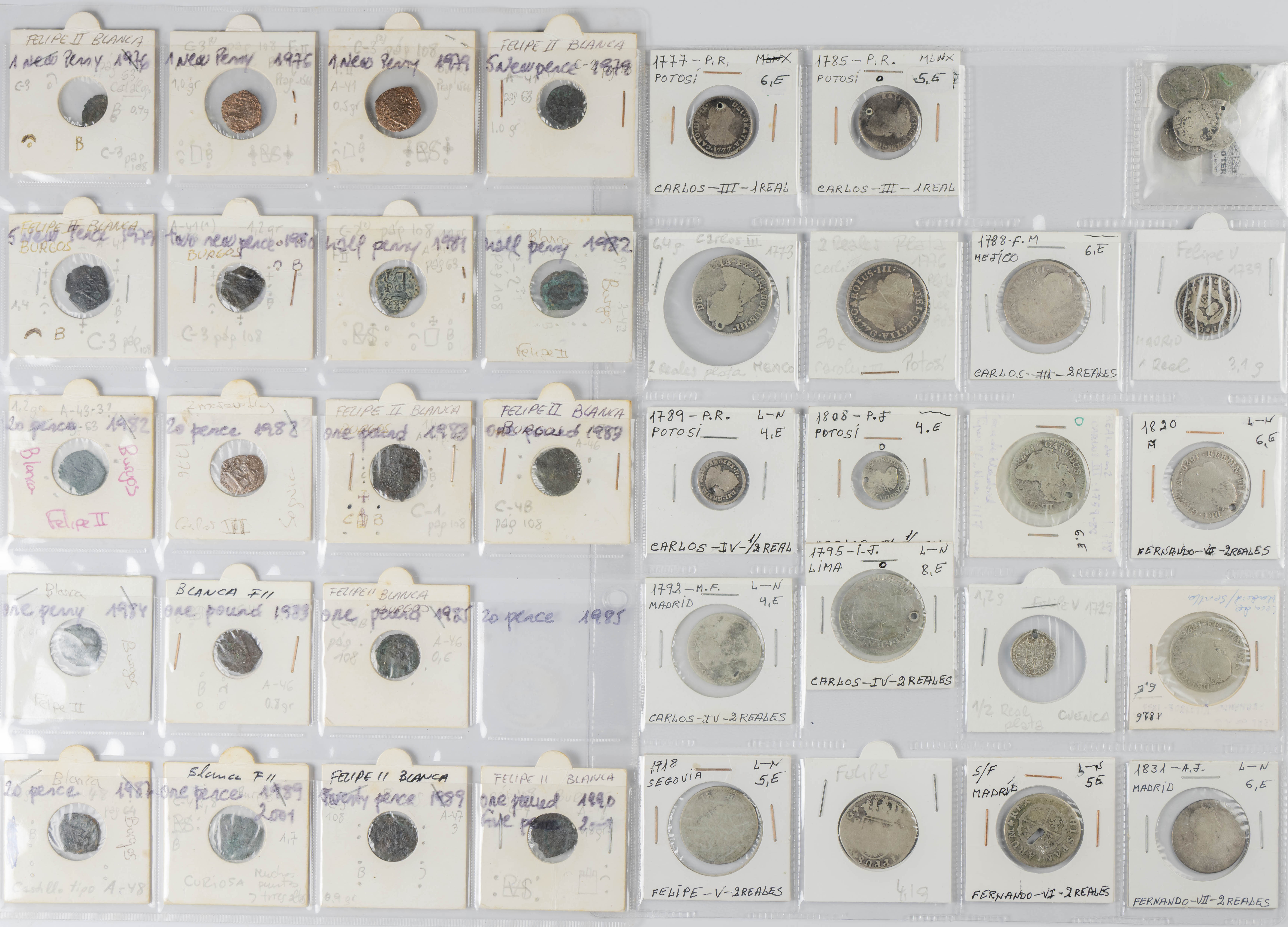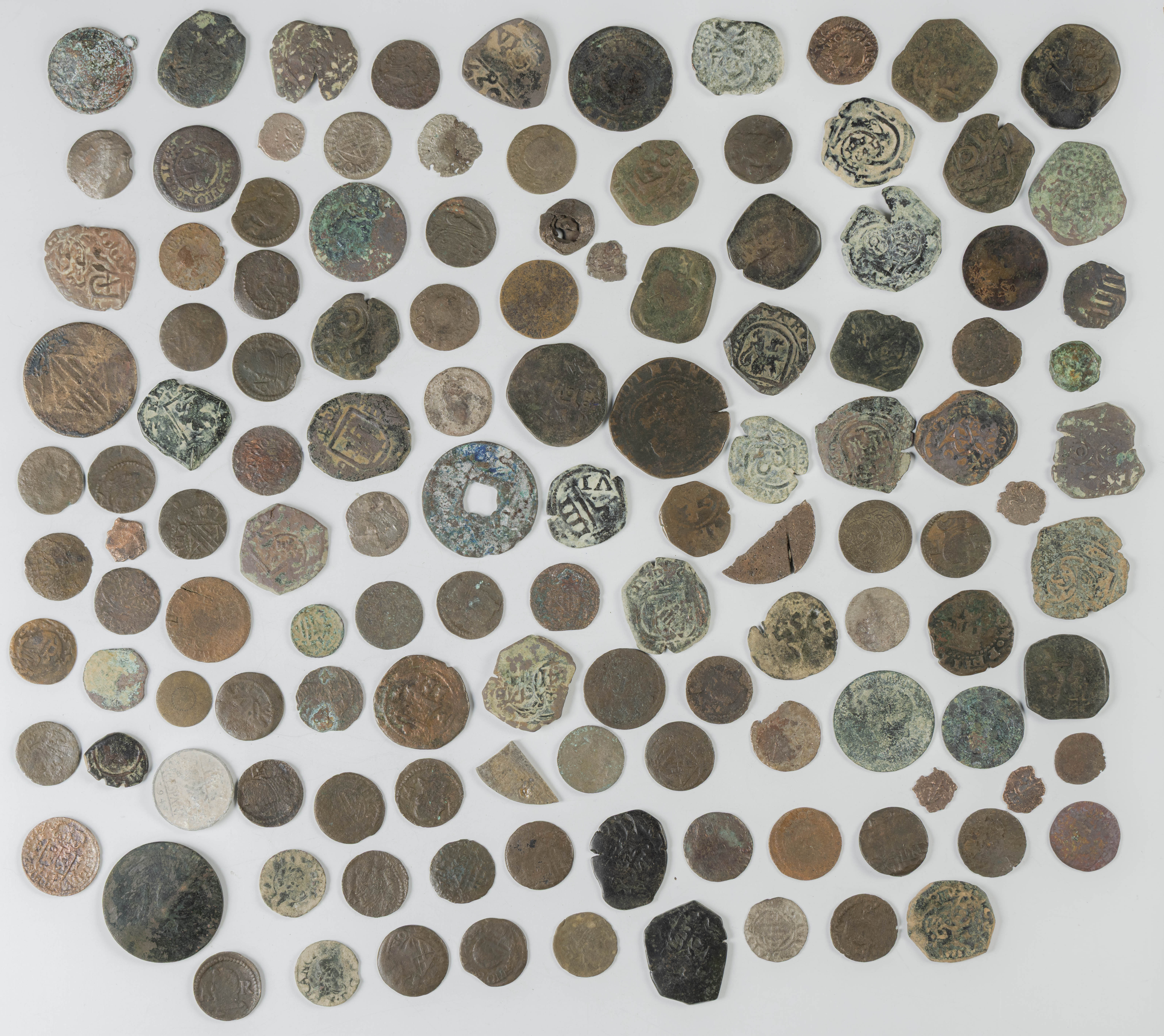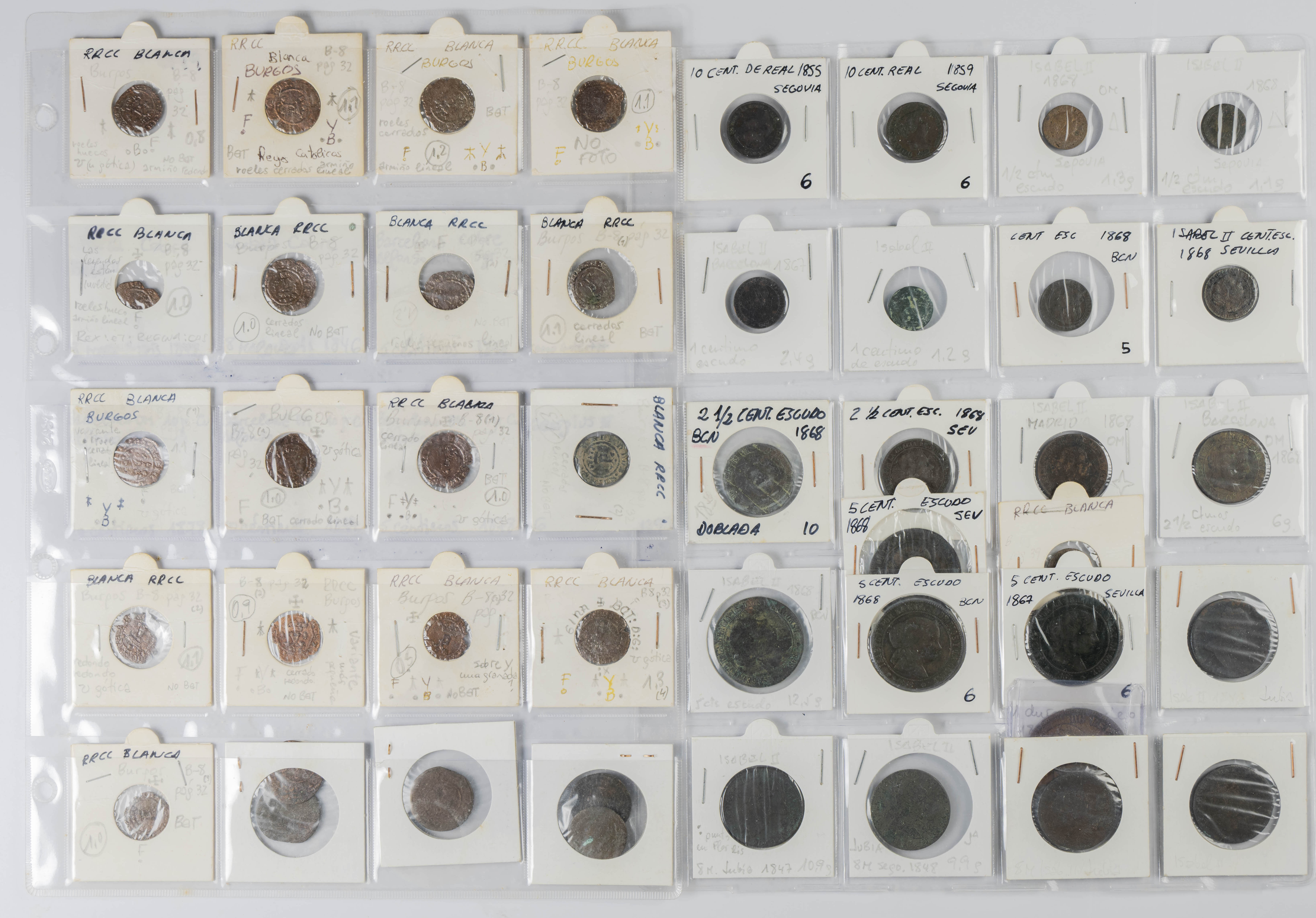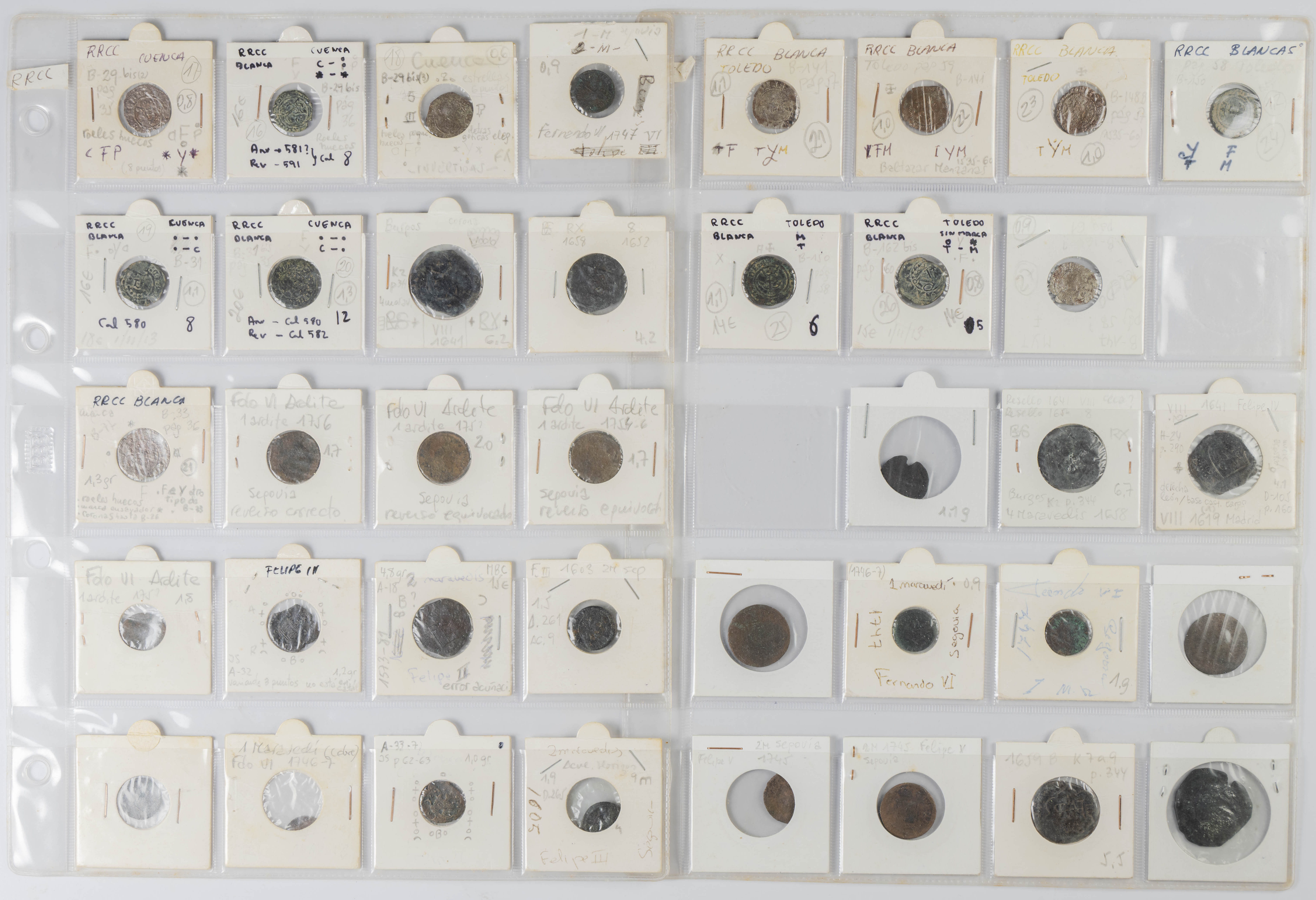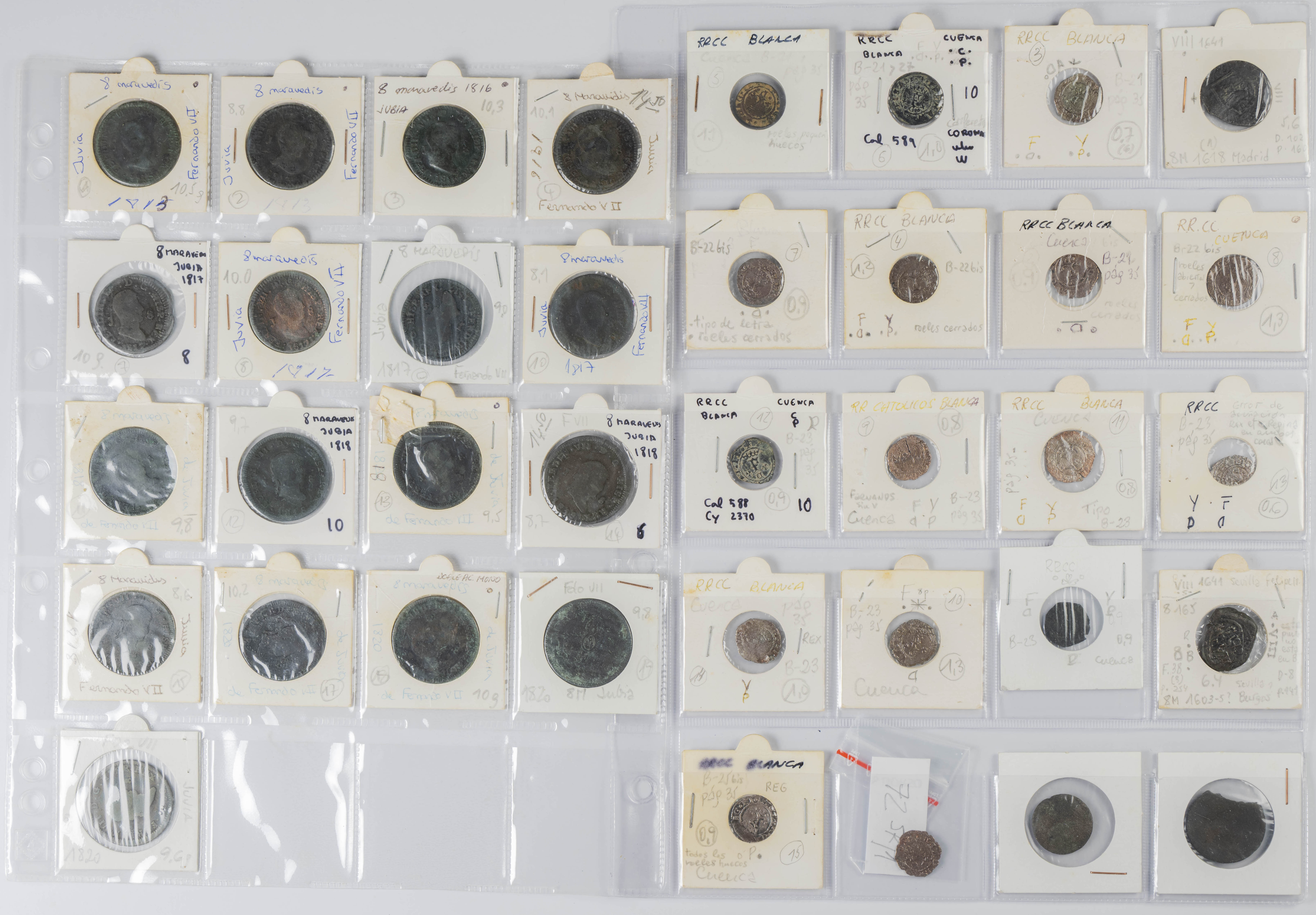 MONARQUÍA ESPAÑOLA. Conjunto formado por centenares de cobres de la Monarquía Española y del Centenario de la Peseta. Incluye piezas tanto de los Austrias como de los Borbones con una gran variedad de módulos y fechas representadas con una buena representación, también, de piezas reselladas. Diferentes estados de conservación. A EXAMINAR.