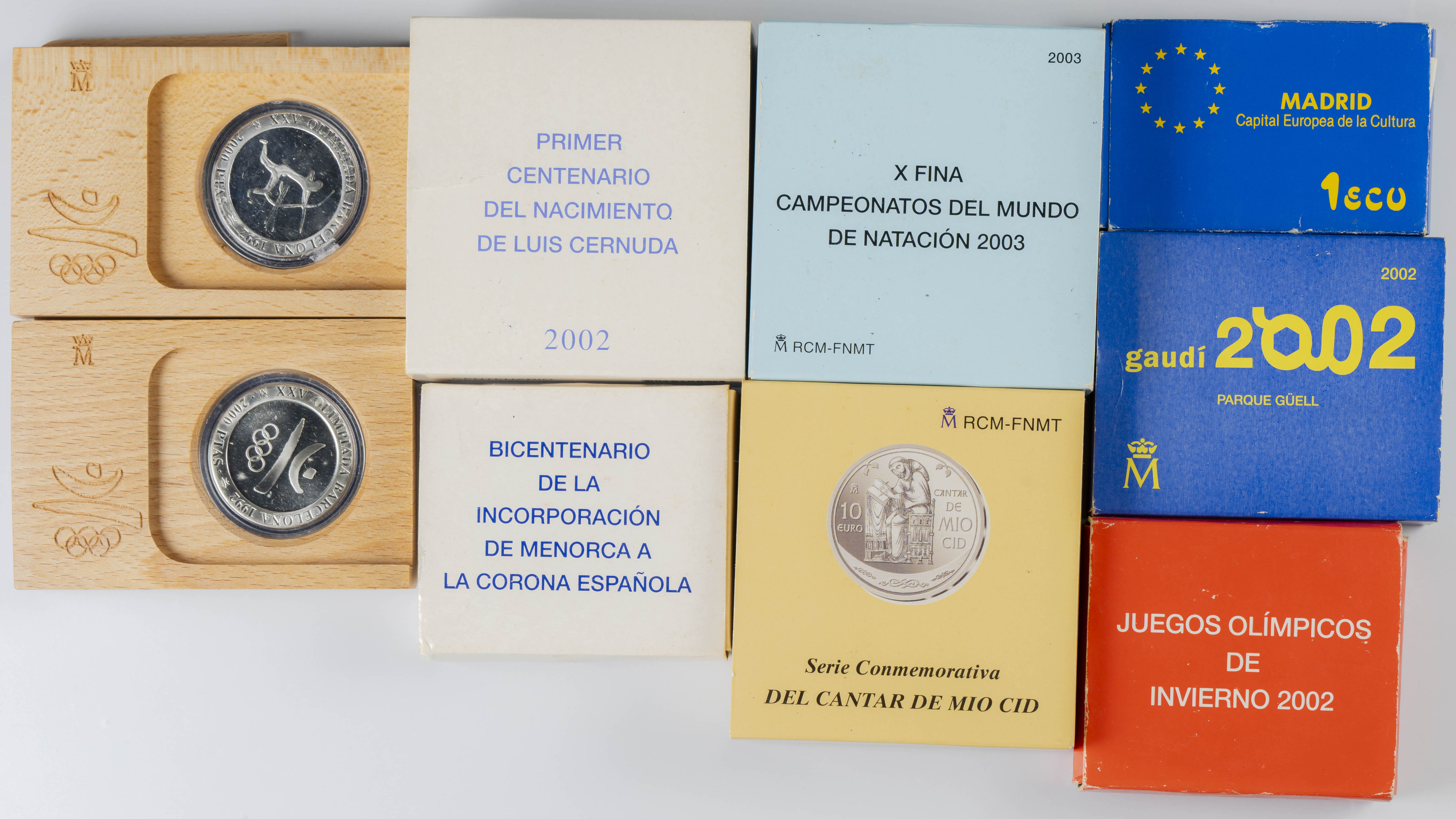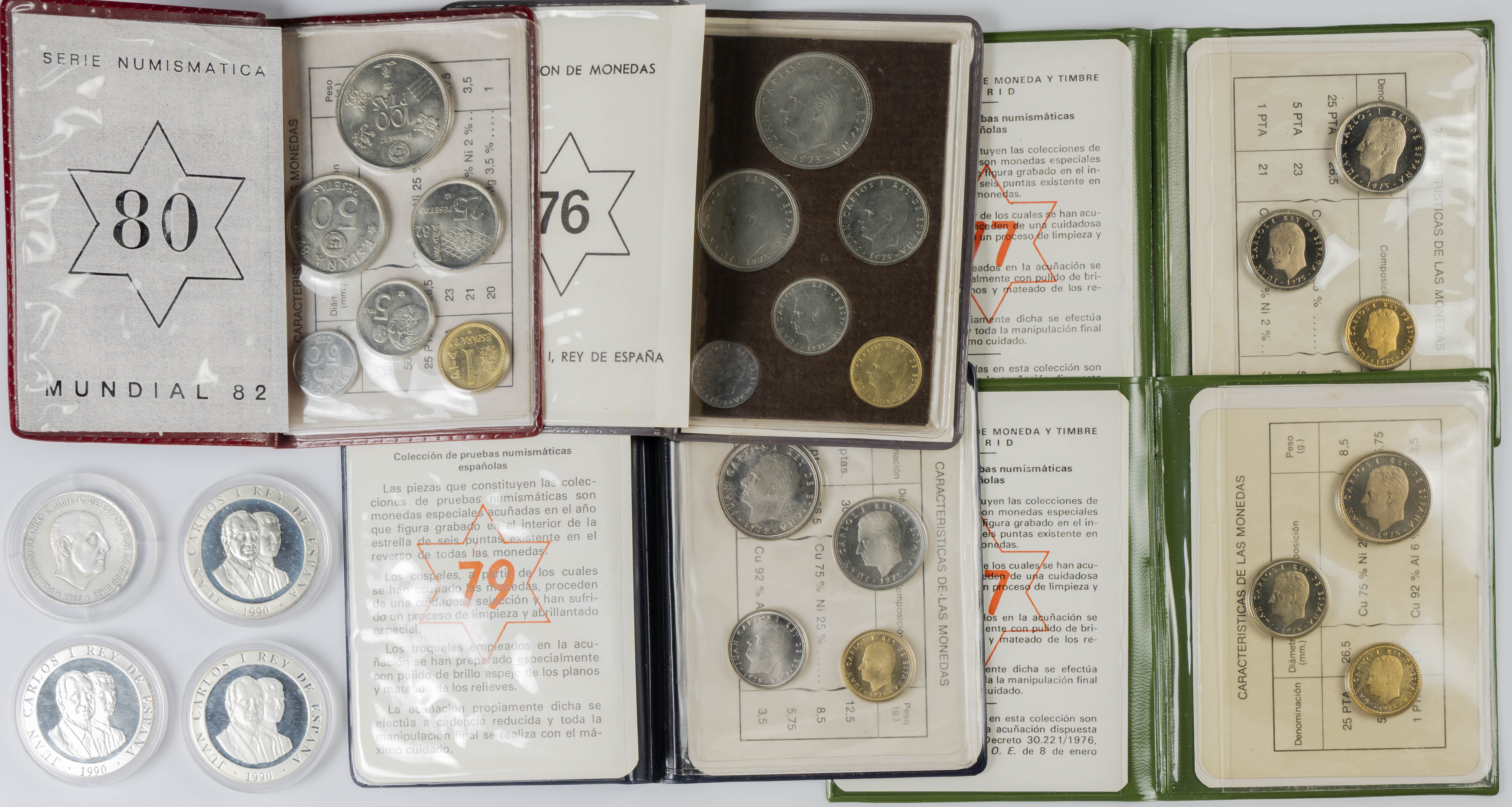 CONTEMPORÁNEO. Interesante conjunto formado por estuches completos, carteras y cápsulas con valores en Pesetas, Ecus y Euros. Amplia variedad temática, con terminaciones PROOF en muchas de ellas. Diferentes estados de conservación. A EXAMINAR.