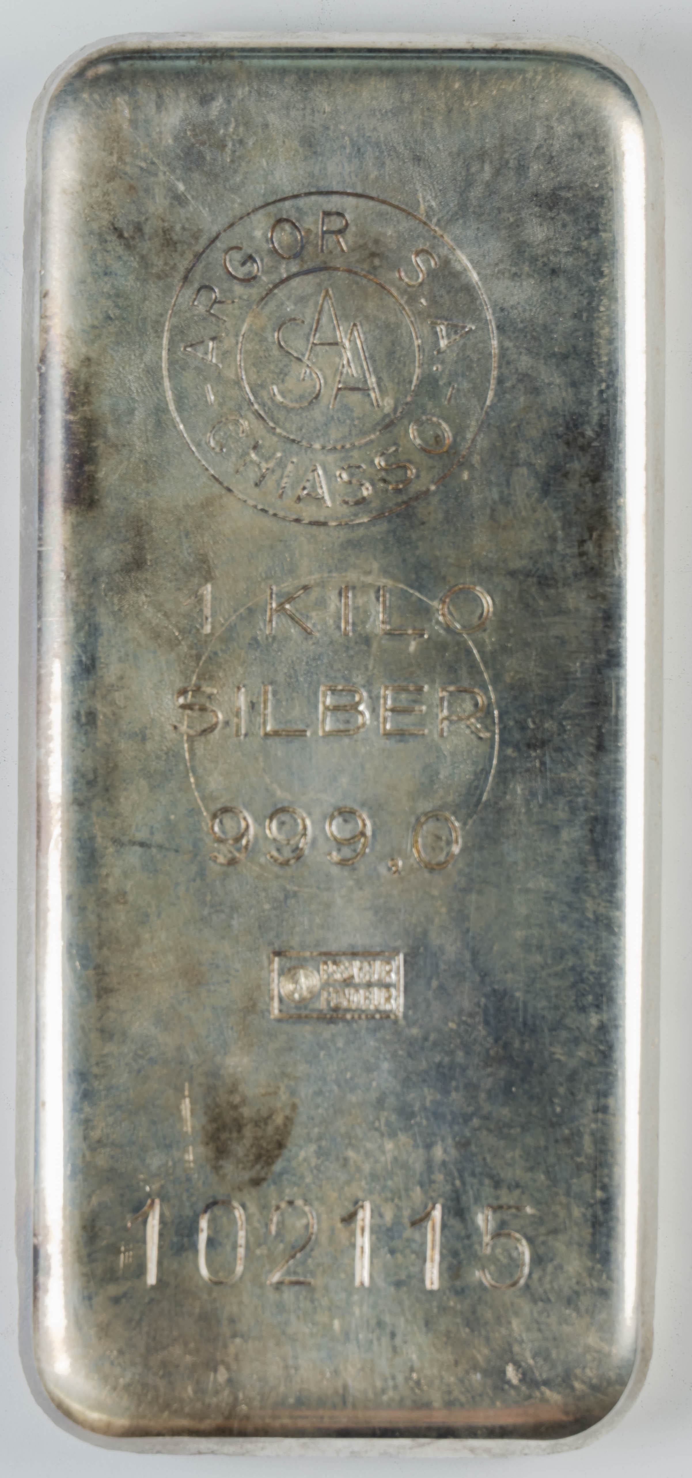 Lingote de plata. Lingote de 1 Kilogramo de plata de 0,999 milésimas.