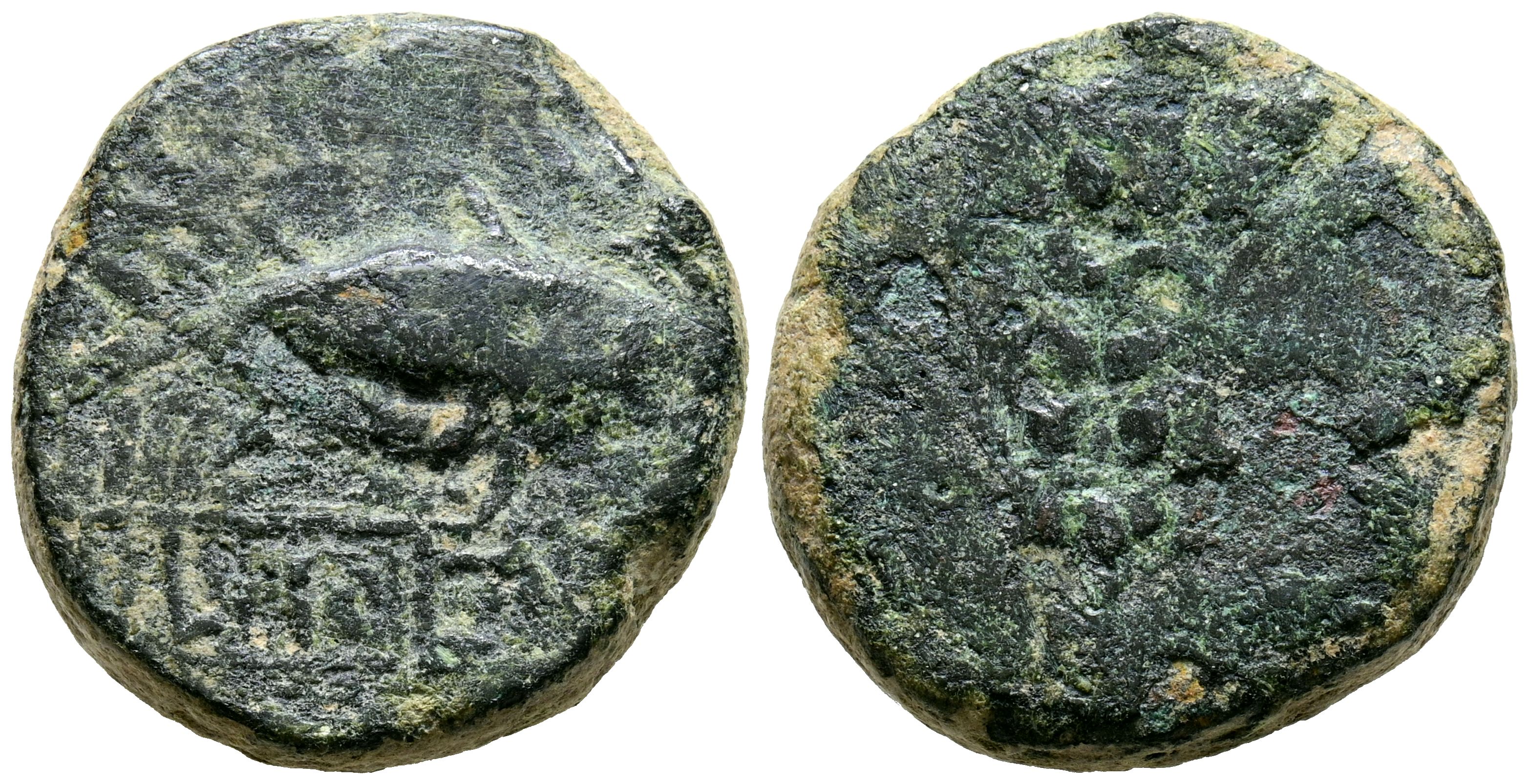 ILIPENSE (Alcalá del Río, Sevilla). Semis. (Ae. 13,09g/22mm). 120-20 BC (FAB-1534). Anv: Sábalo a derecha, debajo leyenda: ILIPENSE. Rev: Espiga. BC.