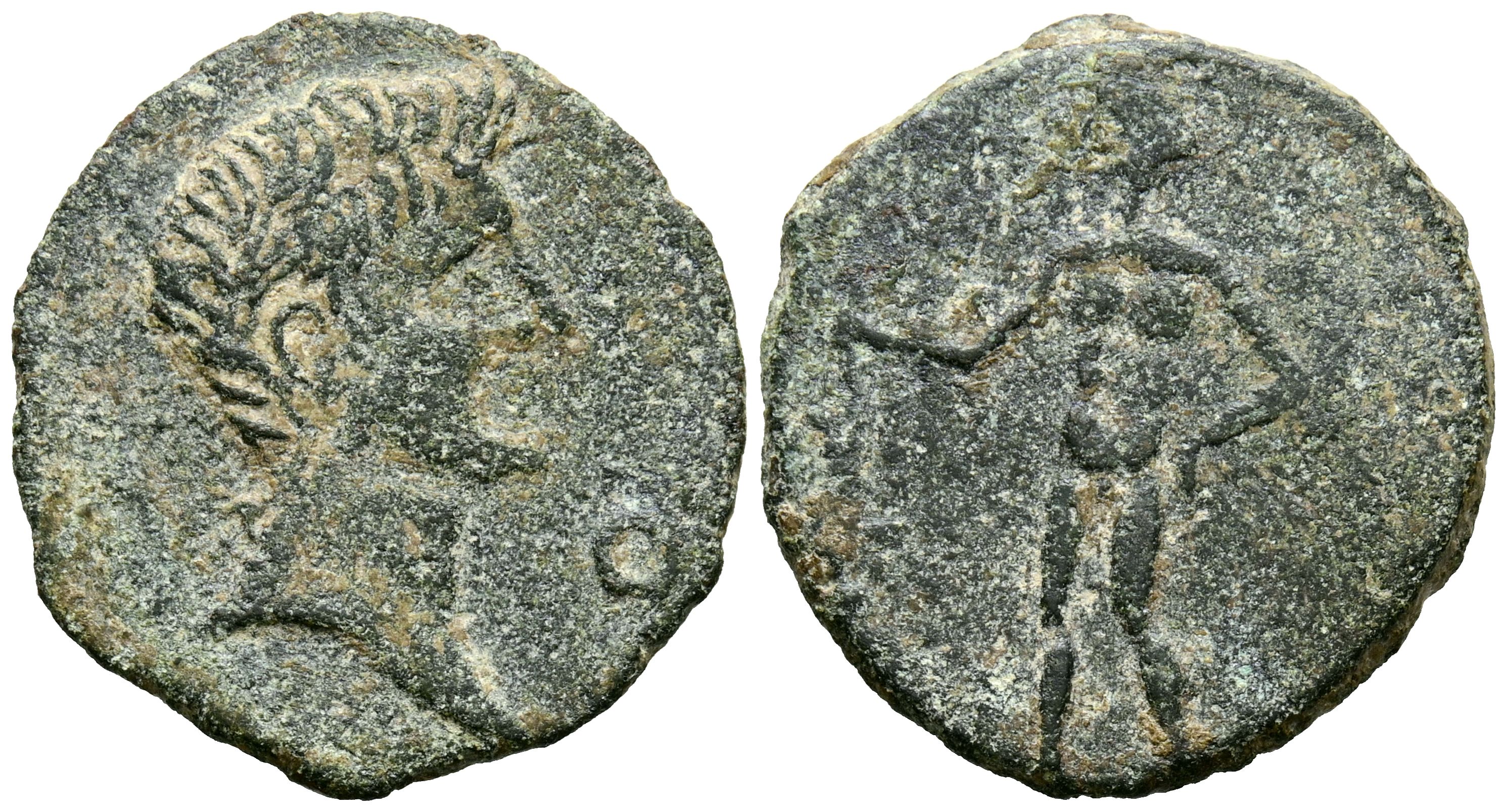 OSET (San Juan de Aznalfarache, Sevilla). As. (Ae. 3,87g/22mm). 120-20 a.C. (FAB-1949). Anv: Cabeza masculina a derecha, delante leyenda: OSSET. Rev: Genio estante a izquierda con racimo de uvas. MBC+/MBC-.