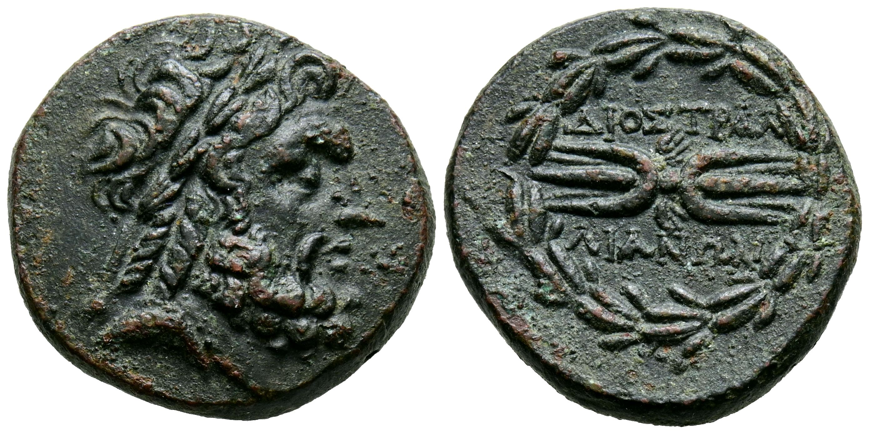LYDIA, Tralles. Ae20. (Ae. 6,43g/20mm). Siglo II-Siglo I a.C. (SNG Kayhan 1010). Anv: Cabeza laureada de Zeus a derecha. Rev: Rayo alado, alrededor leyenda: ΔΙΟΣ TPAΛ-ΛIANΩΝ, todo dentro de corona de laurel. EBC. Bonito ejemplar.