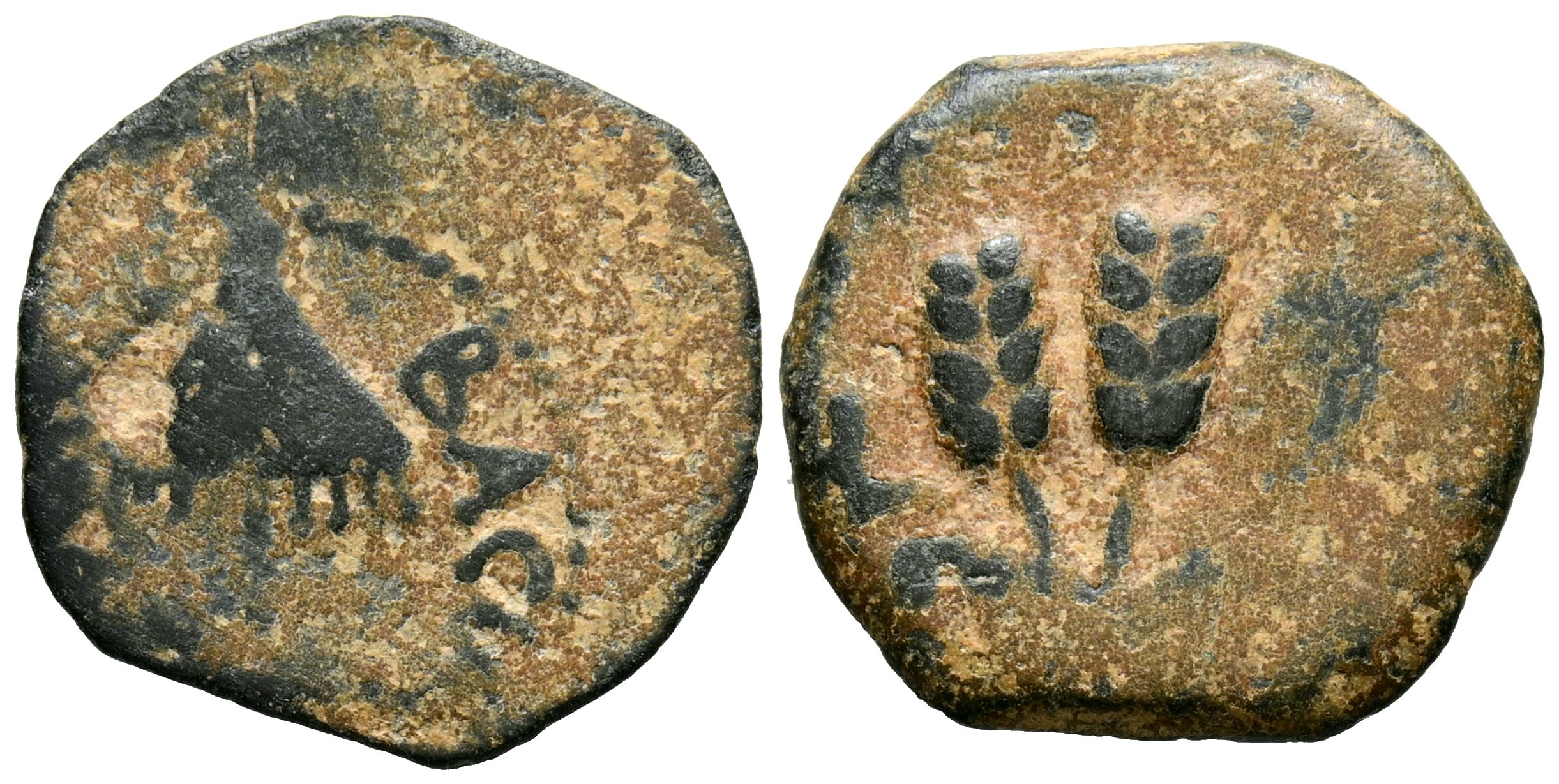 JUDAEA (Provincia Romana). Agripa I (dinastía de Herodes). Prutah (Ae. 2,22g/17mm). 37-44 d.C. Judea. (Hendin-1244). Anv: Pabellón, alrededor leyenda. Rev: Tres espigas. BC+.