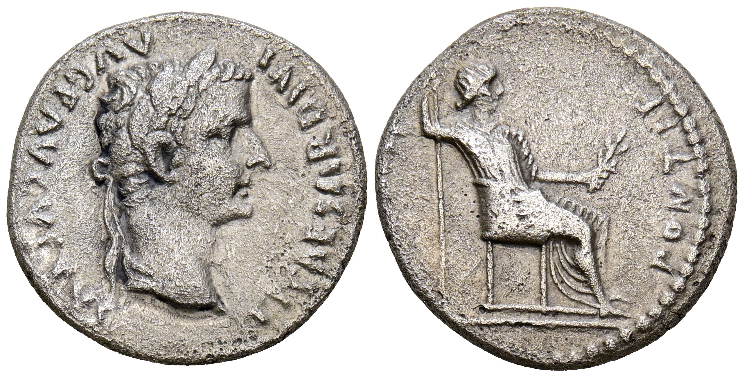 TIBERIO. Denario. (Ar. 3,48g/18mm). 14-37 d.C. Lugdunum. (RIC 30). Anv: Cabeza laureada de Tiberio a derecha portando cetro, alrededor leyenda: TI CAESAR DIVI AVGVSTVS. Rev: Livia sentada a derecha, alrededor leyenda: MAXIM PONTIF. MBC. Porosidades.