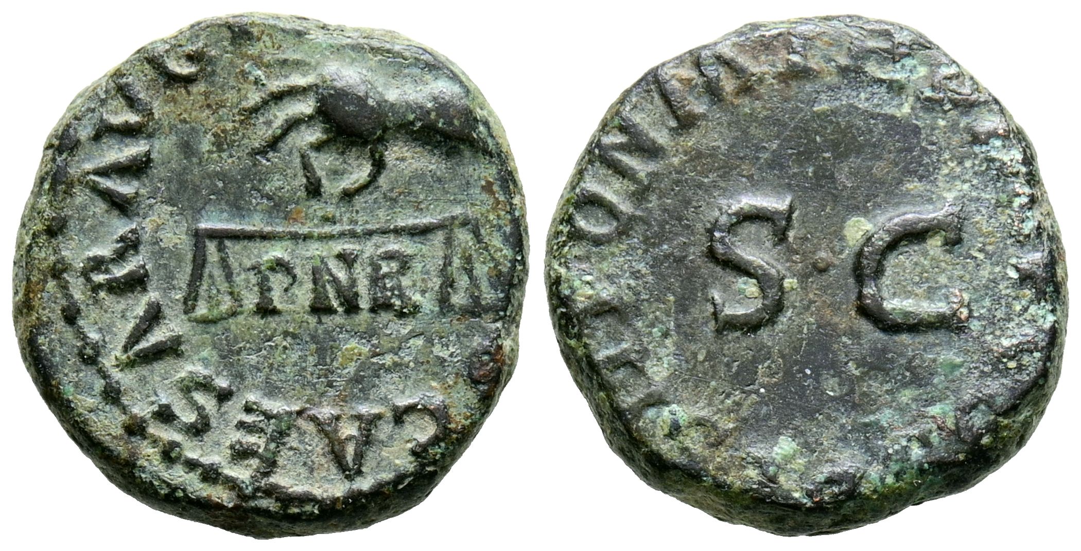 CLAUDIO I. Cuadrante. (Ae. 2,76g/15mm). 41 d.C. Roma. (RIC 85). Anv: Mano sosteniendo balanza, alrededor leyenda: TI CLAVDIVS CAESAR AVG. Rev: SC, alrededor leyenda: PON M TR P IMP COS DES IT. MBC/MBC+.