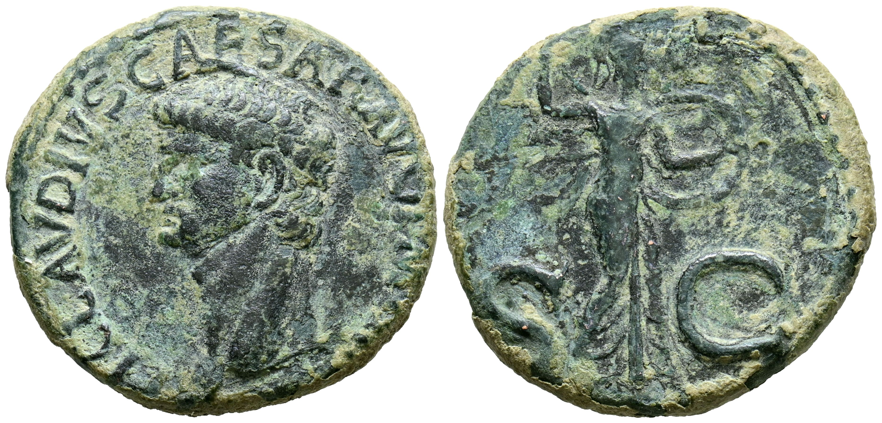 CLAUDIO I. As. (Ae. 10,88g/26mm). 41-50 d.C. Roma. (RIC 100). Anv: Cabeza de Claudio I a izquierda, alrededor leyenda: TI CLAVDIVS CAESAR AVG P M TR P IMP. Rev: Minerva avanzando a derecha portando lanza y escudo, entre S-C. MBC.
