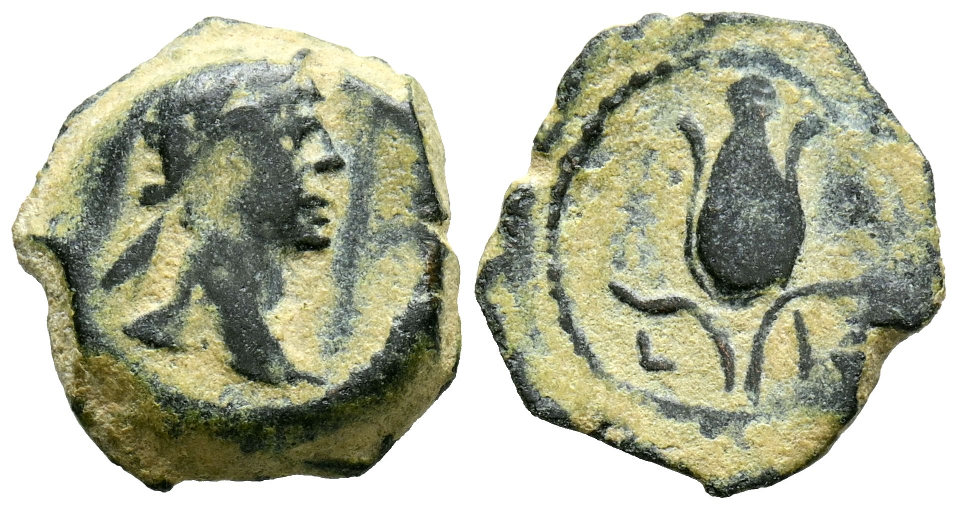 TRAJANO. Dichalkon. (Ae. 1,68g/14mm). 112-113 d.C. (Año 16). (RPC 4773). Anv: Cabeza laureada de Trajano a derecha. Rev: Tocado de Isis, entre: L Ι-Ϛ. MBC-.