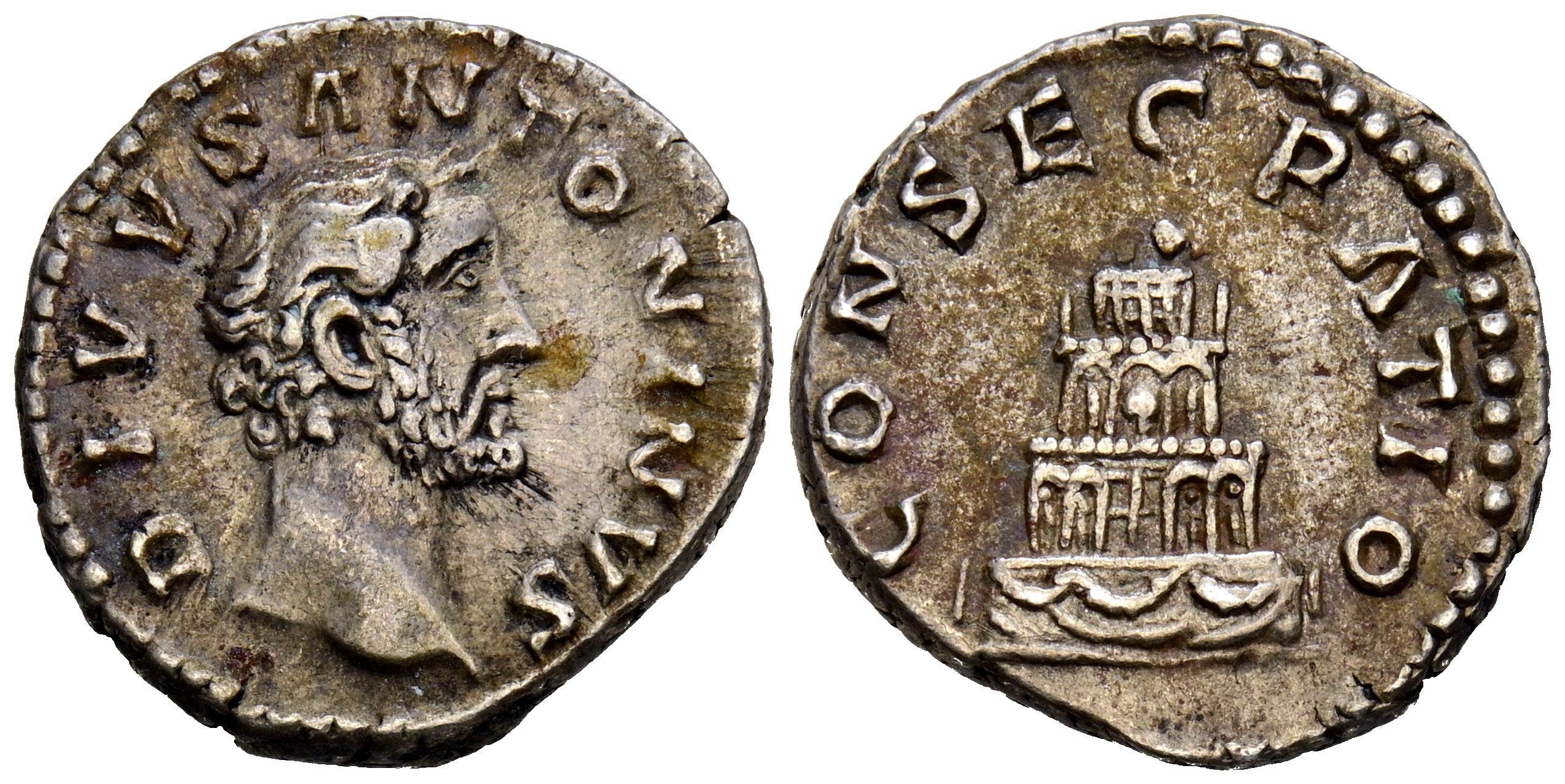 ANTONINO PIO. Denario. (Ar. 3,57g/18mm). 161 d.C. Roma. (RIC 436). Anv: Cabeza de Antonino Pío a derecha, alrededor leyenda: DIVVS ANTONINVS. Rev: Pira funeraria sobre cuatro escalera de cuatro niveles decorada, alrededor leyenda: CONSECRATIO. MBC+.