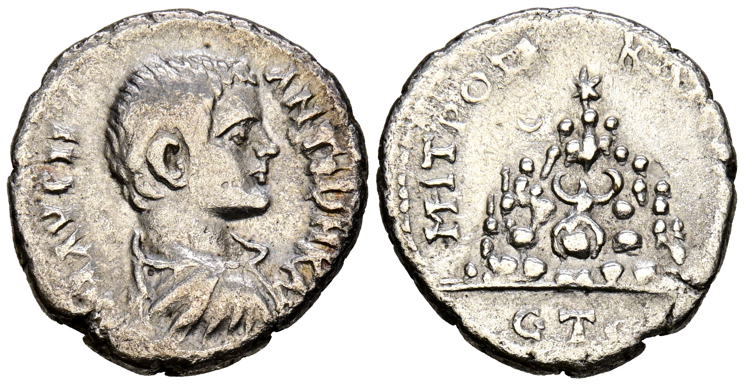 CARACALLA. Dracma. (Ar. 2,52g/17mm). 196-197 d.C. (Año 5). Caesarea-Eusebia, Cappadocia. (Sydenham 466). Anv: Busto drapeado de Caracalla a derecha, alrededor leyenda: M AYPH ANTωN KAI. Rev: Monte Argaeus, encima estrella y creciente, en exergo: ЄT Є, alrededor leyenda: MHTPOΠ KAICAPI. MBC-.