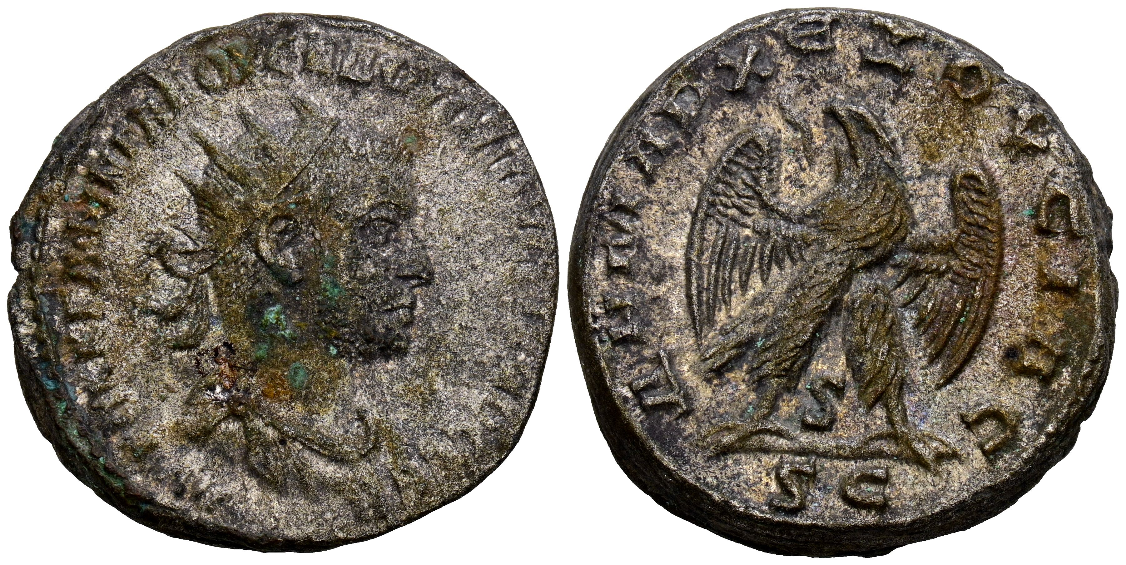 FILIPO I. Tetradracma. (Ar. 11,39g/25mm). 244-249 d.C. Antioquía. (Prieur 318). Anv. Busto radiado y drapeado de Filipo I a derecha, alrededor leyenda griega. Rev: Aguila estante sobre palma y portando corona de laurel a izquierda, debajo: SC, alrededor leyenda griega. MBC. Oxidaciones.