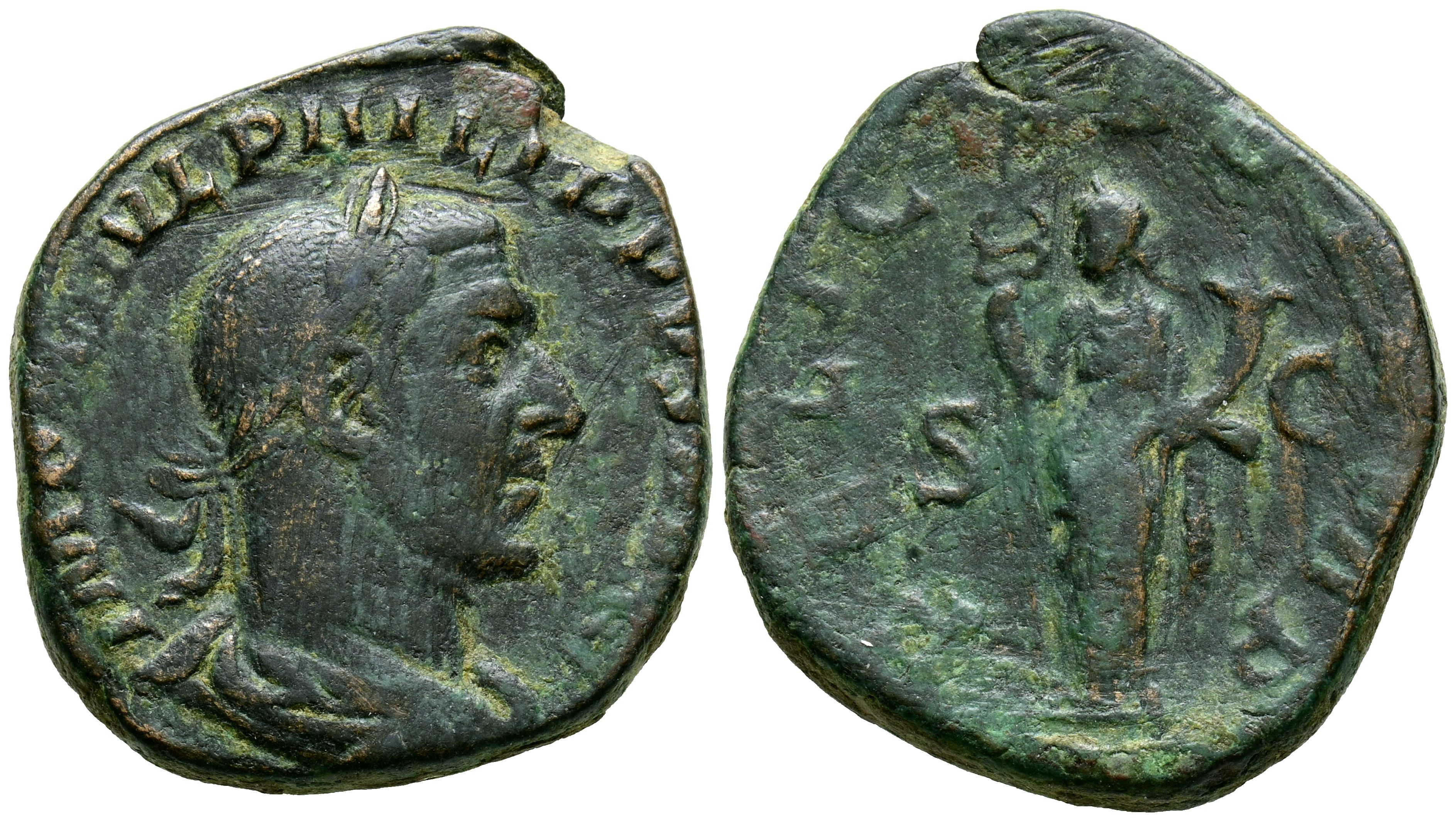 FILIPO I. Sestercio. (Ae. 15,58g/30mm). 245 d.C. Roma. (RIC 169a). Anv: Busto laureado y drapeado de Filipo I a derecha, alrededor leyenda: IMP M IVL PHILIPPVS AVG. Rev: Felicitas estante a izquierda portando caduceo y cornucopia, entre: S-C, alrededor leyenda: FELICITAS TEMP. MBC-.