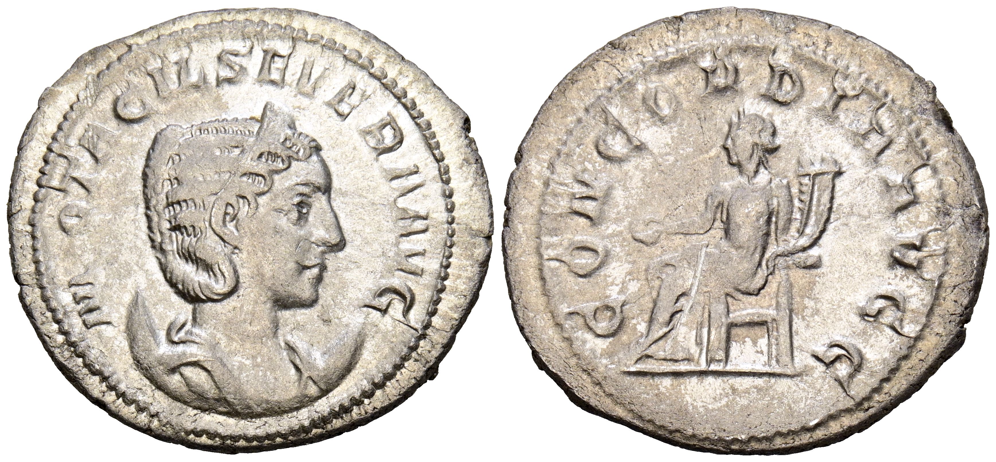 OTACILIA SEVERA. Antoniniano. (Ar. 3,30g/24mm). 247 d.C. Roma. (RIC 125c). Anv: Busto diademado y drapeado de Otacilia Severa a derecha sobre creciente, alrededor leyenda: M OTACIL SEVERA AVG. Rev: Concordia sentada a izquierda portando patera y doble cornucopia, alrededor leyenda: CONCORDIA AVGG. MBC+.