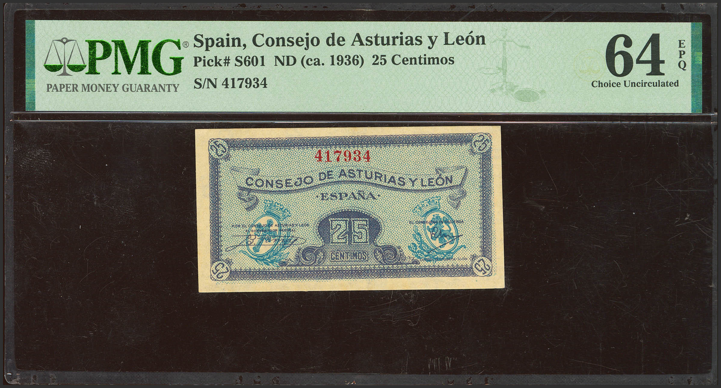 25 Céntimos. 1937. Asturias y León. (Edifil 2021: 394, Pick: S601). Apresto original. SC. Encapsulado PMG64EPQ.
