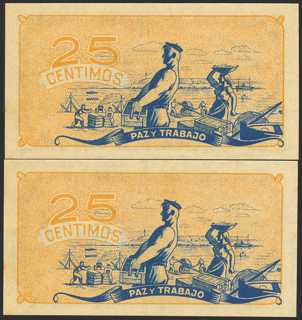 25 Céntimos. 1937. Asturias y León. Pareja correlativa. Sin serie. (Edifil 2023: 394). Apresto original. SC.