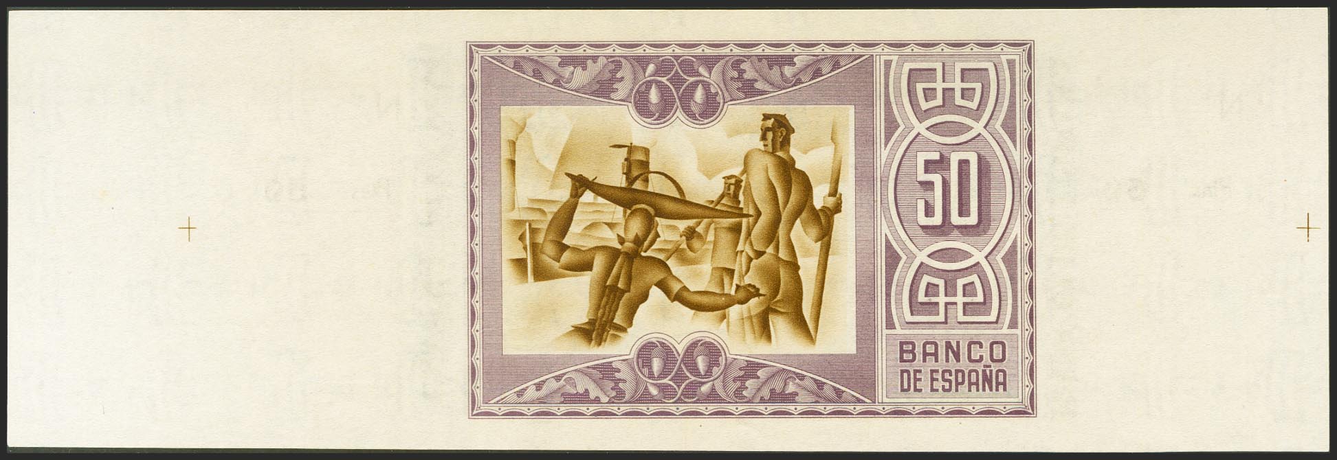 50 Pesetas. 1 de Enero de 1937. Sucursal de Bilbao, antefirma Banco de Bilbao. Sin serie y sin numeración, con ambas matrices. (Edifil 2017: 389a). SC-.