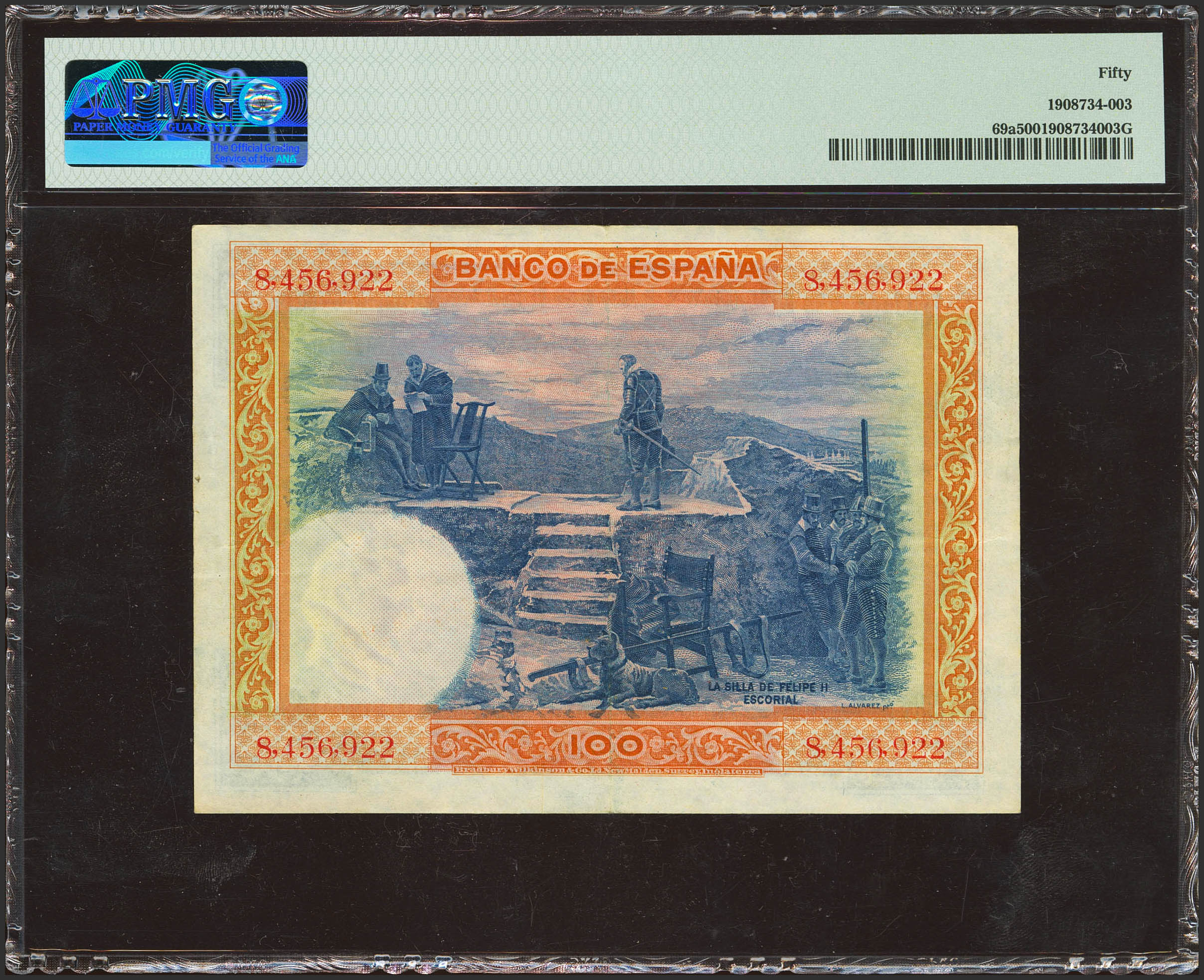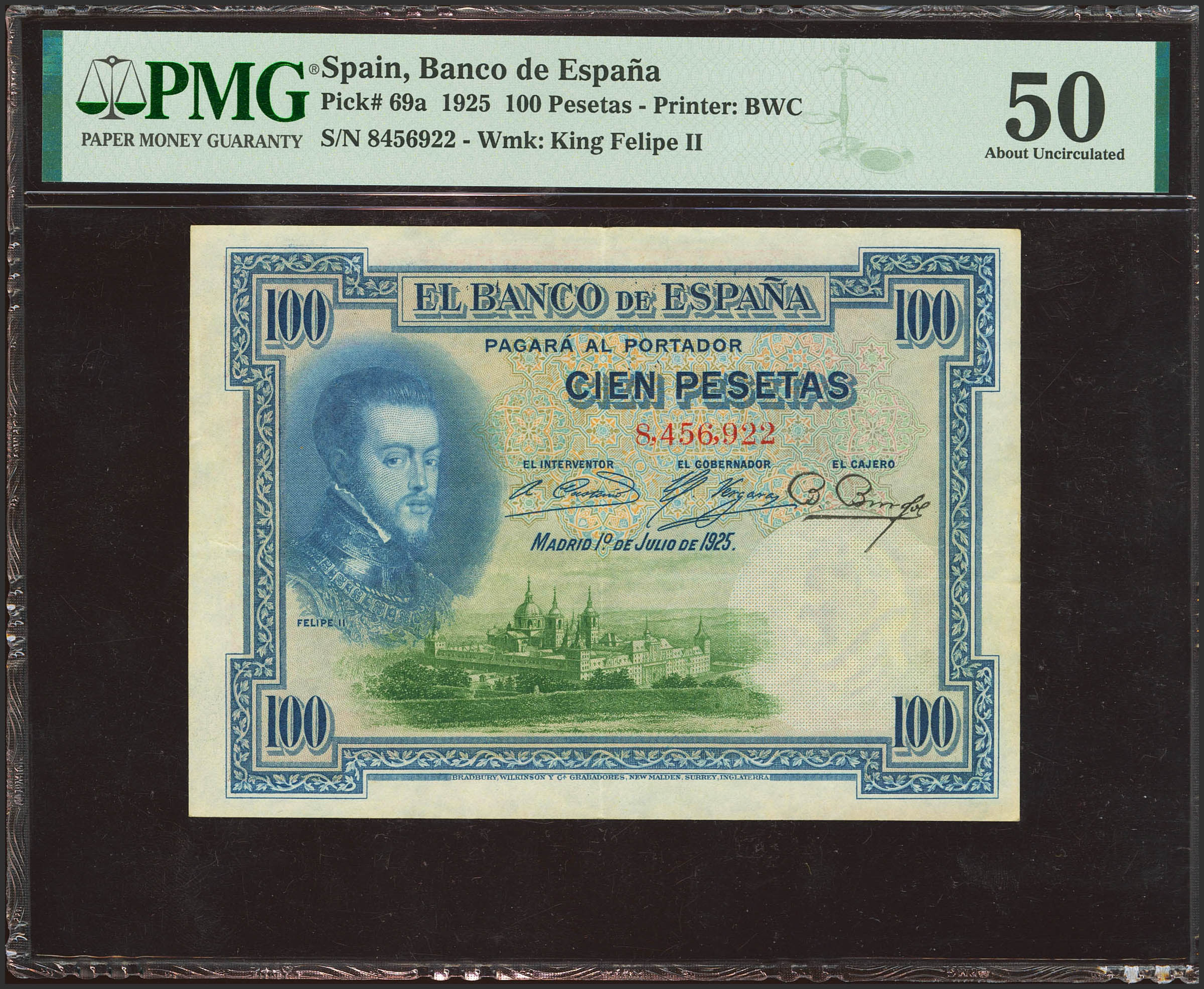 100 Pesetas. 1 de Julio de 1925. Sin serie. (Edifil 2023: 323, Pick: 69a). Inusual en esta calidad. EBC. Encapsulado PMG50.